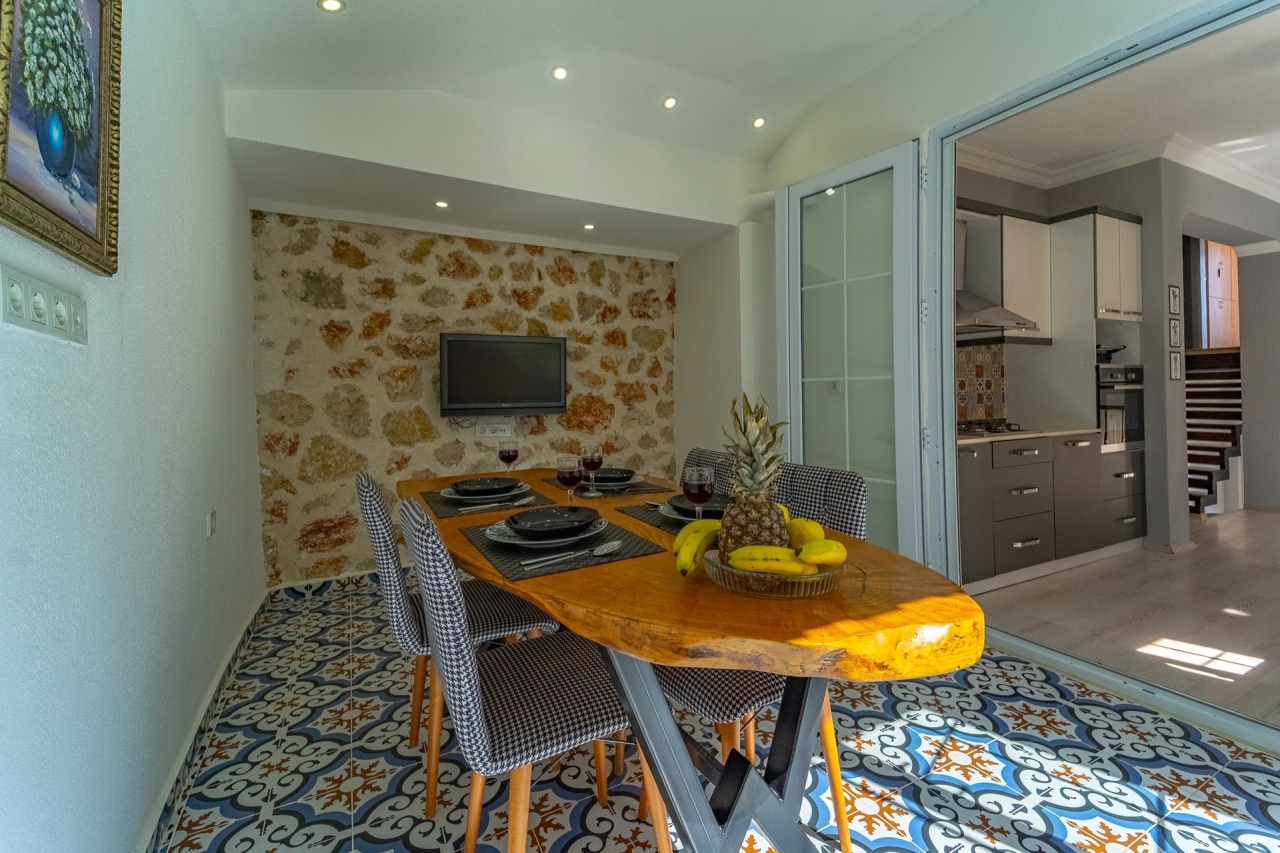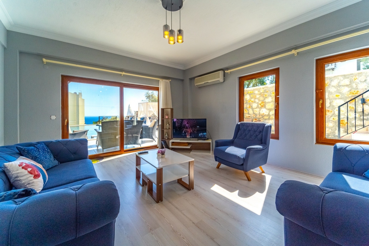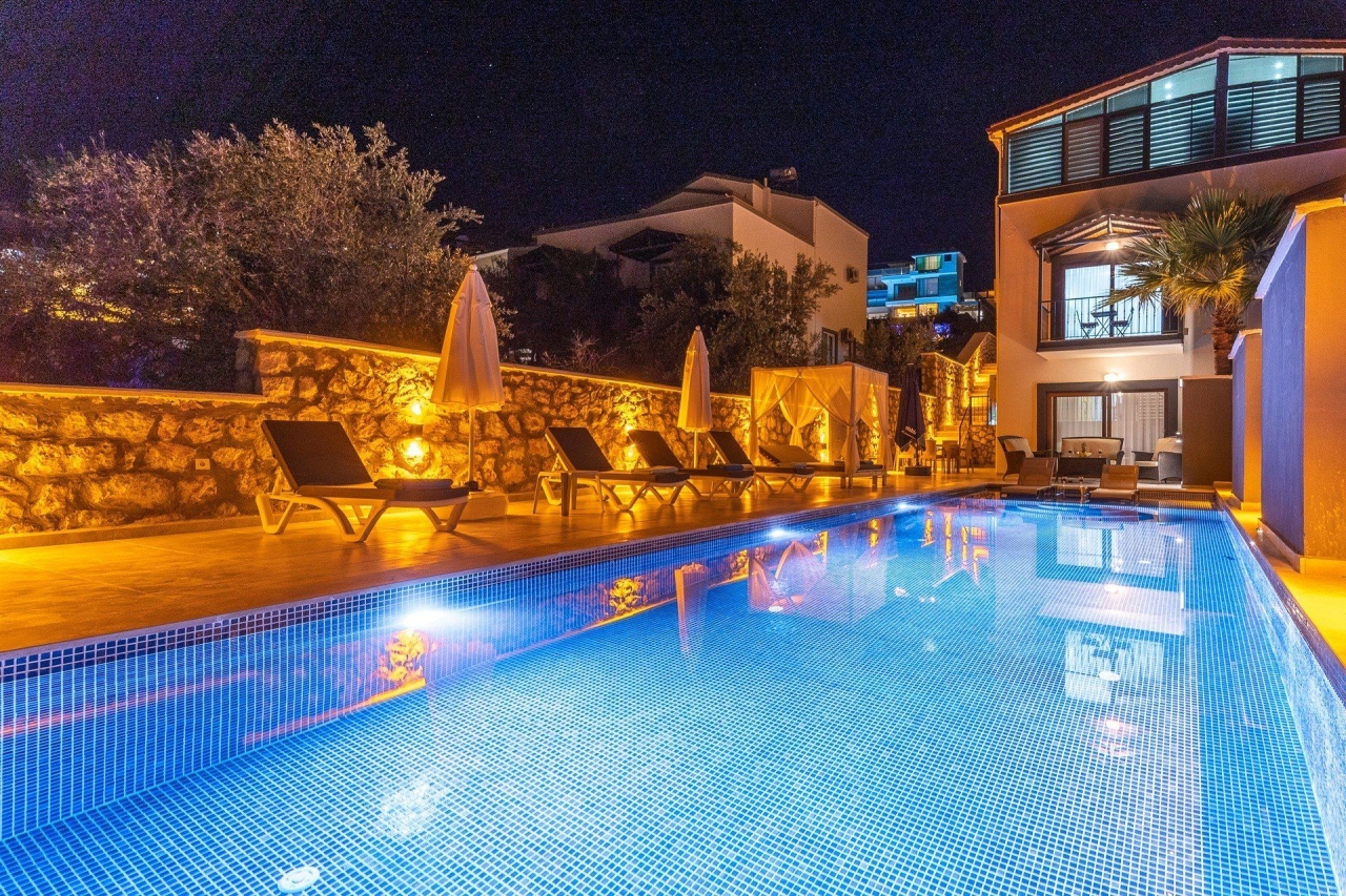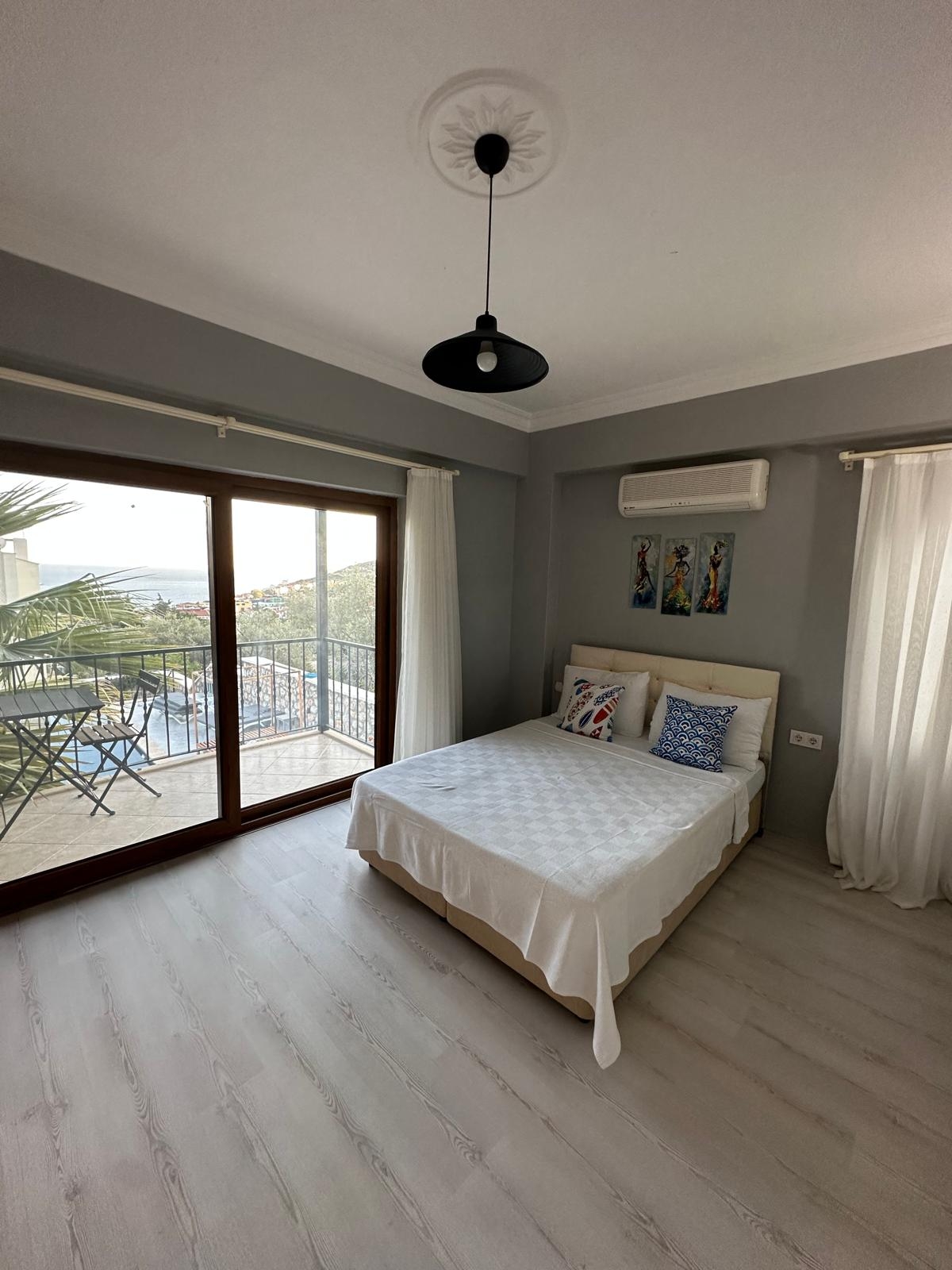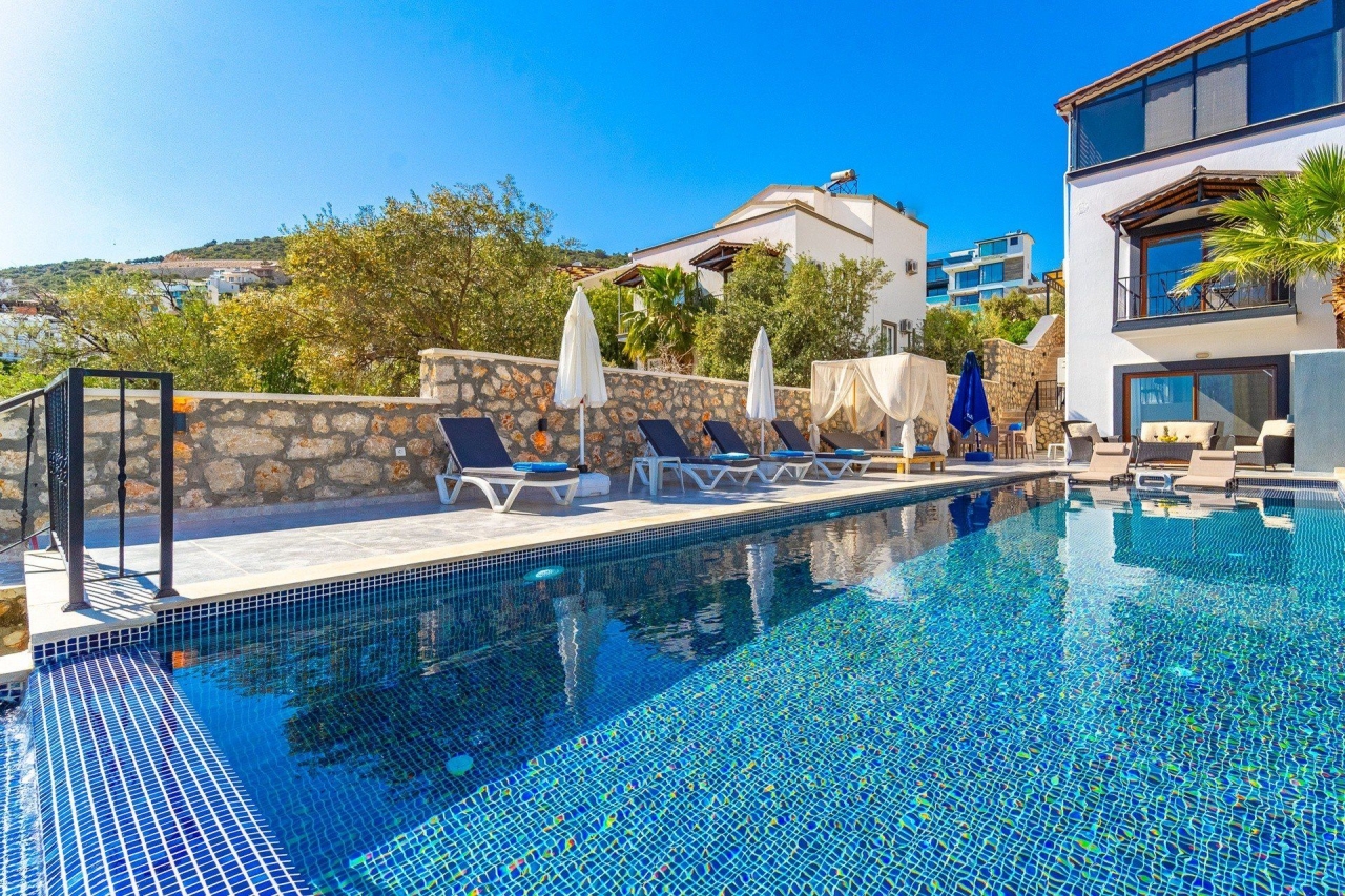 Villa Alen is a semi-detached home situated in Kalkan’s Ortaalan district, offering delightful views of Kalkan Bay, especially from the bedroom on the top floor.Inside, you’ll find three bedrooms alongside generous living areas and a fully equipped kitchen. Step outside to a spacious pool terrace, where a private swimming pool awaits, surrounded by sun loungers and parasols. There’s also an outdoor daybed, comfortable seating, a dining area for al fresco meals, and a BBQ to enjoy. The heart of Kalkan and its popular beach clubs lie just a 10 to 12-minute walk away, while Migros Supermarket is conveniently reached in around five minutes on foot.Bedrooms1. The first bedroom is furnished with a double bed, bedside table, wardrobe, vanity table, plus its own bathroom and WC.2. The second bedroom also features a double bed, bedside table, wardrobe, vanity table, and includes a furnished balcony alongside an en suite bathroom and WC.3. The third bedroom offers twin beds, a...