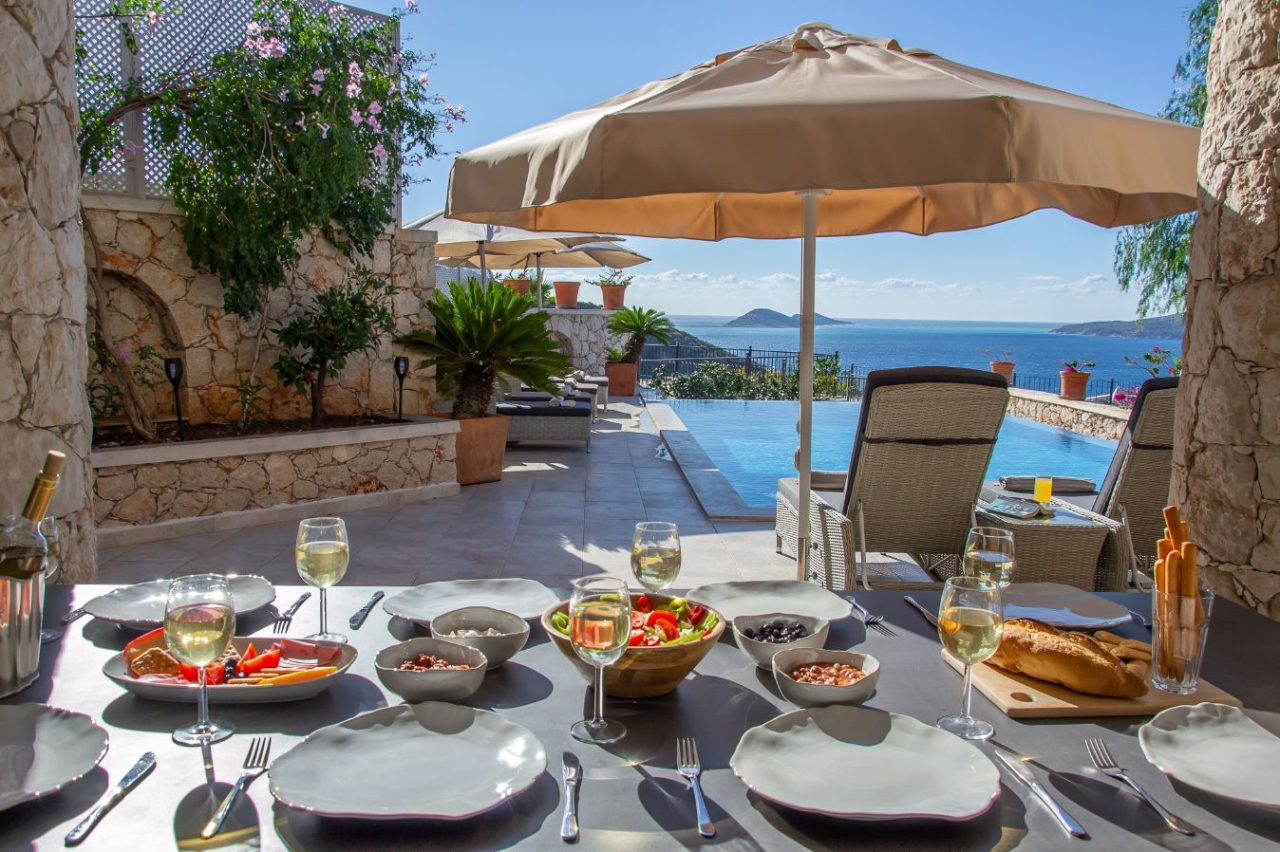 We are delighted to introduce Villa Alexander to our collection of luxury villas. This beautifully presented four-bedroom property occupies a coveted spot in Kisla, renowned for its breathtaking bay views and memorable sunsets. Designed to maximise these exceptional vistas, the villa is also just a short stroll from Mahal Beach Club. Sleeping up to ten guests comfortably, Villa Alexander is an excellent choice for larger families or groups.Built from local stone and featuring elegant marble flooring alongside air-conditioning throughout, the villa is stylishly furnished and sure to become a favourite with visitors.Kalkan town centre lies within easy reach — a 15-20 minute walk or a quick three-minute drive or taxi ride. For a scenic alternative, a water taxi runs from Mahal Beach Club, ferrying guests across the bay to the old town.Entrance Level/Lower Ground FloorDownstairs, reached by two flights of stairs from the main entrance and passing a convenient laundry room, is the...
