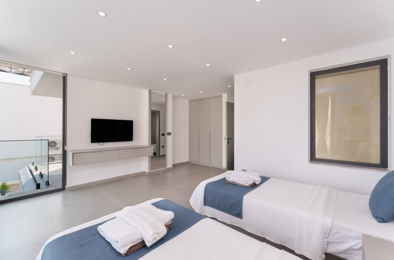 Villa Antares Premium is a recently built, elegant retreat comfortably accommodating up to six guests across three en-suite bedrooms. Located just a ten-minute walk from both the town centre and Old Town, the villa enjoys a sought-after position overlooking tranquil olive groves.From every level of the property, you’ll find charming views — the pool terrace offers a soothing outlook over the surrounding olive trees, while the upper floors reveal striking panoramas of the sea and mountains. Inside, the villa is thoughtfully designed with refined décor and a contemporary style that feels both fresh and inviting.For a tranquil escape, Villa Antares Premium has much to offer, including a rooftop jacuzzi, generous outdoor living spaces, an oversized swimming pool complete with an integrated jacuzzi, and a shallow pool area ideal for cooling off.Ground Floor The ground floor features a warm, open-plan living area that flows seamlessly into a fully equipped kitchen and dining...