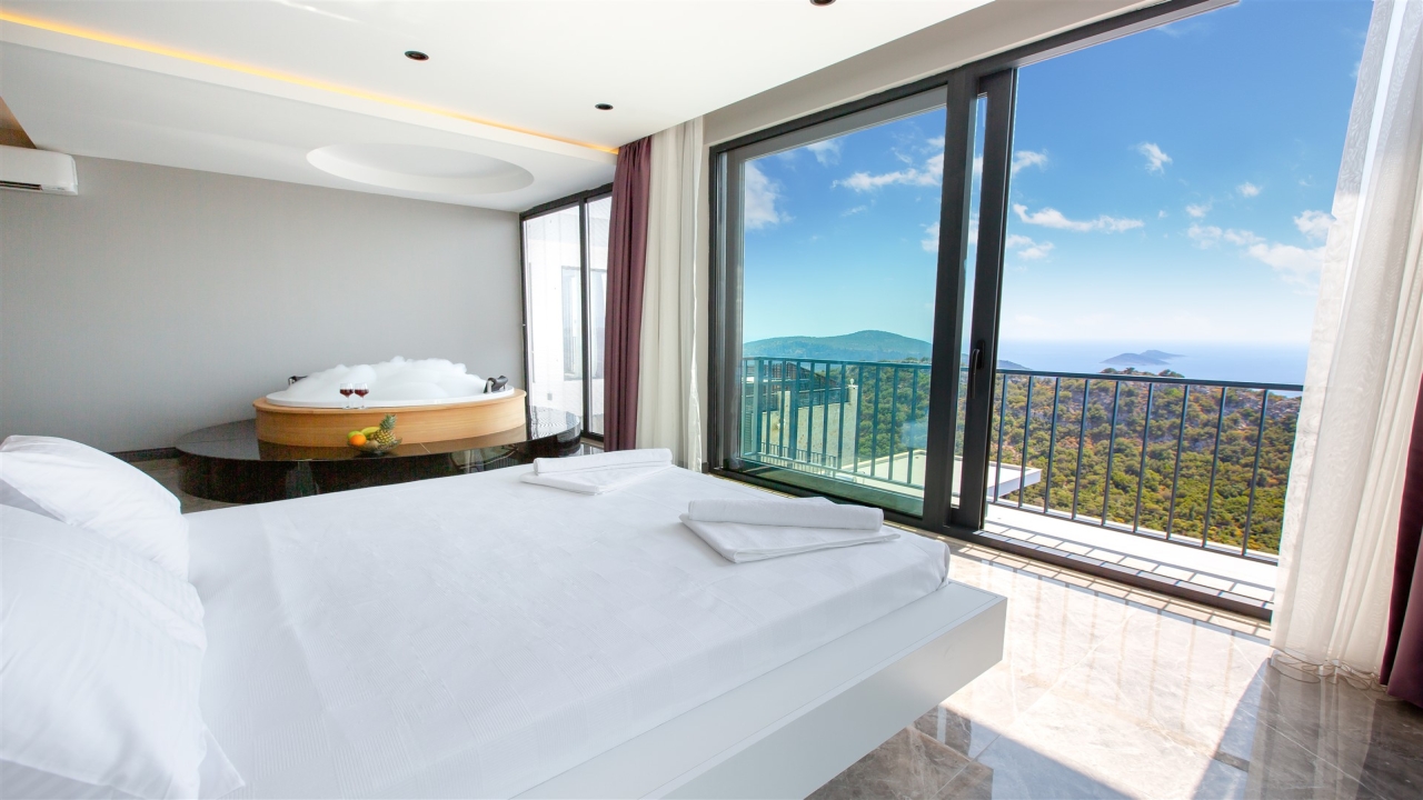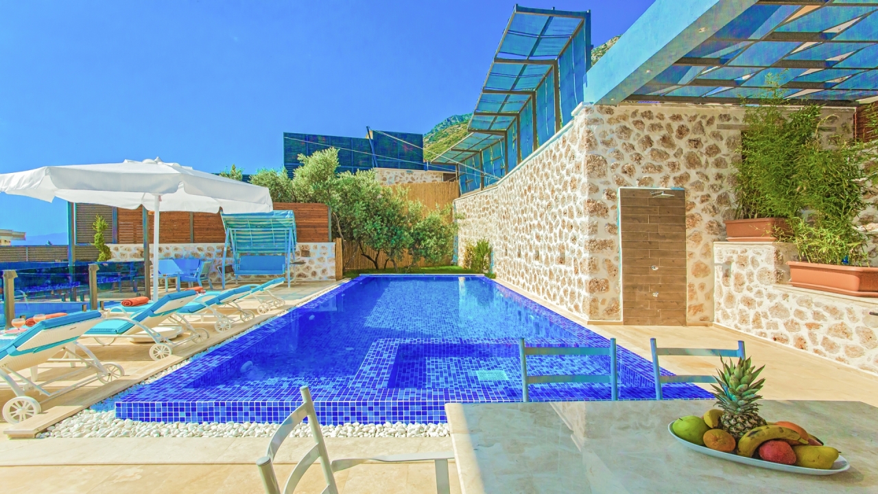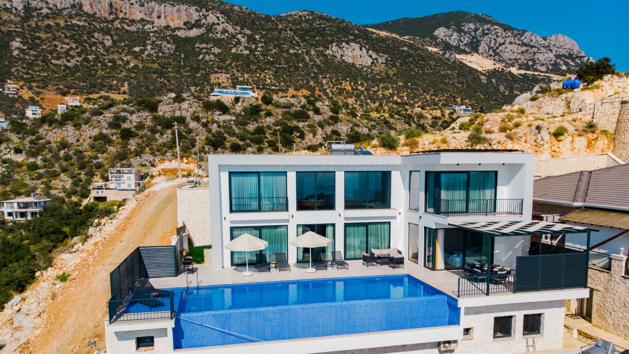 Villa Asteria Kalkan is located in the Kordere area of Kalkan, which is becoming desirable for its incredible views, peace and privacy. A sea-facing private terrace sits at the front of the property overlooking stunning vistas of rolling green mountains contrasted with azure waters. The property has a slick and modern design and is crafted to cater as a secluded villa. This means it cannot be seen from the outside, so it is ideal for families or groups who desire complete privacy on their holiday.The interior covers two floors with an open plan living space adjacent to the pool terrace at the ground floor level and three en suite bedrooms to sleep six on the upper floor. The master bedroom has the added feature of a private Jacuzzi so you can unwind at the end of the day. You can enjoy fantastic sea and nature views from the private pool terrace, which offers privacy to our guests. Ideal for a family or group of friends to enjoy a summer break, our modern villa is stylish and...