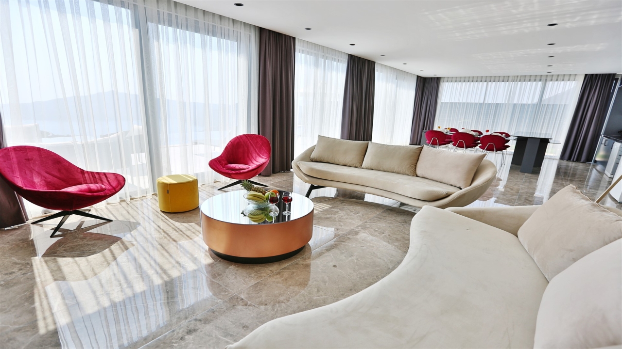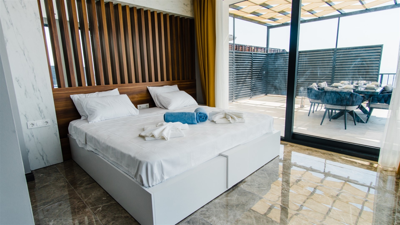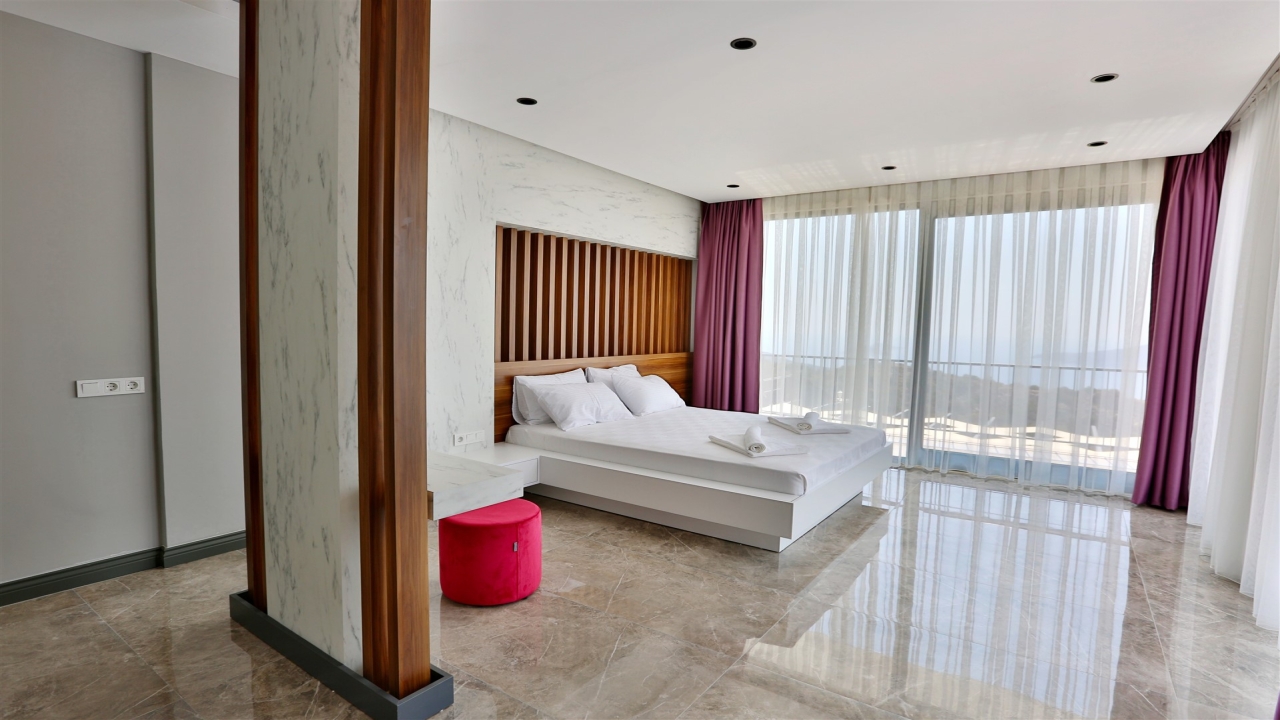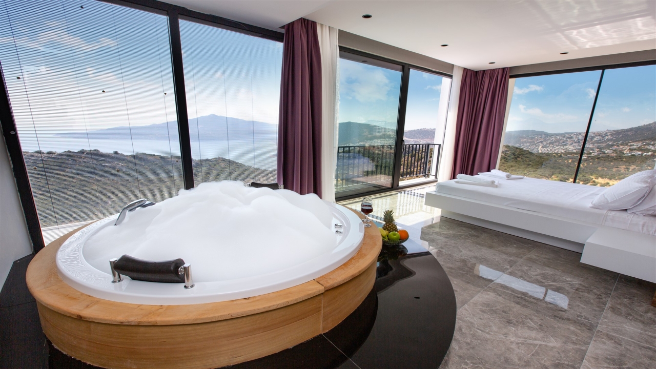 Villa Asteria Kalkan is located in the Kordere area of Kalkan, which is becoming desirable for its incredible views, peace and privacy. A sea-facing private terrace sits at the front of the property overlooking stunning vistas of rolling green mountains contrasted with azure waters. The property has a slick and modern design and is crafted to cater as a secluded villa. This means it cannot be seen from the outside, so it is ideal for families or groups who desire complete privacy on their holiday.The interior covers two floors with an open plan living space adjacent to the pool terrace at the ground floor level and three en suite bedrooms to sleep six on the upper floor. The master bedroom has the added feature of a private Jacuzzi so you can unwind at the end of the day. You can enjoy fantastic sea and nature views from the private pool terrace, which offers privacy to our guests. Ideal for a family or group of friends to enjoy a summer break, our modern villa is stylish and...