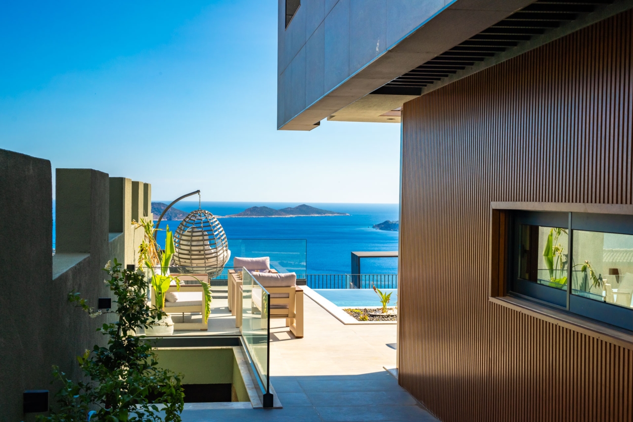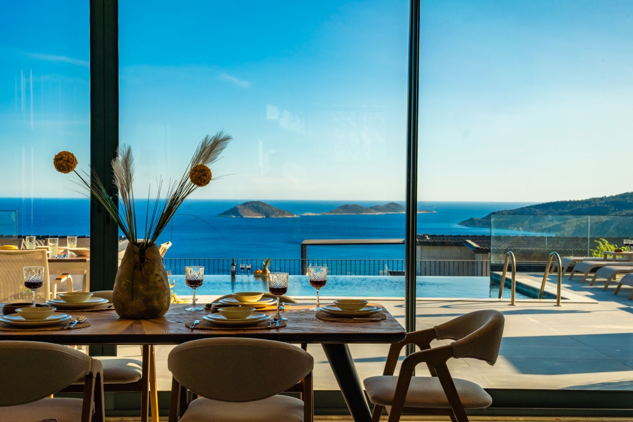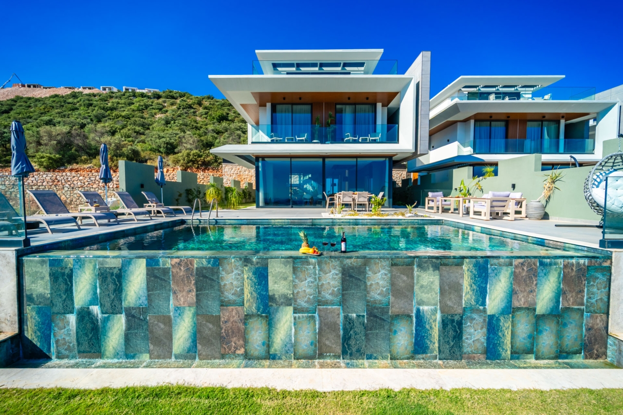 Villa Aura F is one of four newly completed, identical Aura villas situated in Kalkan's desirable Kalamar district, offering a serene and exclusive retreat. Finished in March 2025, this villa presents a private pool, sweeping sea views, bespoke design touches, and generous living space with three en-suite double bedrooms accommodating up to six guests. Inside, the interiors exude understated luxury, while outside, a thoughtfully designed terrace complements the pool and provides captivating vistas.Conveniently positioned close to CarrefourSa Supermarket, the villa is a short stroll from Kalamar Road’s popular eateries such as The Brothers, Porchini, The Kitchen by Korsan, and Cafe Vita. The renowned beach clubs of the Kalamar area such as Lures, Kulube, and Kalamar Beach Clubs are also nearby, with Kalkan's Old Town just a brief taxi journey away.Ground FloorOn entering the villa, you step into an open-plan space combining the kitchen, living, and dining areas. A stylish wooden...