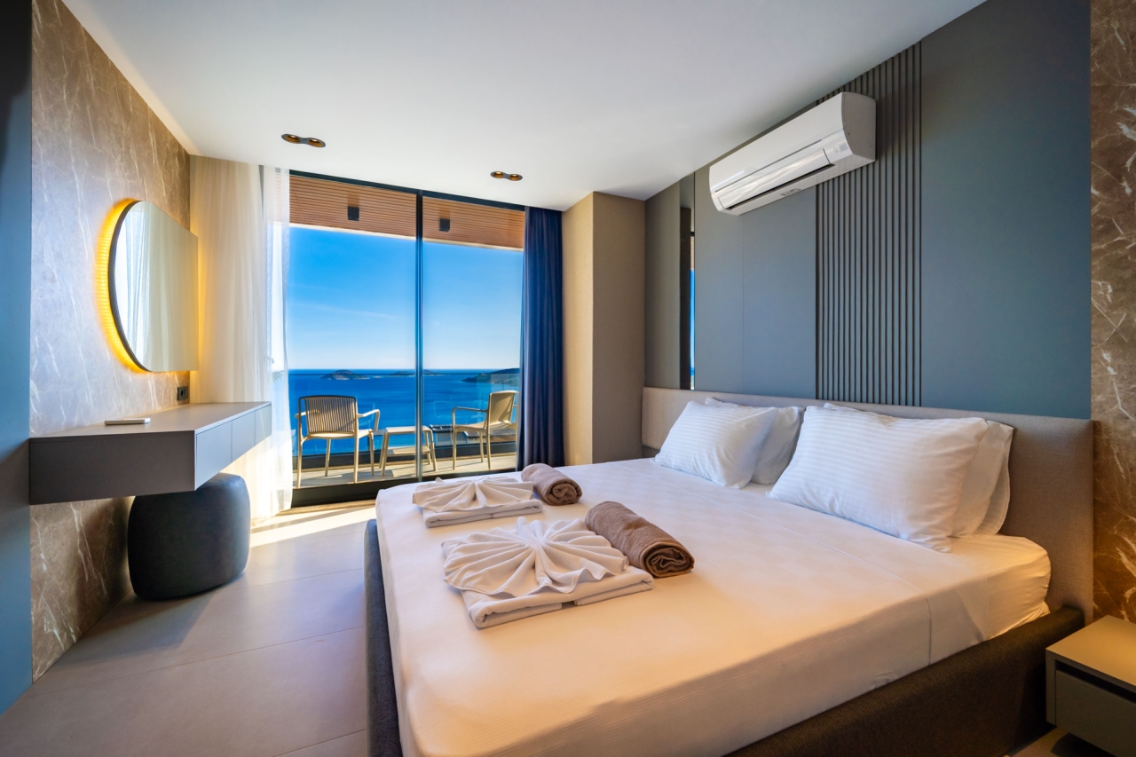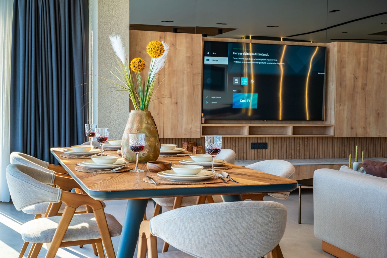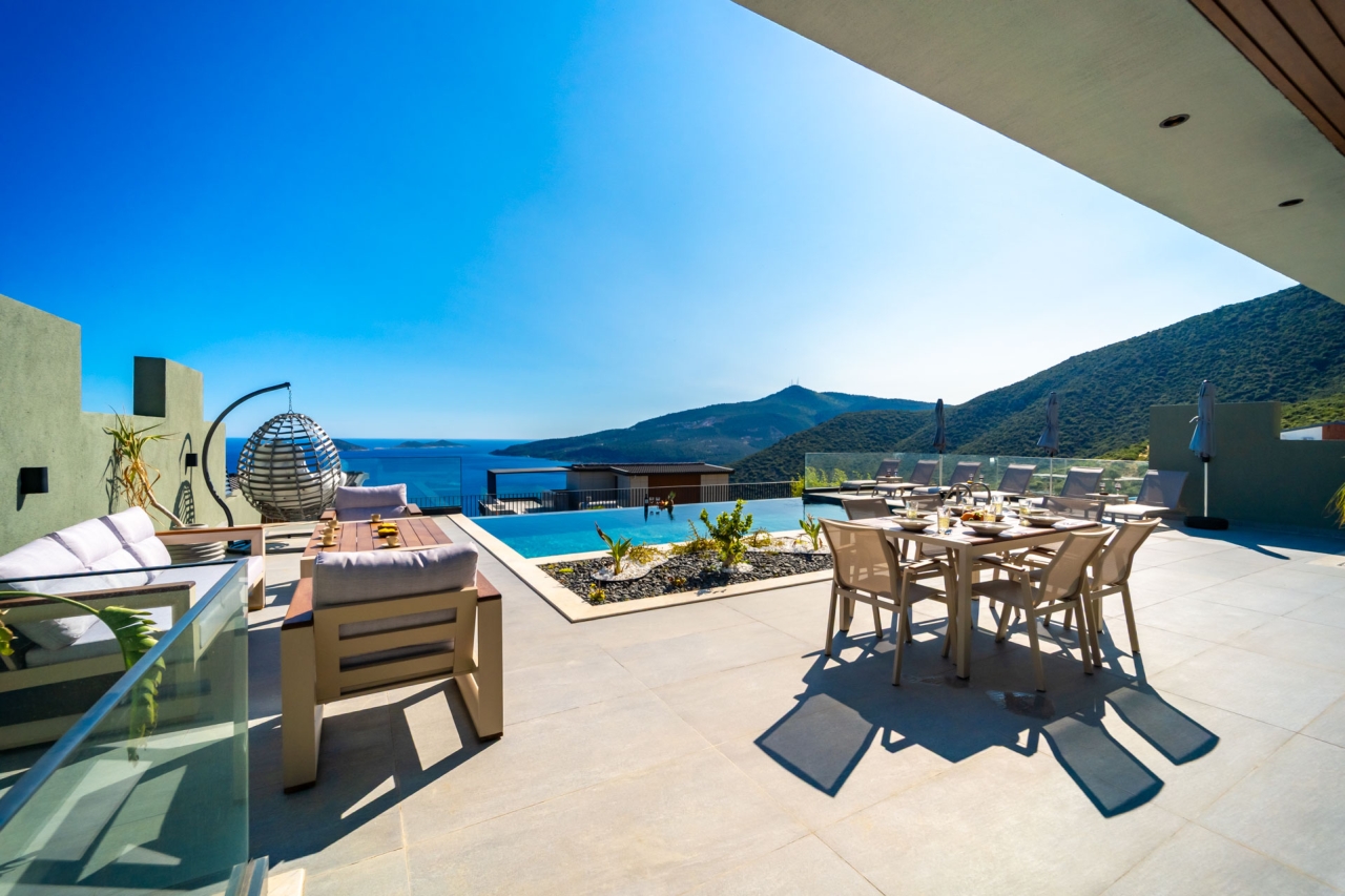 Villa Aura F is one of four newly completed, identical Aura villas situated in Kalkan's desirable Kalamar district, offering a serene and exclusive retreat. Finished in March 2025, this villa presents a private pool, sweeping sea views, bespoke design touches, and generous living space with three en-suite double bedrooms accommodating up to six guests. Inside, the interiors exude understated luxury, while outside, a thoughtfully designed terrace complements the pool and provides captivating vistas.Conveniently positioned close to CarrefourSa Supermarket, the villa is a short stroll from Kalamar Road’s popular eateries such as The Brothers, Porchini, The Kitchen by Korsan, and Cafe Vita. The renowned beach clubs of the Kalamar area such as Lures, Kulube, and Kalamar Beach Clubs are also nearby, with Kalkan's Old Town just a brief taxi journey away.Ground FloorOn entering the villa, you step into an open-plan space combining the kitchen, living, and dining areas. A stylish wooden...