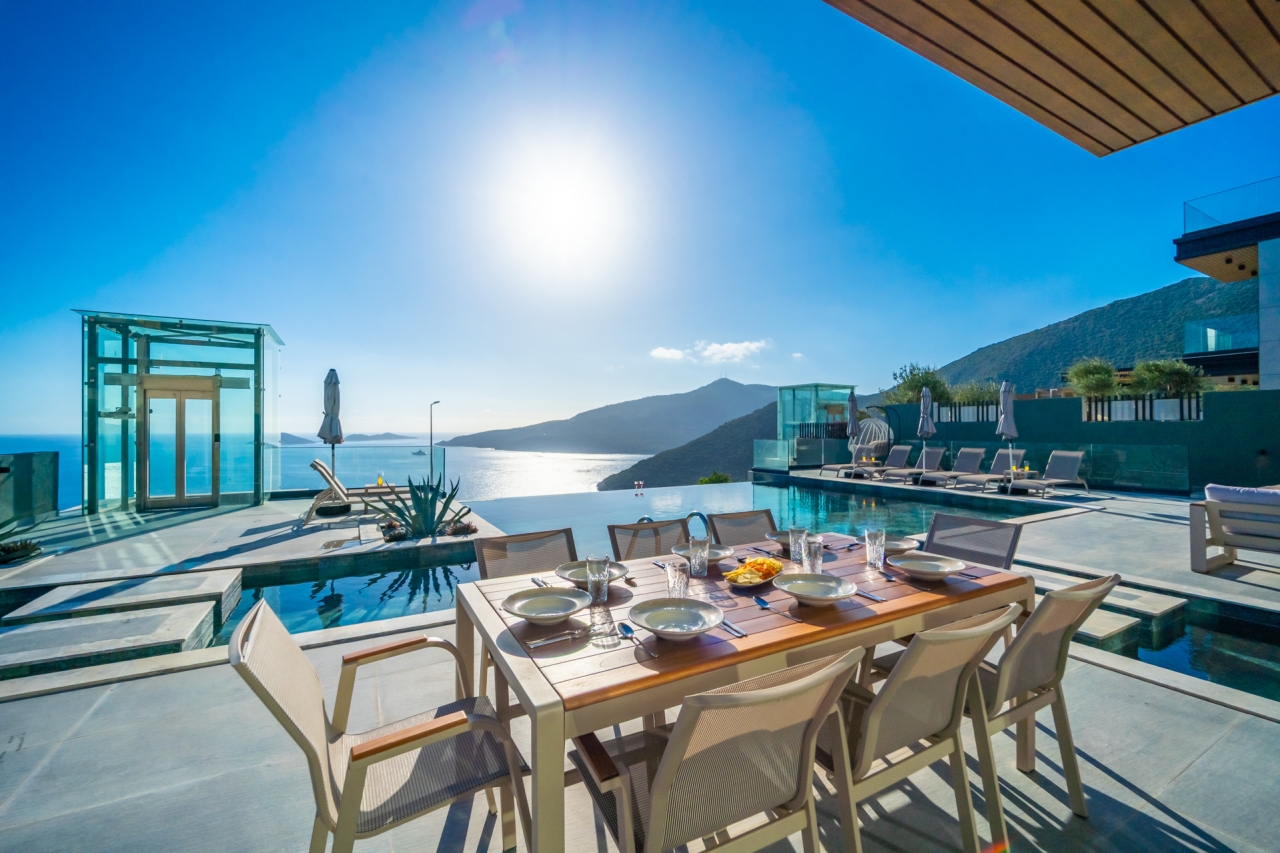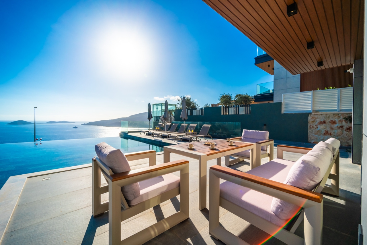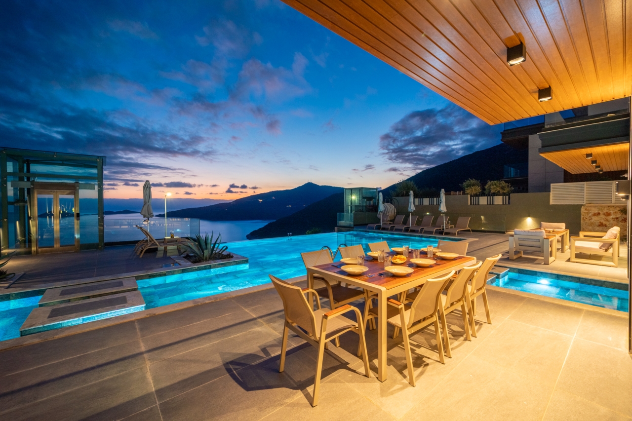 Villa Aura G stands as a distinguished new member of the Aura collection, situated in Kalkan's Kalamar district. Completed in November 2025, this modern residence offers a serene escape with bespoke design elements and sweeping panoramic sea views.Inside, the spacious and elegant interiors comfortably accommodate up to 10 guests across 5 en-suite bedrooms, making it well suited for large families or groups. Each room showcases meticulous craftsmanship and premium finishes throughout.Outside, the setting has been carefully arranged to take full advantage of the stunning Mediterranean vista. A generous private infinity pool is bordered by a thoughtfully designed sun terrace, creating an inviting space to unwind or enjoy evening drinks while watching the sun set over the bay.Conveniently located near CarrefourSa Supermarket, the property is also within easy reach of Kalamar Road’s restaurants—including The Brothers, Porchini, The Kitchen by Korsan, and Cafe Vita—and the well-known...