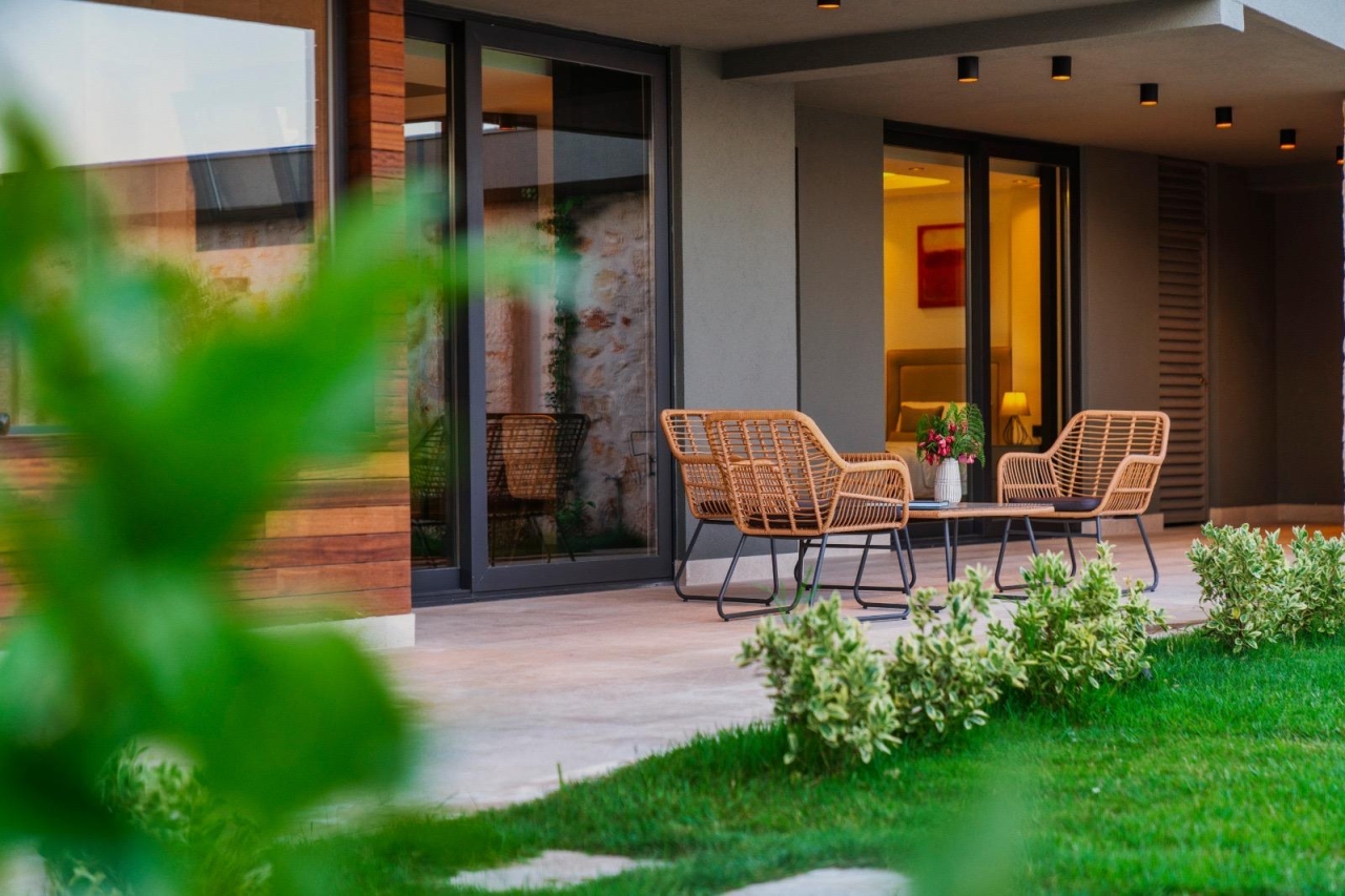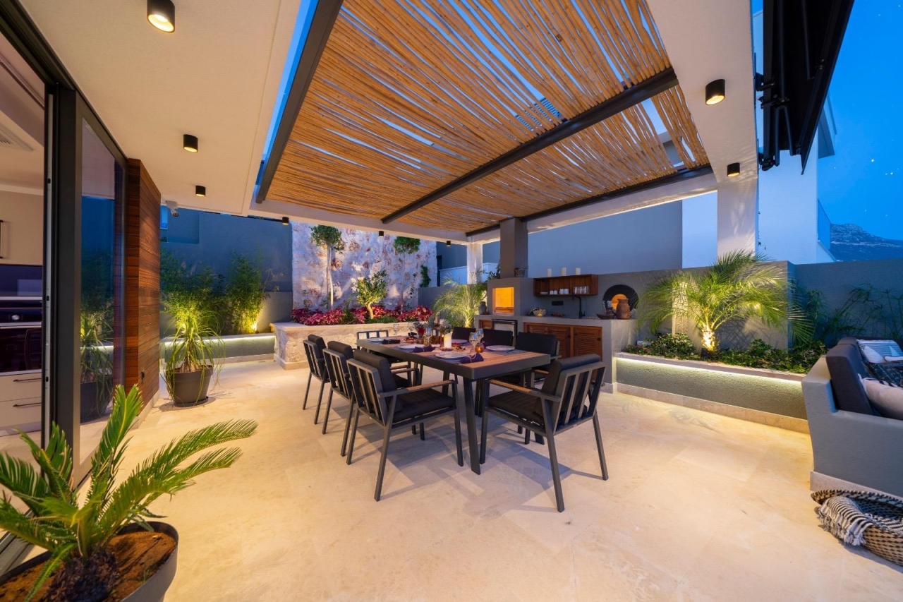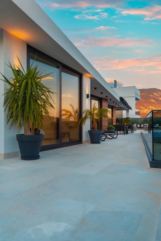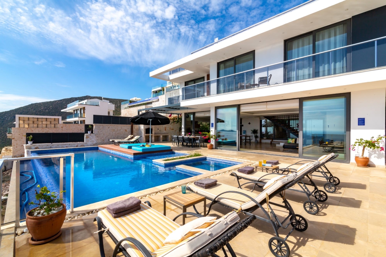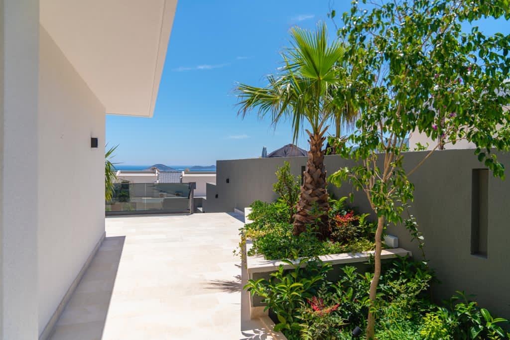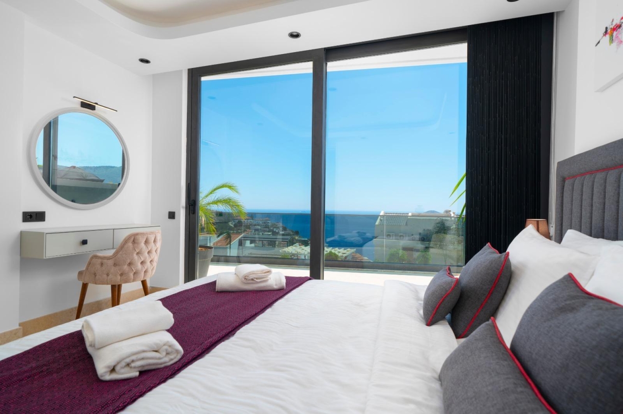 Villa Ayse is a striking 6-bedroom property with a sleek contemporary style, newly added to the luxury villa collection for the 2025 season. Inside, generous living spaces unfold, all enhanced by captivating views over Kalamar Bay and the neighbouring islands.The main villa contains four en-suite bedrooms, while two further en-suite rooms sit in the villa’s lower, grassed courtyard area.Situated in Kalkan’s desirable Kalamar district, the villa is a 20 to 25-minute walk—or a short 5-minute taxi ride—from the town centre. Dining options along Kalamar Road are reachable in 7 to 8 minutes on foot, and CarrefourSa Supermarket lies just 5 to 6 minutes away.Lower Ground Floor (Street-level entrance with external access) Approached via a side street, the villa includes a single-car garage. Entry is through a gate that opens onto a grassed courtyard. Two bedrooms occupy this level, each accessible through sliding doors from the courtyard and both with en-suite shower...