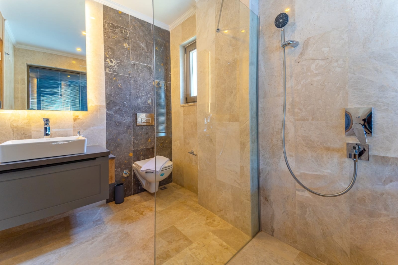 Villa Banu is a recent addition to our portfolio and forms part of an exclusive trio of contemporary villas perched just above the harbour road. Completed in 2022, these elegant properties offer lavish accommodation for up to six guests across three bedrooms. Each villa has been carefully crafted to make the most of the stunning sea views and includes a private infinity pool with an integrated jacuzzi. The location is superb, with the harbour, Old Town, and popular beach clubs such as Indigo, Cakil, Yali, and Likya Gardens all within a ten-minute stroll. Access to Villa Banu is via a private garage and wooden gate off the harbour road, followed by steps leading up to the pool terrace.Ground FloorEntering from the rear, you step into a bright and spacious open-plan living area. Immediately to the right of the entrance is a utility room with a washing machine, which connects to a cloakroom equipped with a WC and basin. The lounge is furnished with a wall-mounted Smart TV, a generous...