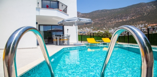 Nestled in the heart of Kalkan’s Ortaalan district, Villa Baysal Guney stands as an idyllic retreat, beckoning couples and families to craft unforgettable holiday memories. Immerse yourself in the enchanting ambience of this specially designed villa, a haven crafted for dreamy honeymoons and serene family getaways. With a capacity for four people, it emerges as the perfect choice for those seeking a romantic and tranquil escape.Indulge in leisurely days with one of the two private pools, each a secluded oasis—one on the main outer terrace and another perched on the enclosed roof terrace. Greet the dawn with the first rays of sunlight, sipping a cup of coffee on your balcony while absorbing the breathtaking natural panorama, an experience that enhances the intrinsic value of your solitary moments.Villa Baysal Güney is a masterpiece of aesthetics and elegance, boasting minimalist and stylish design. With two bedrooms, three comfortable beds, and two meticulously appointed...