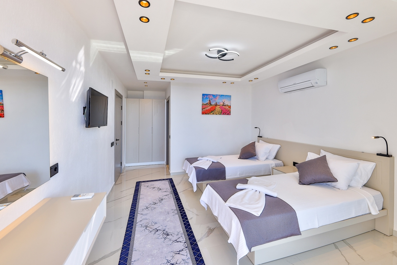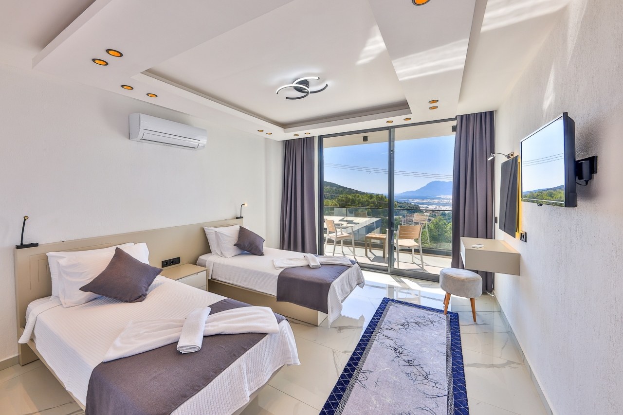 Villa Cigdem is a stunning holiday property situated in the Akbel area of Kalkan, just a brief 5-6 minute drive from the town centre and nearby beach clubs.This elegant villa offers three bedrooms, each with its own bathroom. On the first floor, you’ll find a double bedroom and a twin bedroom; the double benefits from a relaxing jacuzzi bathtub, and both rooms open onto balconies—ideal spots to unwind. The third bedroom, also a double, is located on the lower ground floor.The living room, kitchen, and dining space feature floor-to-ceiling windows that flood the interior with natural light and provide direct access to the pool area.Outside, there is a private swimming pool complete with a shallow section perfect for relaxing. Sun loungers and a large parasol invite you to make the most of sunny days by the water. The poolside also includes a swing seat, shaded seating areas, a covered dining table, and a stone BBQ for al fresco cooking.Bedrooms1. Lower Ground Floor: Double bed,...