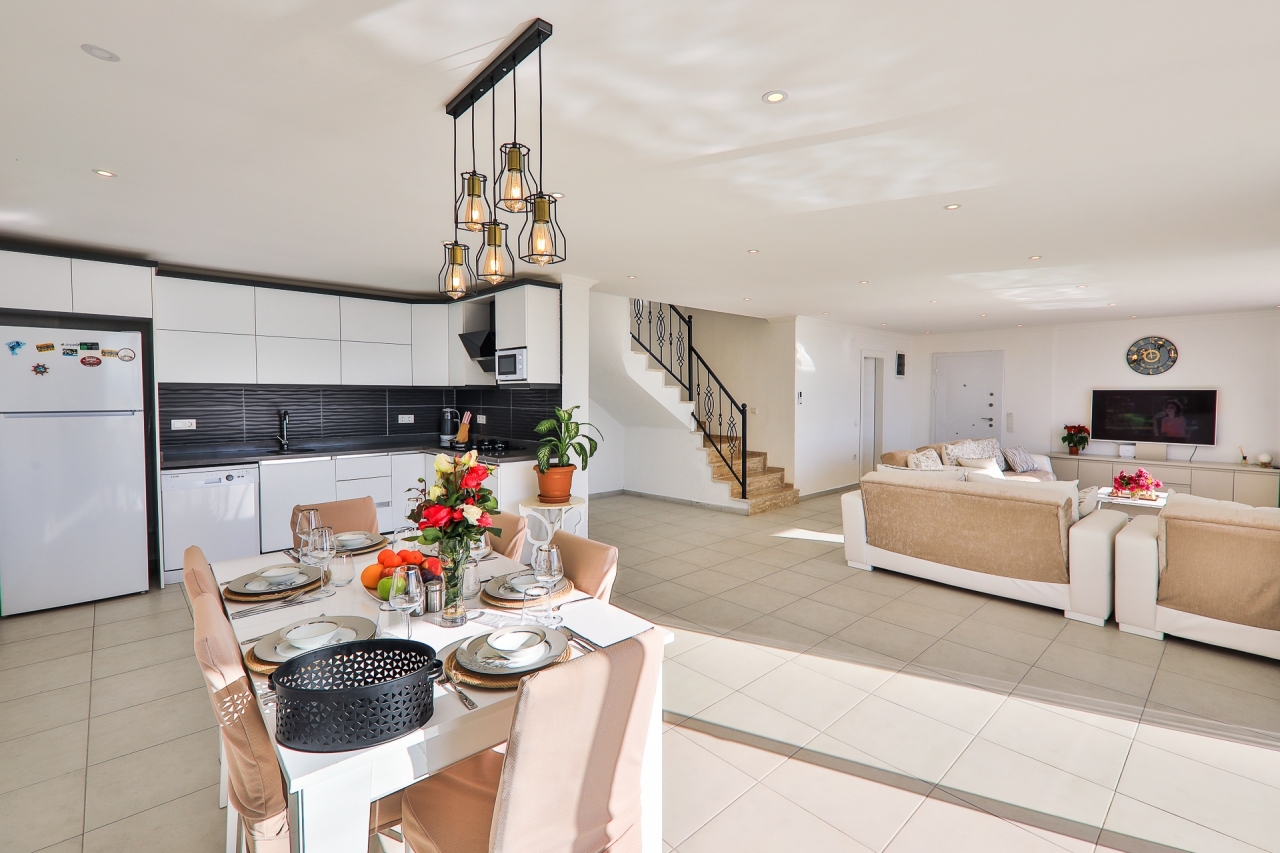 Villa Dream House, set in the tranquil Kordere district of Kalkan, offers a thoughtfully arranged layout that ensures both privacy and calm. Inside, you’ll discover spacious rooms adorned with refined furnishings, while the pool terrace presents breathtaking views of the sea and mountains.Spread over two floors, the villa accommodates two en-suite bedrooms. The master bedroom is a standout, featuring a double jacuzzi for added indulgence. This property is an excellent choice for small families seeking a peaceful and scenic retreat.Just a 7-8 minute drive from Kalkan town centre, Villa Dream House is conveniently close to a variety of restaurants, shops, and beach clubs. For everyday needs, the A101 supermarket is a mere 100 metres away.Ground FloorThe ground floor of the villa is generously proportioned, offering ample room to unwind. Here you’ll find the living space, a fully equipped kitchen, and a dining area with seating for six.The living room is furnished with two large...