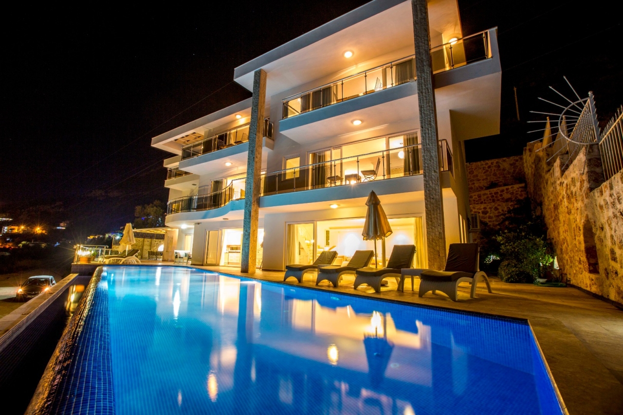 We are delighted to welcome Villa Eagles Lodge to our luxury portfolio for the 2025 season. This generously proportioned, contemporary villa offers six bedrooms and six bathrooms, comfortably accommodating up to 12 guests.Set on a 1/3-acre site, Villa Eagles Lodge enjoys a commanding hillside position with sweeping views over Kalkan. Comparable in scale to a boutique hotel, the property combines elegant indoor and outdoor living spaces. The highlight outdoors is an 18-metre infinity pool with an integrated Jacuzzi, inviting both relaxation and admiration of the sea vista.The villa extends across two levels without any attic rooms or restrictions. Surrounded by tranquil parkland sprinkled with olive trees, its elevated setting ensures exceptional privacy and peacefulness. At least 150 yards separate it from neighbouring properties, reinforcing a true sense of seclusion. Alongside the pool and Jacuzzi, there is a large BBQ area, a generous sun terrace equipped with 12 loungers, a shaded...
