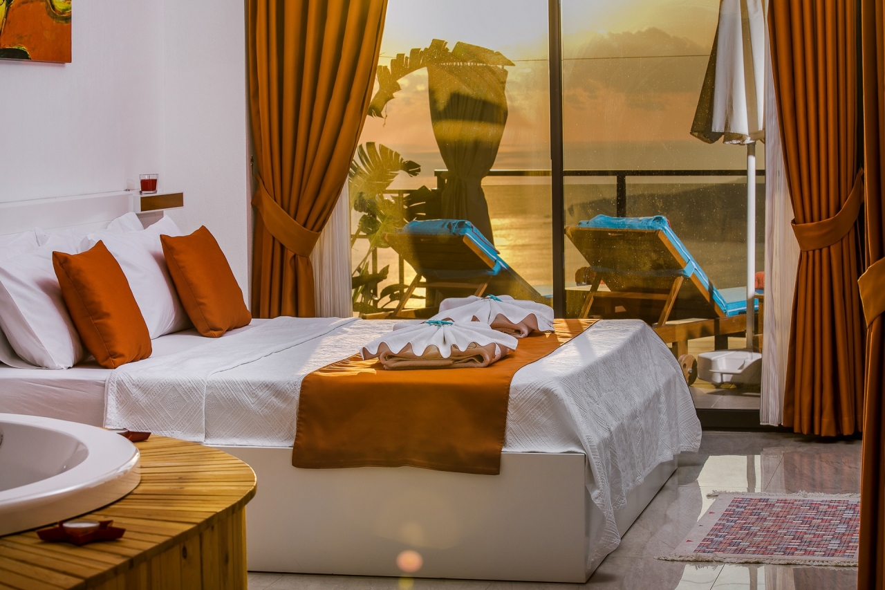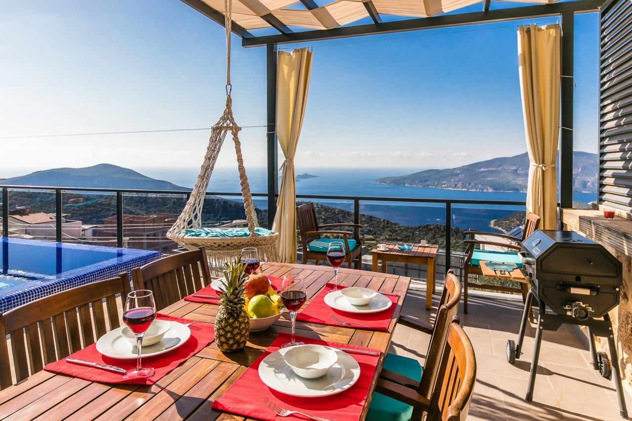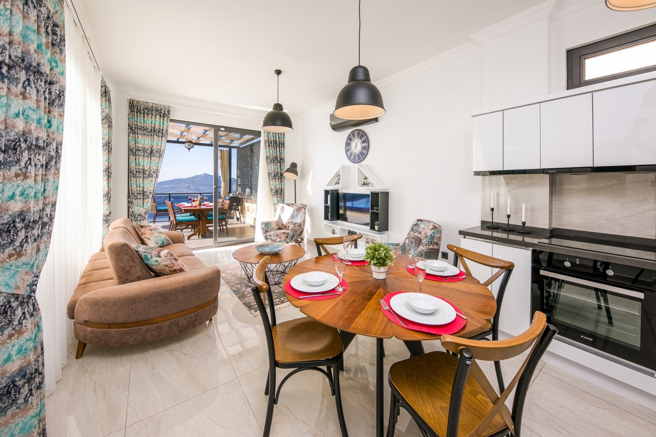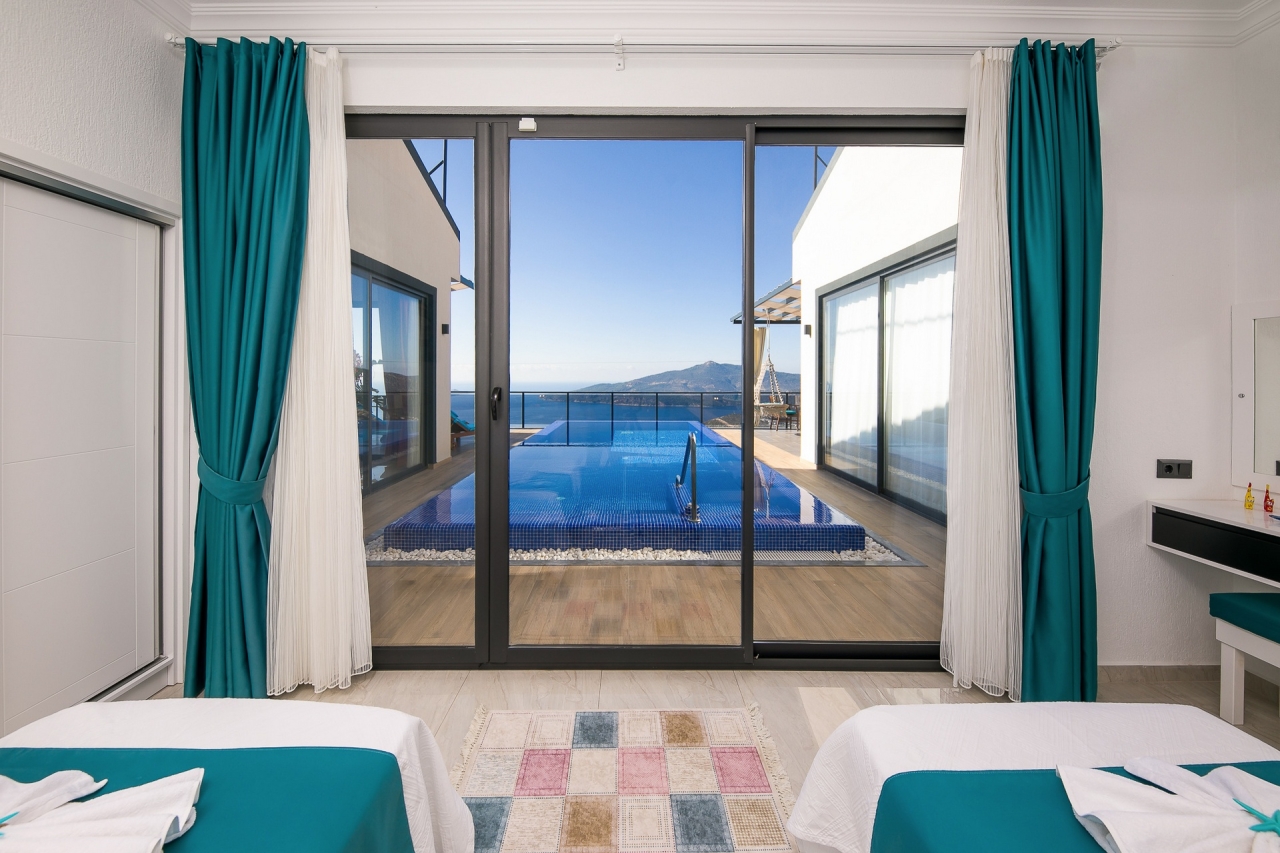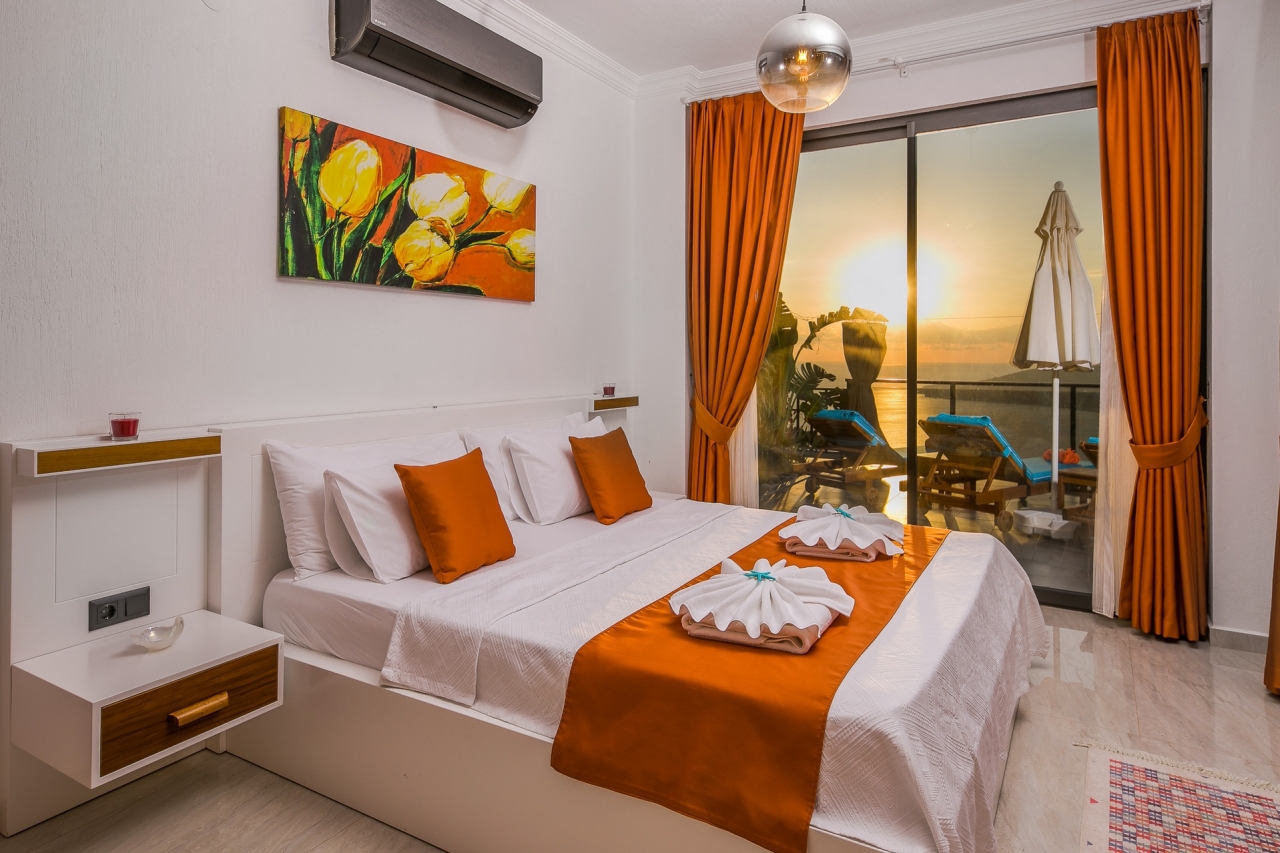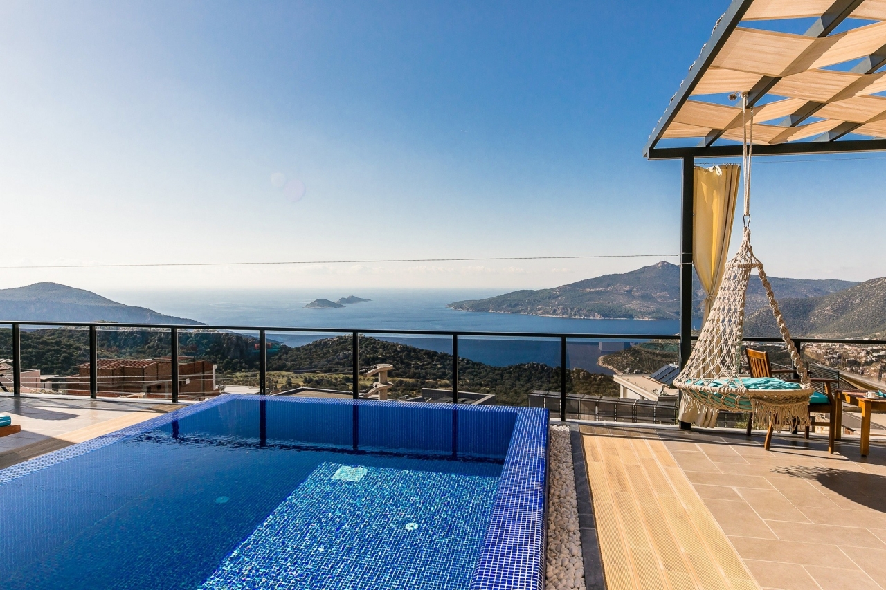 Villa Efe is a private and luxurious retreat located in Kalkan’s Kordere district, thoughtfully designed in a distinctive U-shape that encloses a tranquil pool at its heart. The pool features elegant Roman steps and soothing jacuzzi jets, creating a peaceful spot to unwind. Inside, the villa offers two bedrooms: a double and a twin, making it ideal for small families or couples seeking a quiet escape. The double bedroom is particularly indulgent, complete with its own jacuzzi bath.From Villa Efe, you can enjoy captivating sea views and sunsets, often described as some of the most remarkable in Kalkan. The town centre, with its array of restaurants, shops and beach clubs, is just a 6 to 7-minute drive away. Meanwhile, two supermarkets, Sok and Migros Jet, lie within a comfortable 5 to 6-minute walk.InteriorsThis single-storey villa is cleverly laid out with an open-plan living area and kitchen on one side, while the double bedroom occupies the opposite wing, with the twin bedroom...