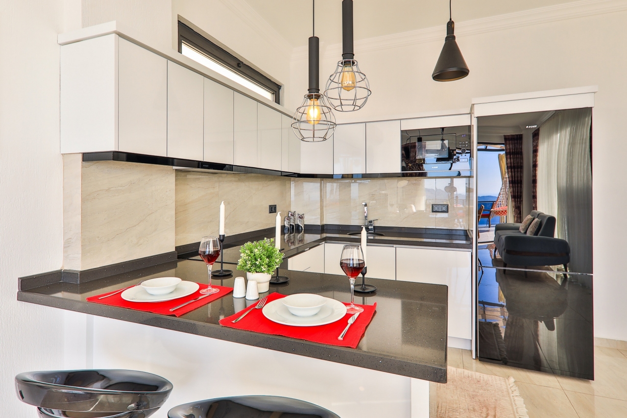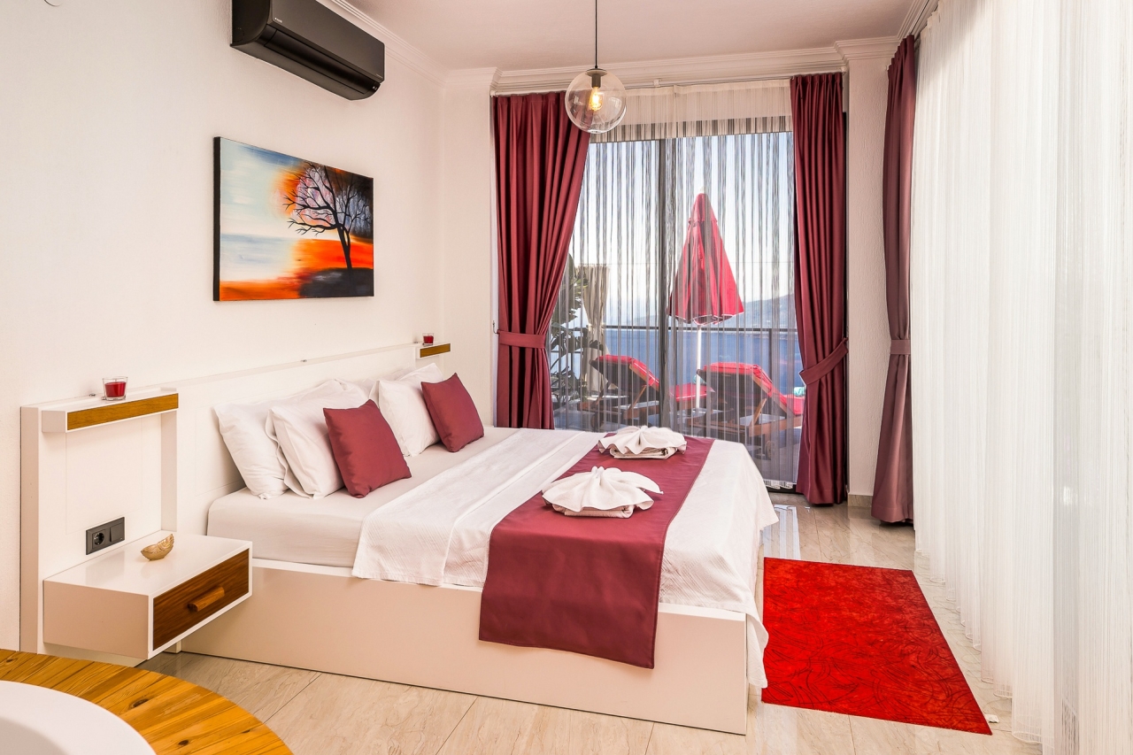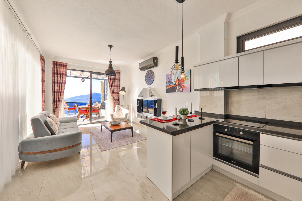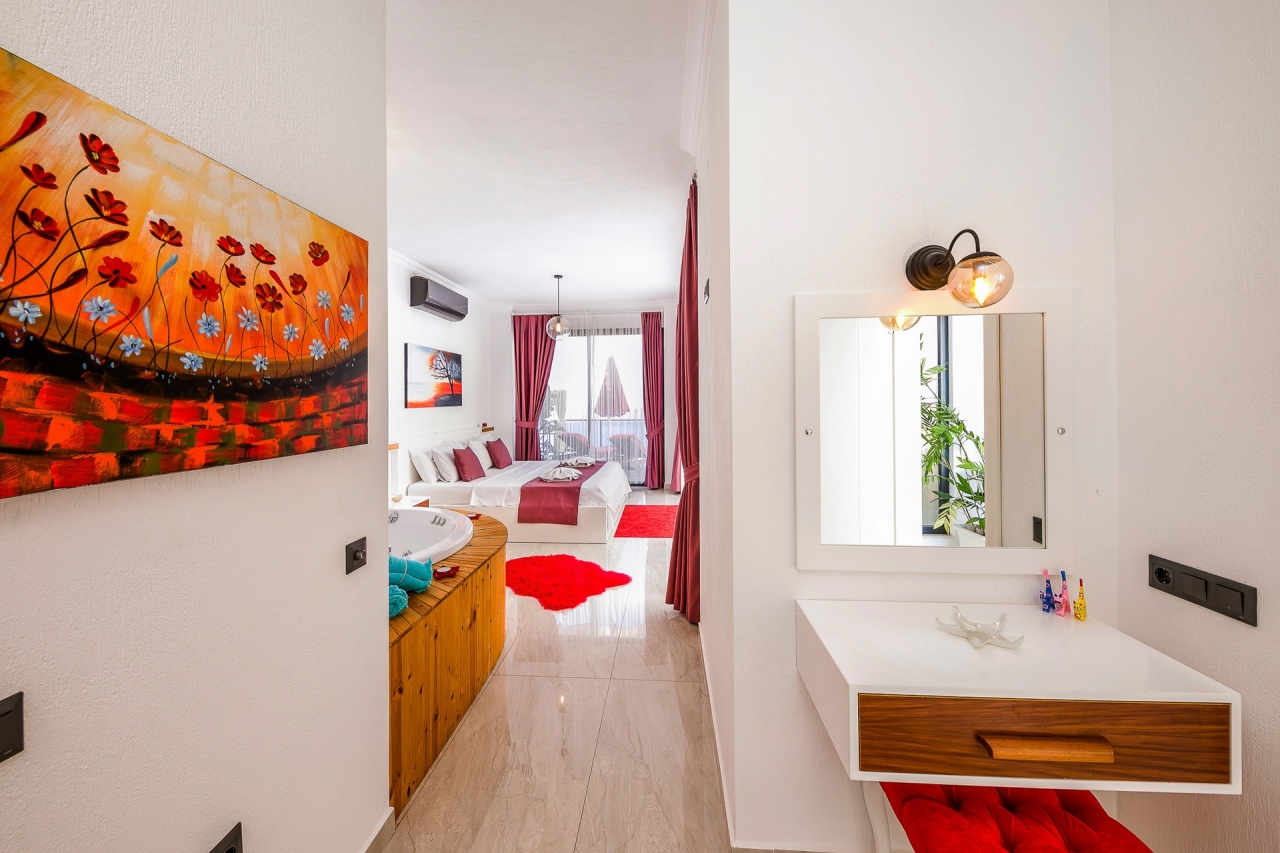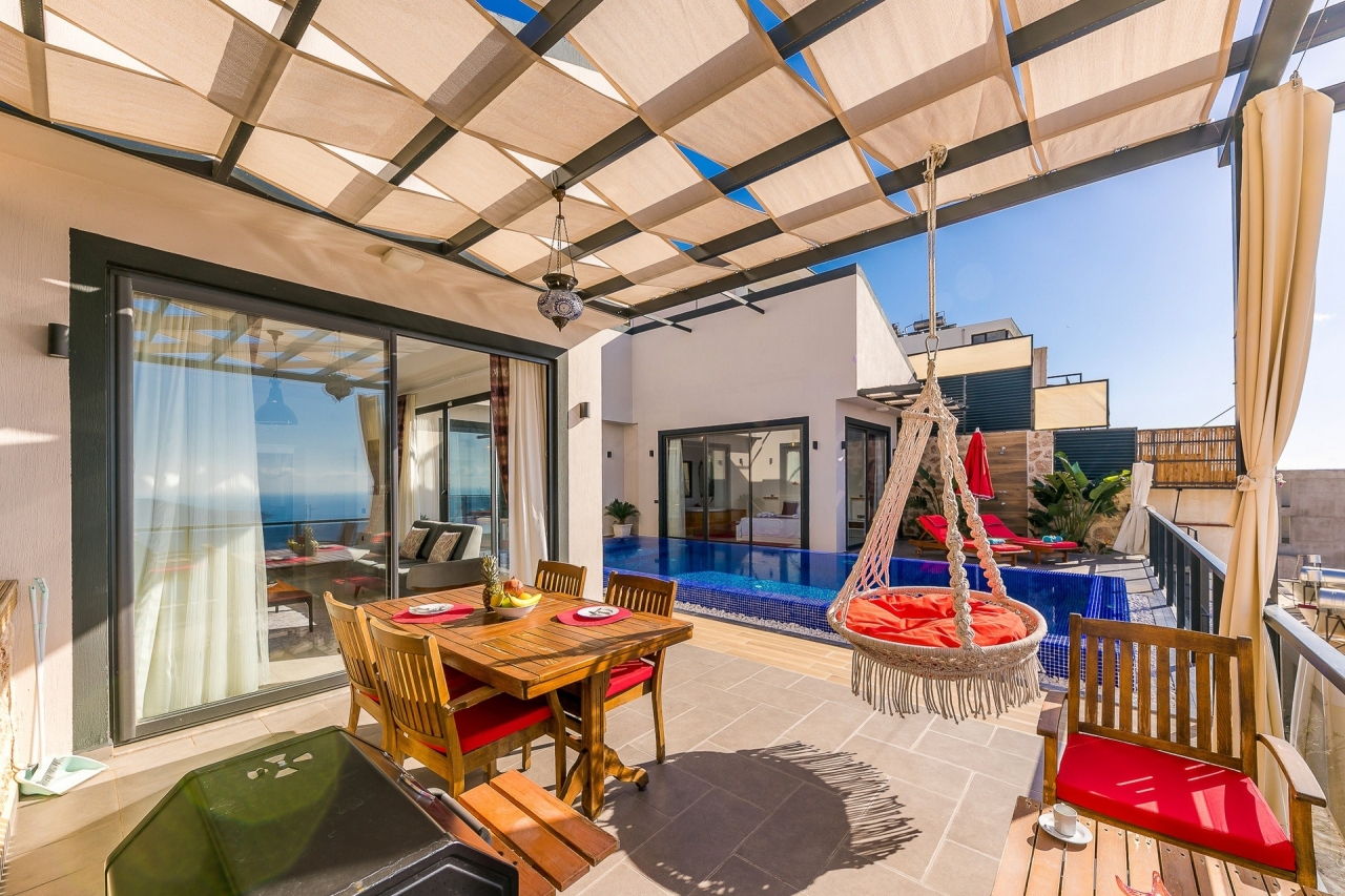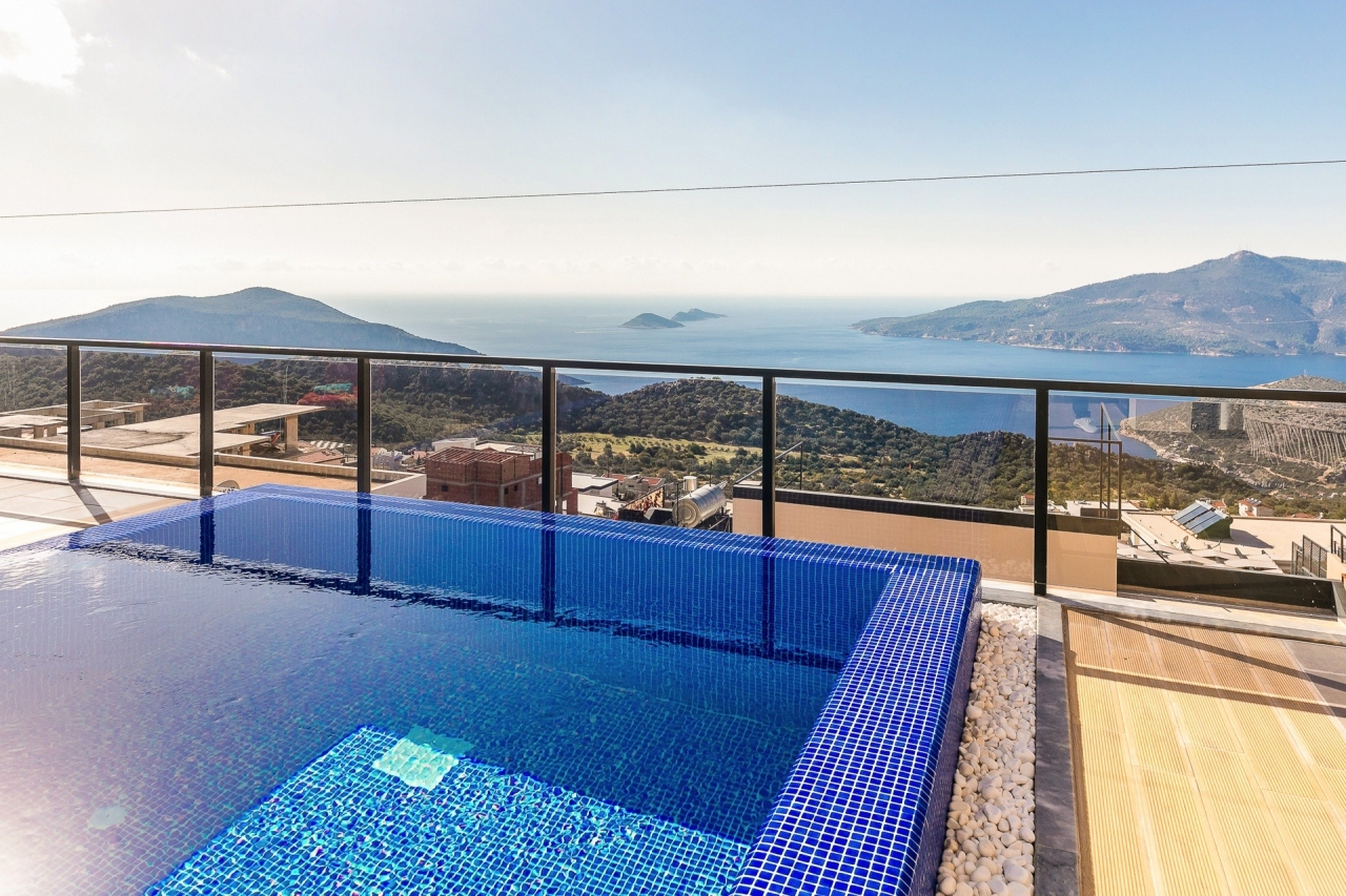 Villa Ege is a stylish and private retreat in Kalkan's Kordere district, thoughtfully designed in a distinctive U-shape with a secluded pool nestled at its heart. The pool features Roman-style steps and soothing jacuzzi jets, inviting you to unwind in utter calm. Inside, a chic bedroom with a double jacuzzi sets the scene for romance—ideal for honeymooners or couples seeking a tranquil escape.From here, the sea views and sunsets are truly captivating, often hailed as some of the finest in Kalkan. Just a short 6 to 7-minute drive brings you to the town centre, where an array of restaurants, shops, and beach clubs awaits. For everyday essentials, two supermarkets—Sok and Migros Jet—are conveniently reachable within a 5 to 6-minute stroll.InteriorsAll on one level, the villa’s layout divides between an open-plan living area and kitchen on one side, with the double bedroom on the other. The living space is modern and spacious, furnished with a comfortable sofa, a wooden coffee...