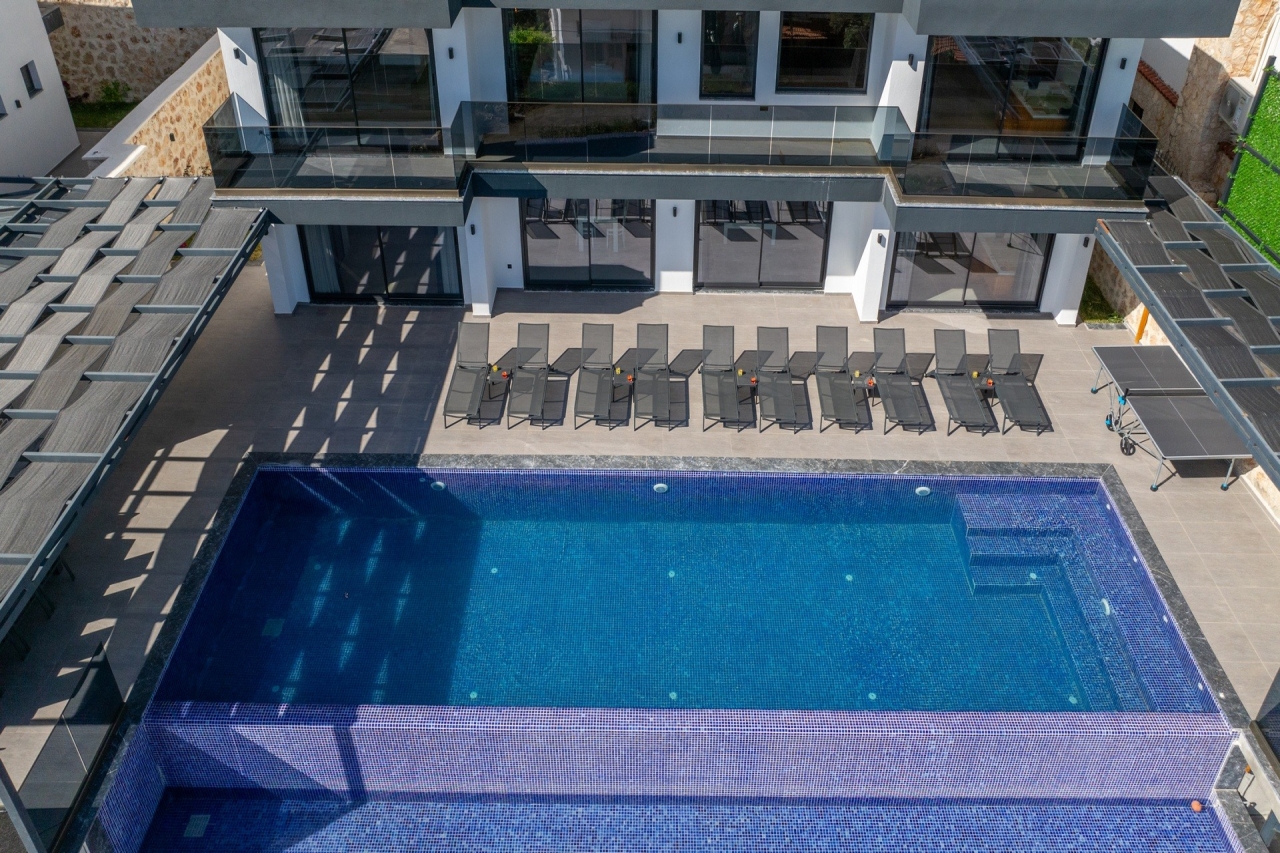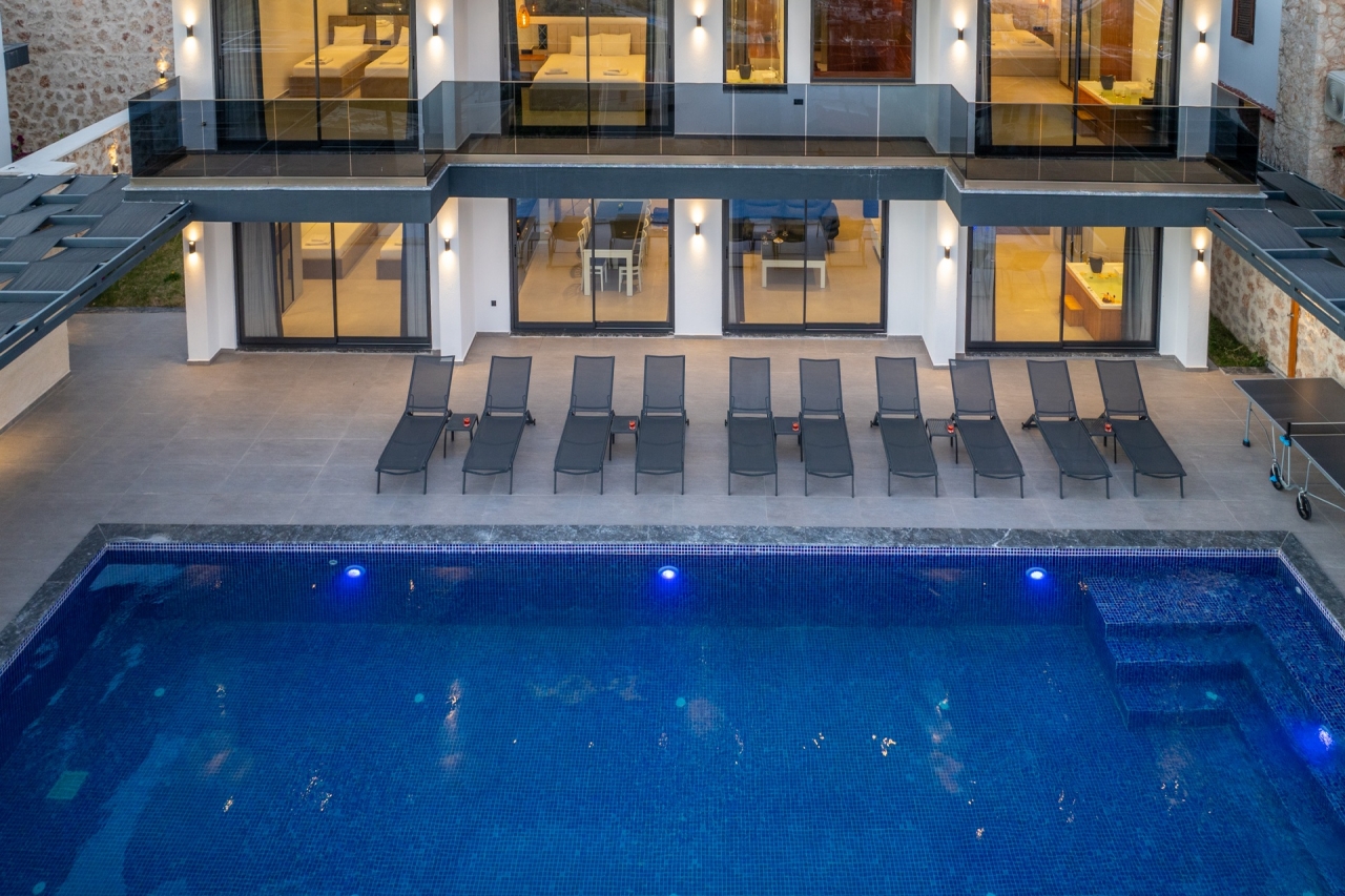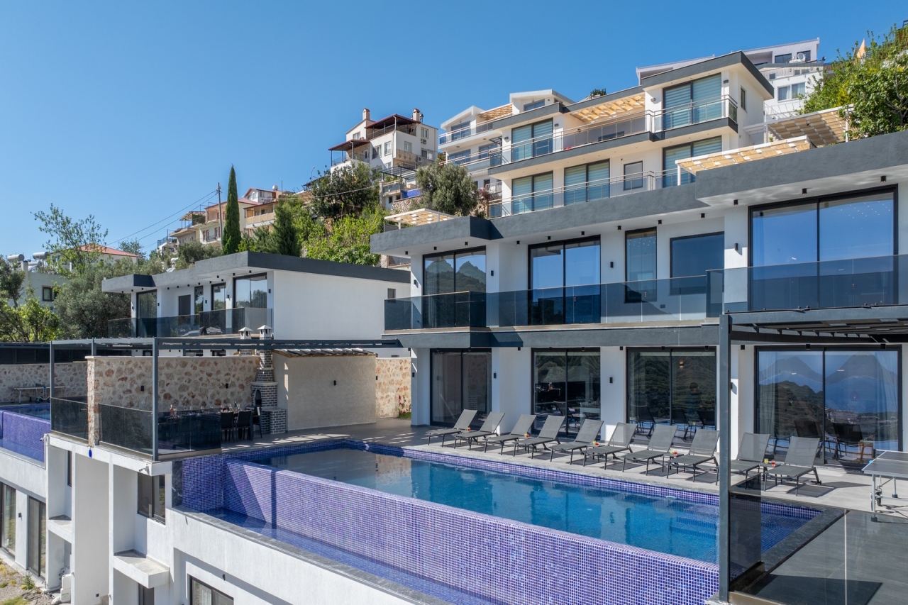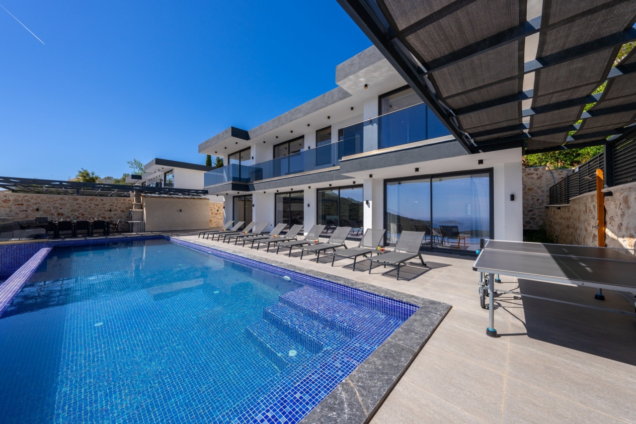 Villa Elit 3, one of a pair of identical villas positioned side by side above Kalkan, enjoys an enviable elevated spot with captivating sea views. Just a short 5-minute drive from Kalkan town centre, it offers effortless access to the local restaurants, shops and beach clubs. Inside, the villa presents five generously sized en-suite bedrooms, with the double rooms featuring indulgent jacuzzis for added luxury. Additional amenities include a sauna and table tennis facilities. The interiors are bright and spacious, thoughtfully designed with modern comforts that ensure a relaxed yet contemporary atmosphere. Perhaps the villa’s standout feature is its extensive pool terrace, centred around a 17-metre pool that invites guests to unwind outdoors while taking in the stunning surroundings.Bedrooms1. Ground floor: double bed, bedside table, air conditioning, wardrobe, vanity table, jacuzzi, bathroom and WC. 2. Ground floor: twin beds, bedside table, air conditioning,...