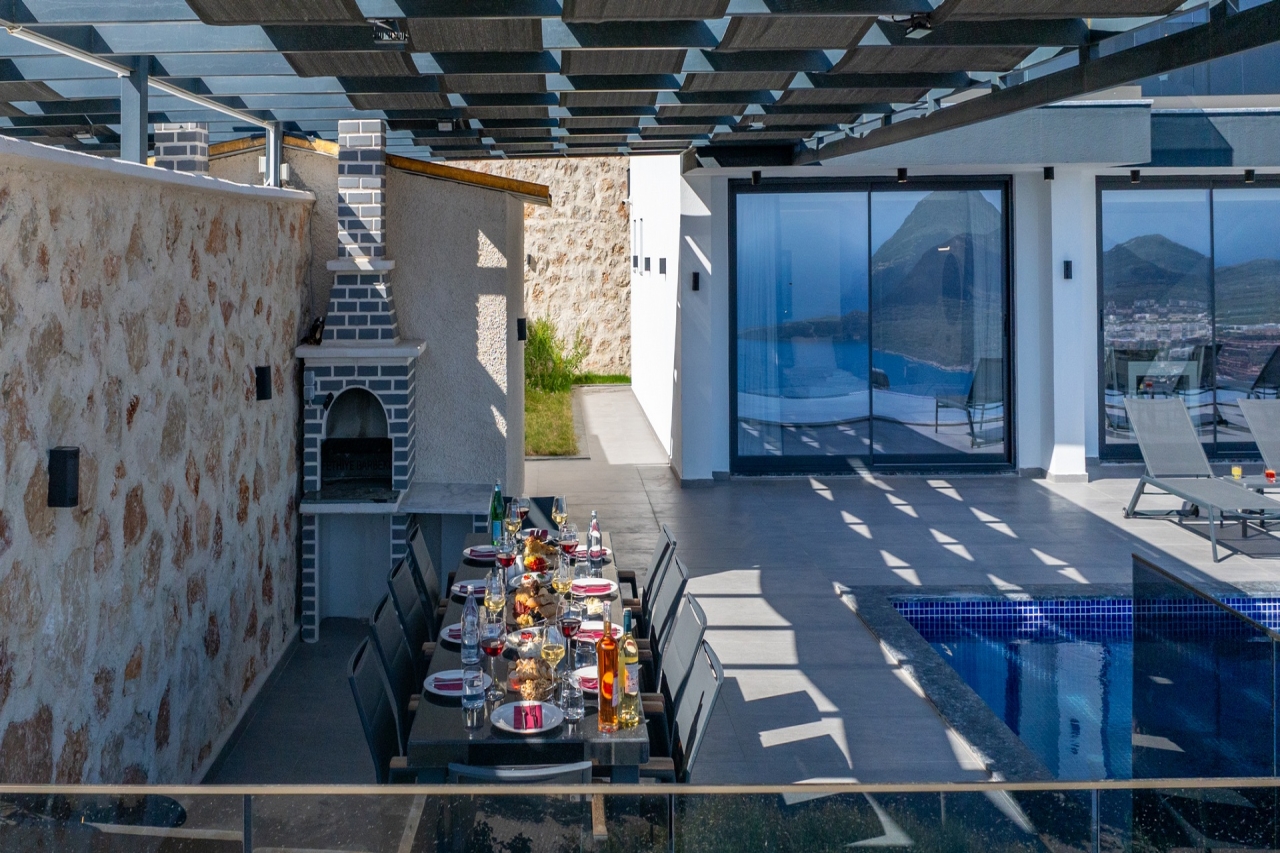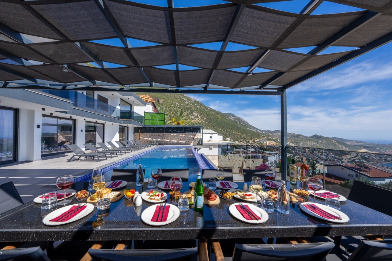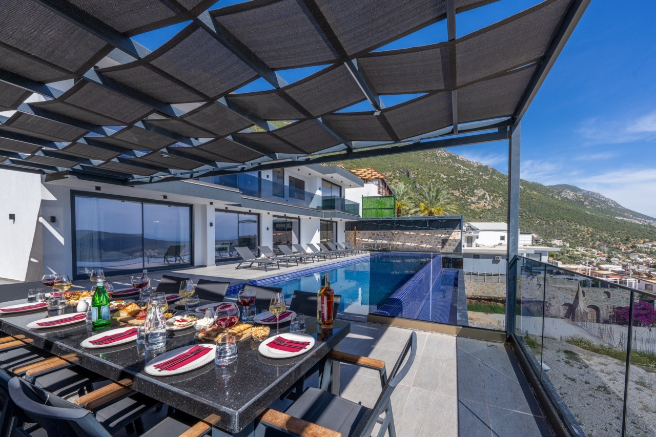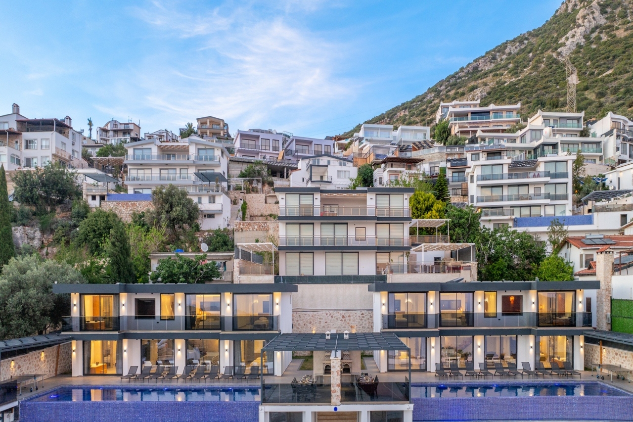 Villa Elit 3, one of a pair of identical villas positioned side by side above Kalkan, enjoys an enviable elevated spot with captivating sea views. Just a short 5-minute drive from Kalkan town centre, it offers effortless access to the local restaurants, shops and beach clubs. Inside, the villa presents five generously sized en-suite bedrooms, with the double rooms featuring indulgent jacuzzis for added luxury. Additional amenities include a sauna and table tennis facilities. The interiors are bright and spacious, thoughtfully designed with modern comforts that ensure a relaxed yet contemporary atmosphere. Perhaps the villa’s standout feature is its extensive pool terrace, centred around a 17-metre pool that invites guests to unwind outdoors while taking in the stunning surroundings.Bedrooms1. Ground floor: double bed, bedside table, air conditioning, wardrobe, vanity table, jacuzzi, bathroom and WC. 2. Ground floor: twin beds, bedside table, air conditioning,...