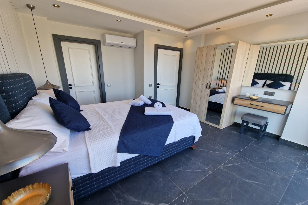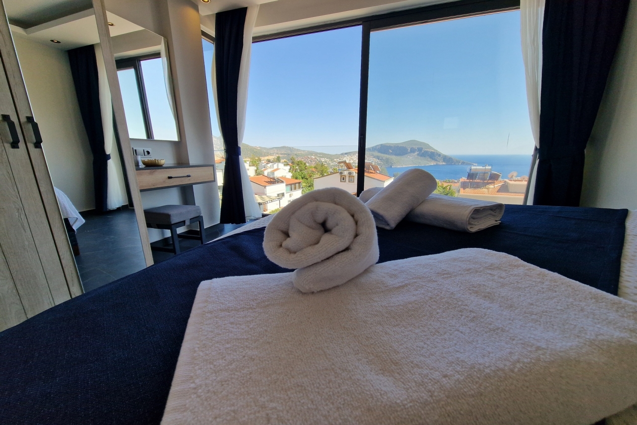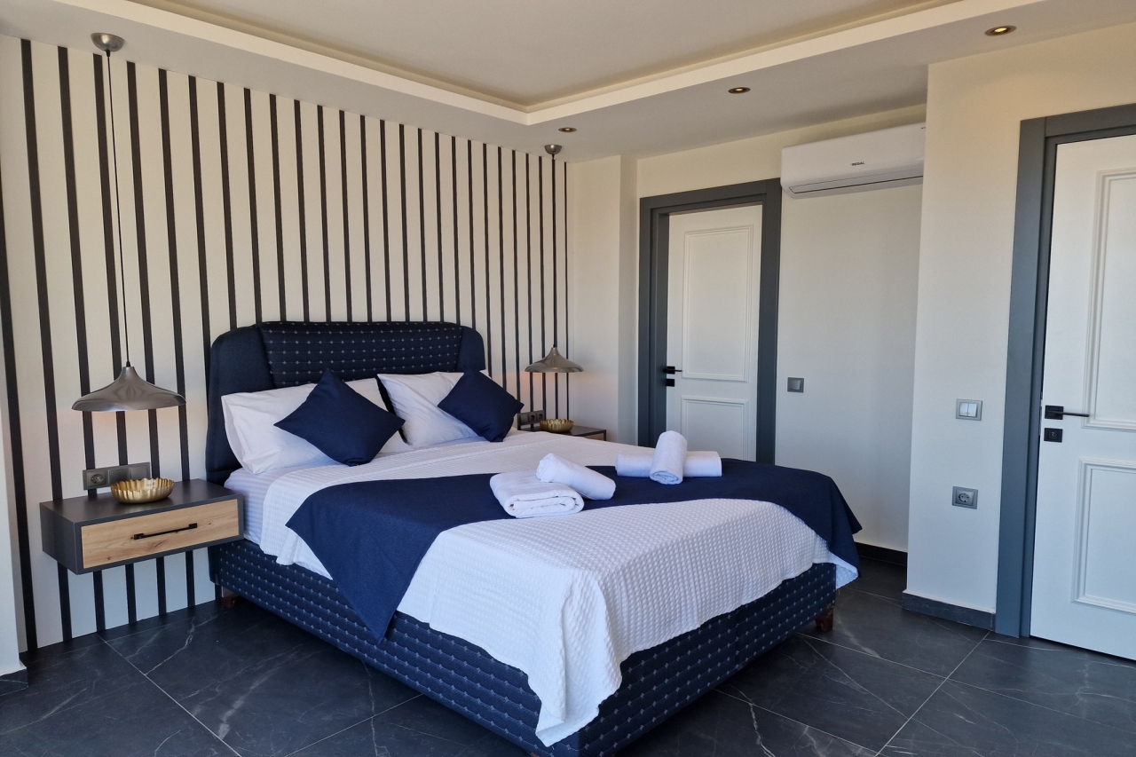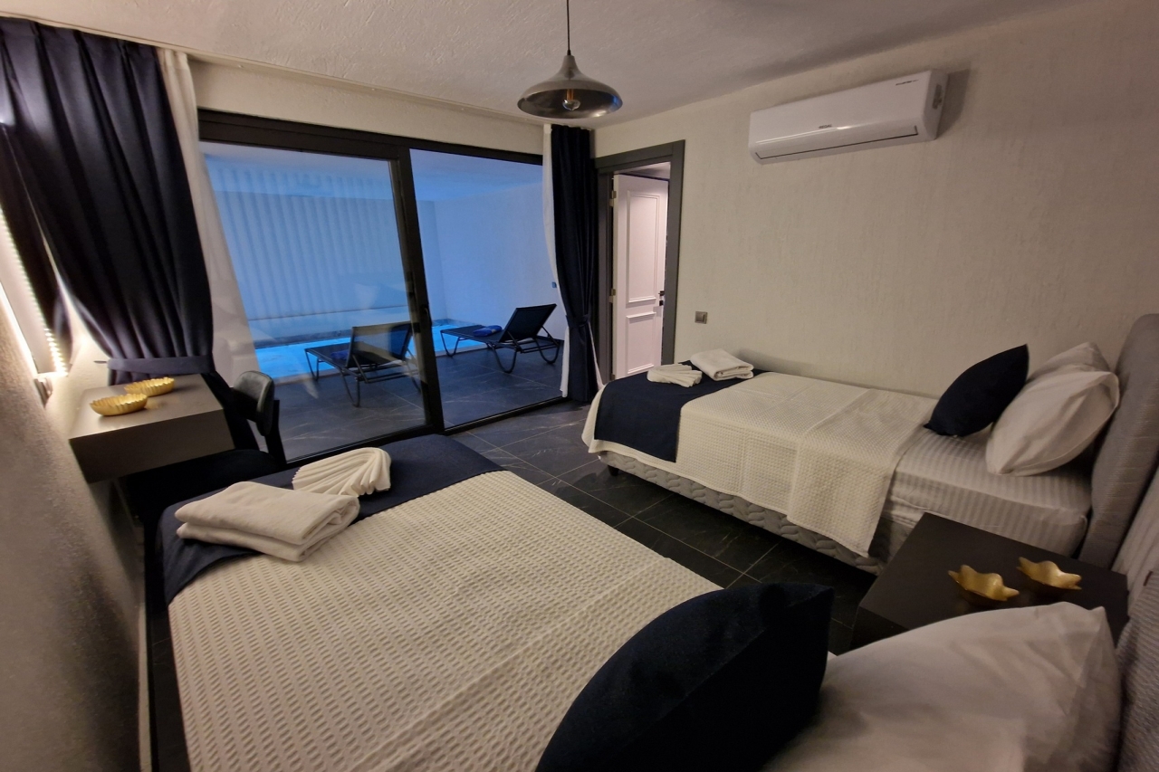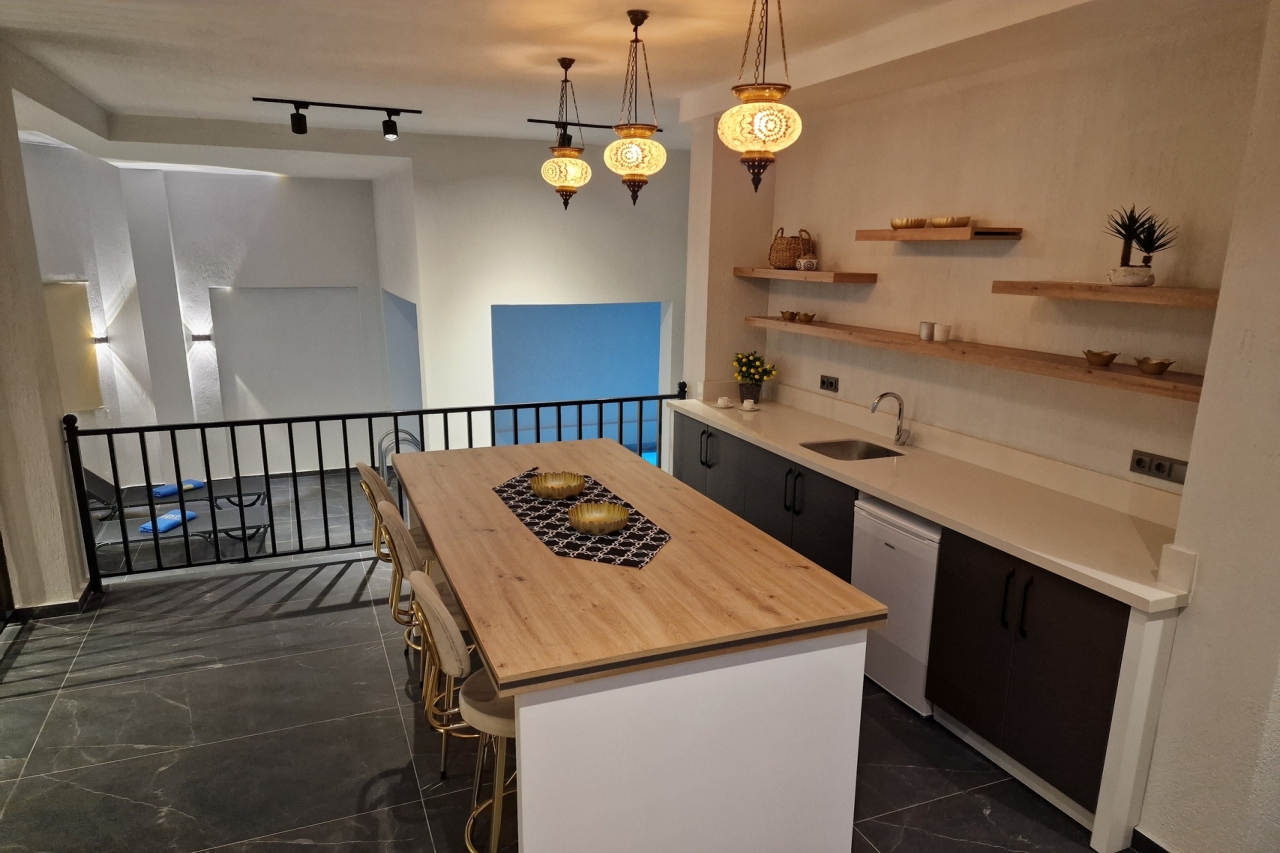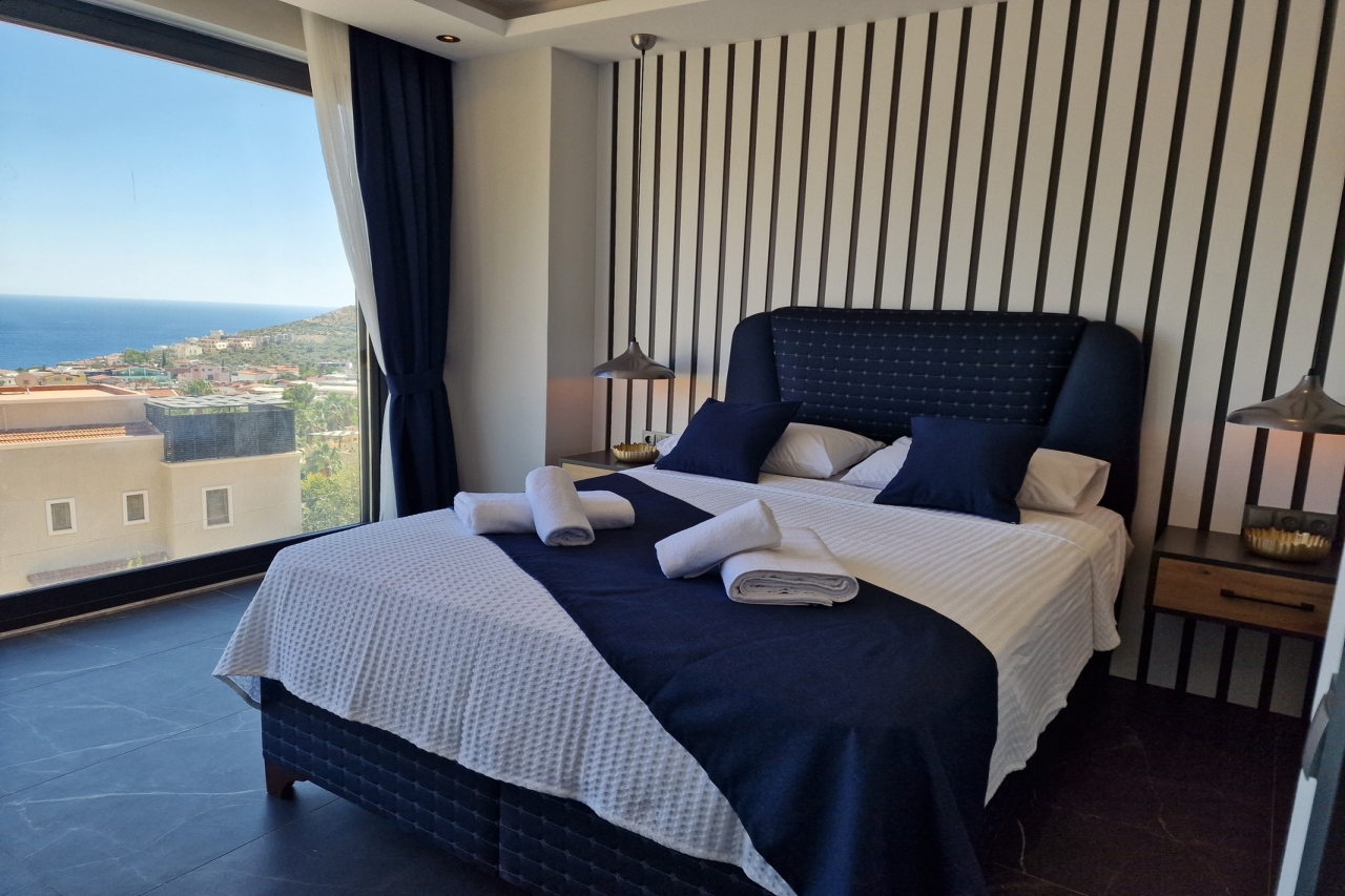 Villa Elite Escape, a fresh arrival for the 2026 season, presents captivating sea views from its first and second floors, inviting you to unwind in serene surroundings. Situated in the sought-after Ortaalan district, the villa is just a leisurely 10 to 12-minute stroll from Kalkan’s bustling town centre, with its charming restaurants, boutique shops and lively bars. For added convenience, the Migros supermarket is easily within reach.This remarkable home features two pools—an outdoor L-shaped swimming pool on the terrace and a heated indoor pool below—alongside a sauna, a cosy cinema room, and a table football setup that promises lighthearted competition. Descend to the lower ground floor where a kitchen bar with three stools sits ready for casual drinks. A mini fridge and sink with an array of glassware are thoughtfully arranged above, while a washing machine is tucked beneath the stairs. This level also hosts a spacious double bedroom with an en-suite shower room. Sliding...