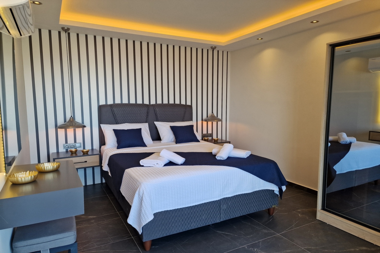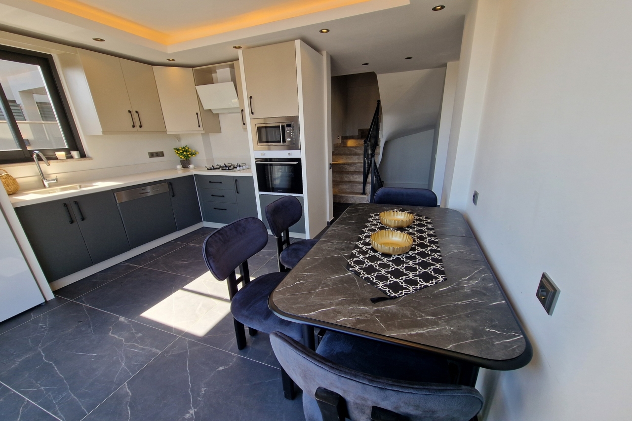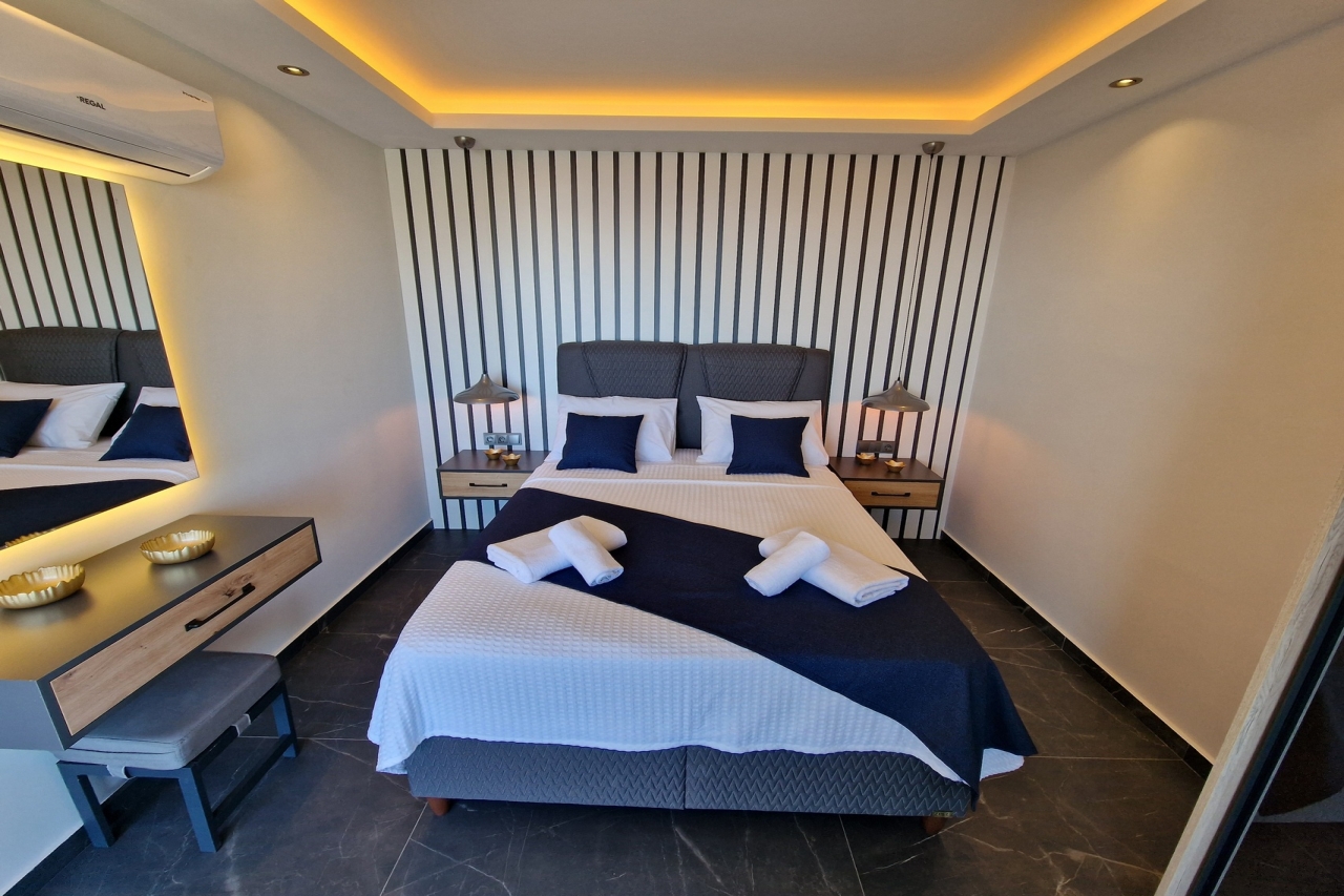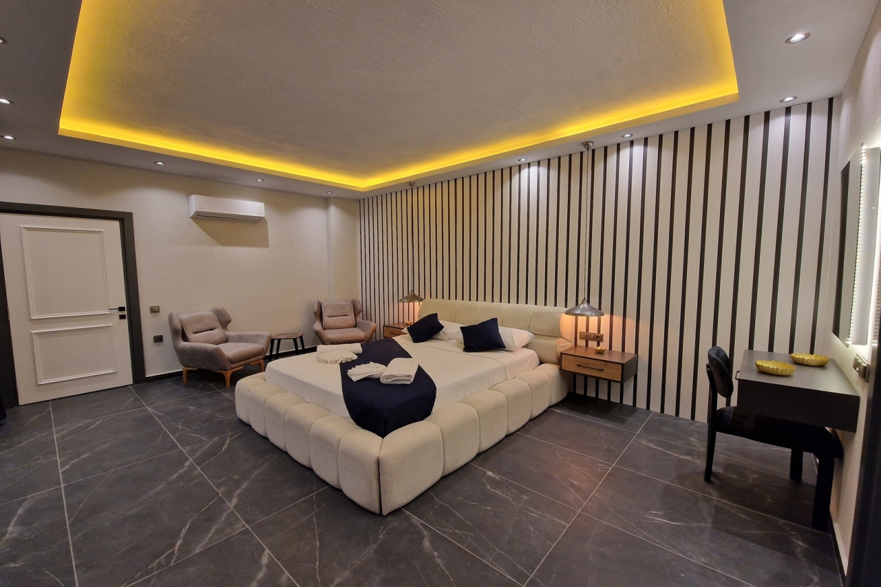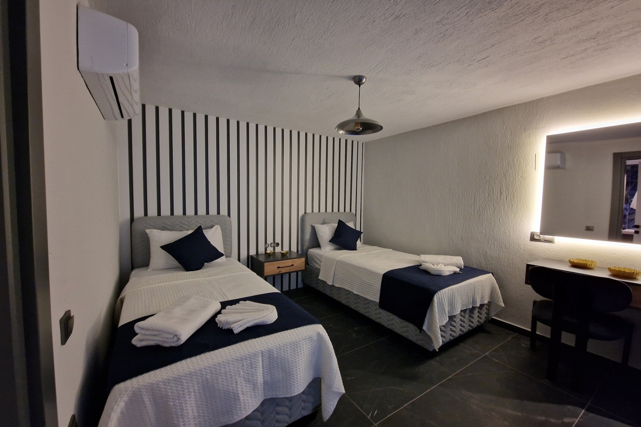 Villa Elite Escape, a fresh arrival for the 2026 season, presents captivating sea views from its first and second floors, inviting you to unwind in serene surroundings. Situated in the sought-after Ortaalan district, the villa is just a leisurely 10 to 12-minute stroll from Kalkan’s bustling town centre, with its charming restaurants, boutique shops and lively bars. For added convenience, the Migros supermarket is easily within reach.This remarkable home features two pools—an outdoor L-shaped swimming pool on the terrace and a heated indoor pool below—alongside a sauna, a cosy cinema room, and a table football setup that promises lighthearted competition. Descend to the lower ground floor where a kitchen bar with three stools sits ready for casual drinks. A mini fridge and sink with an array of glassware are thoughtfully arranged above, while a washing machine is tucked beneath the stairs. This level also hosts a spacious double bedroom with an en-suite shower room. Sliding...
