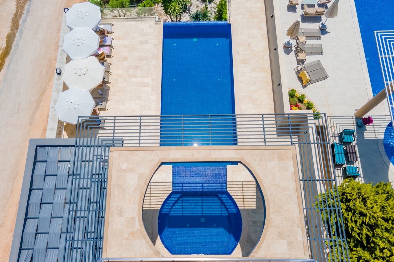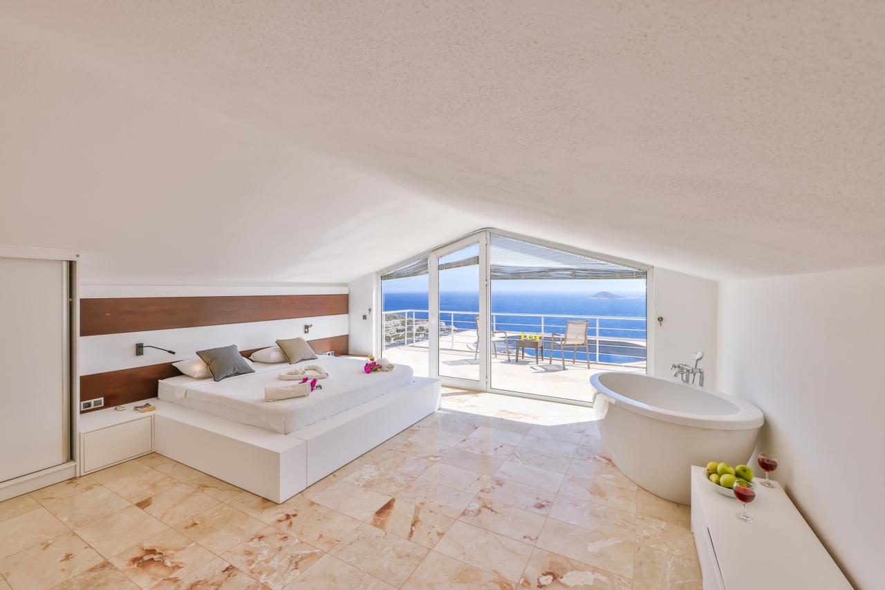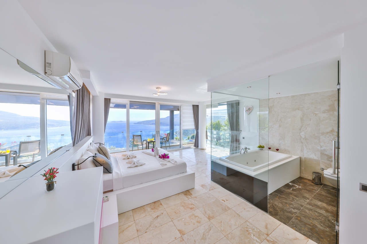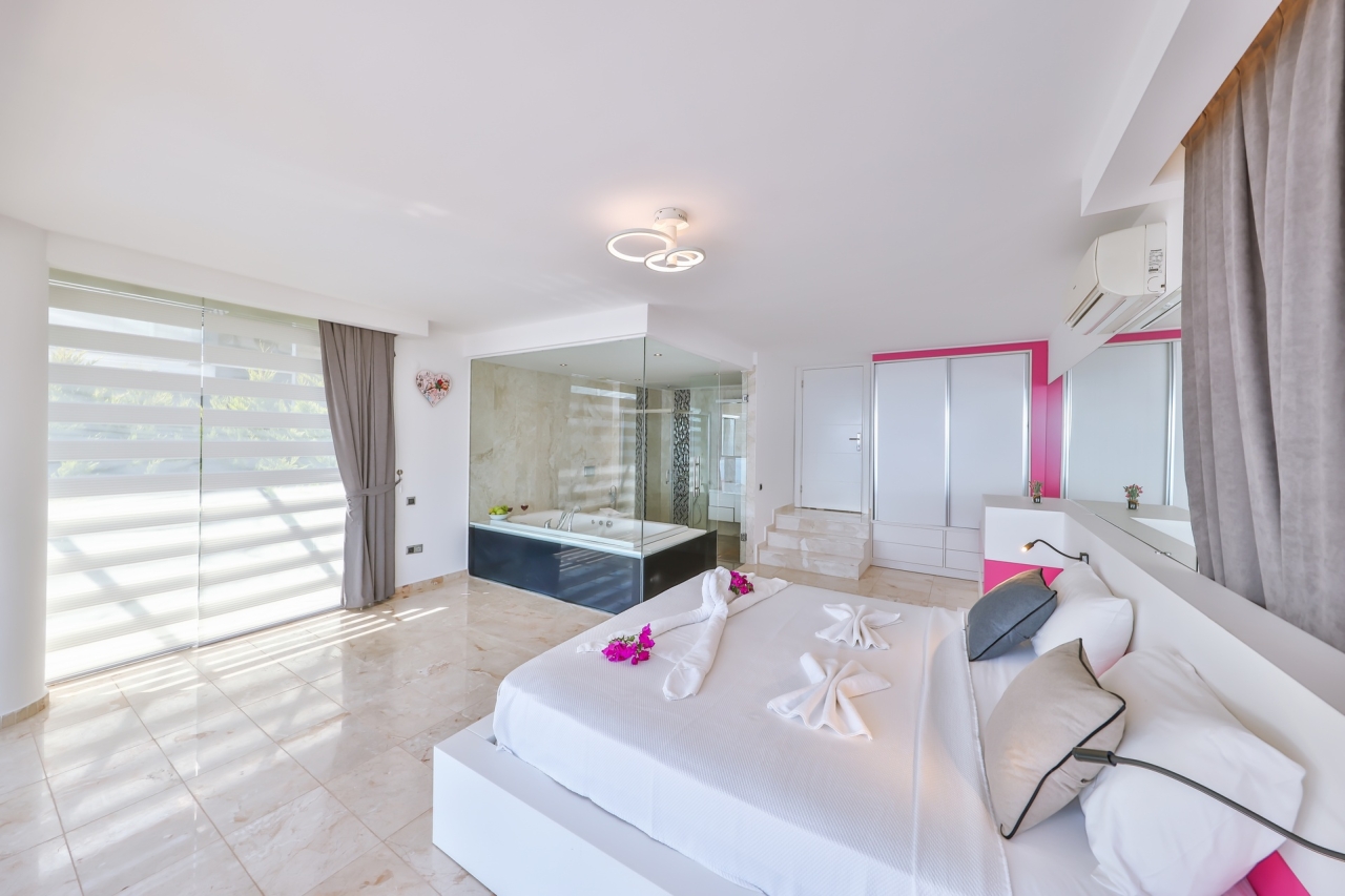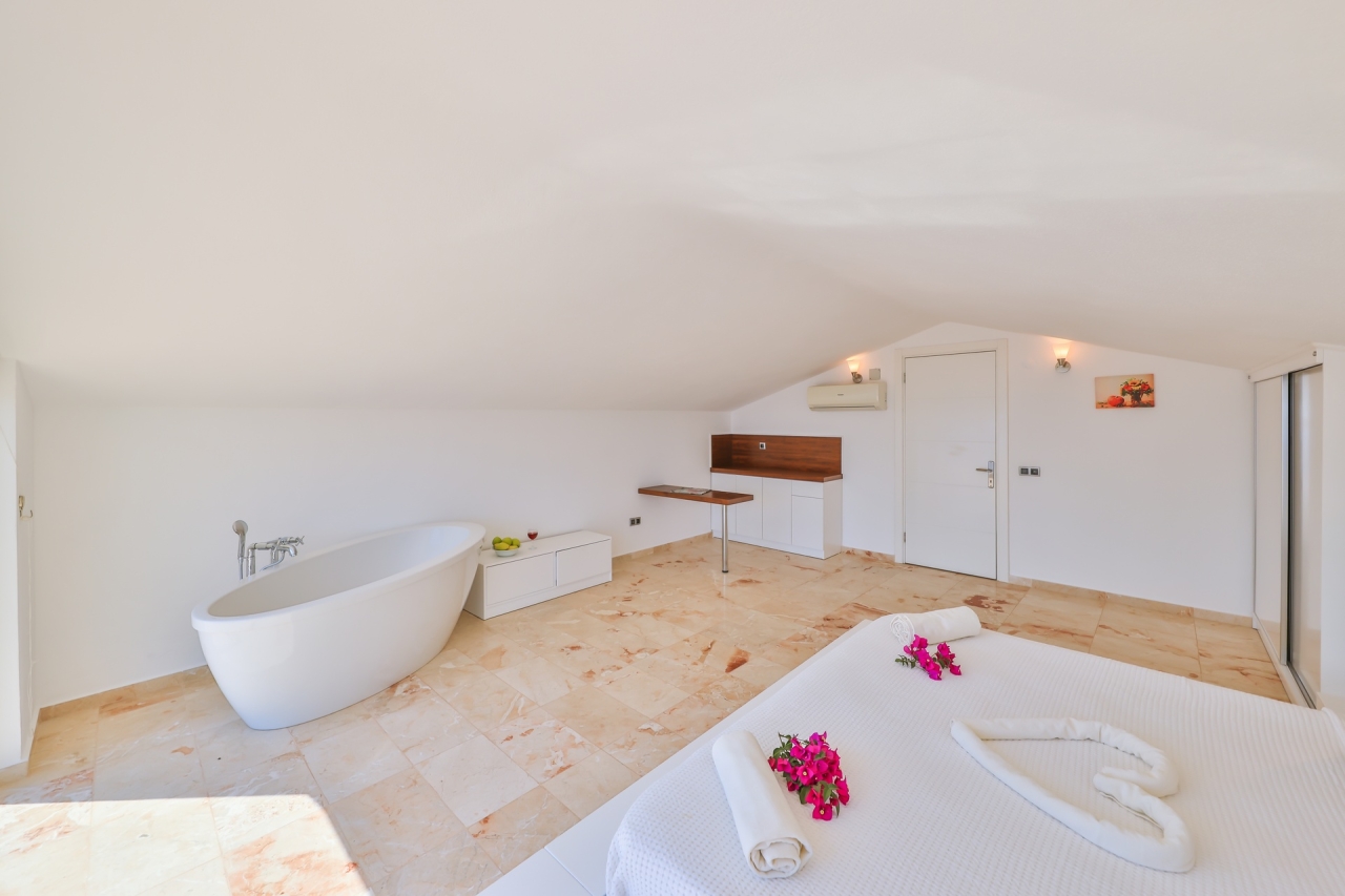 Villa Hillside 1 has recently undergone a meticulous refurbishment to an exceptionally high standard, offering an elegant fusion of inviting outdoor areas and refined interiors. Its generous private pool includes a Jacuzzi section that also doubles as a paddling pool for children. From this elevated position above Kalamar Bay, every level reveals stunning views across Kalkan Bay, Snake Island, and Mouse Island. The villa comfortably accommodates up to eight guests within four stylish bedrooms.Bedrooms1. Ground Floor: A double bedroom with bedside table, wardrobe, vanity table, and a bathroom with WC.2. Ground Floor: A twin bedroom featuring bedside table, wardrobe, vanity table, and an adjoining bathroom with WC.3. First Floor: A double bedroom complete with bedside tables, wardrobe, vanity table, bathroom with WC, and its own Jacuzzi.4. Second/Top Floor: A double bedroom including bedside table, wardrobe, vanity table, bathroom with WC, and a freestanding bathtub. Please note, this...