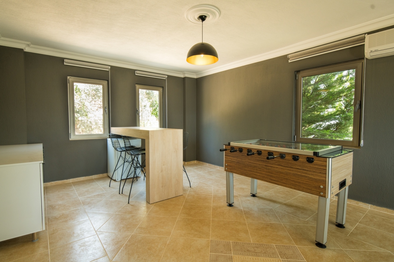 We are pleased to introduce Villa Husam to our collection for the 2024-2025 season. Recently refurbished, this property enjoys a superb position in Kalkan's Ortaalan district. Just a 10-12 minute walk from the town centre, it offers easy access to restaurants, shops, bars and the Migros supermarket nearby.Inside, the villa comprises four en-suite bedrooms and includes two jacuzzis, a private swimming pool, a cinema room, and a games room complete with table tennis, table football and a dart board. Upon entering at street level, you’ll find the games room to your left alongside a bar area fitted with a fridge and a chaise longue. This floor also accommodates a spacious double bedroom with a balcony, featuring both a jacuzzi bath and a separate en-suite shower.Descending to the lower ground floor reveals the kitchen, living and dining areas. A cinema room with a projector and large floor cushions is also on this level, as well as an additional shower room. Sliding glass doors lead...