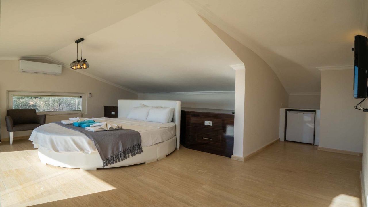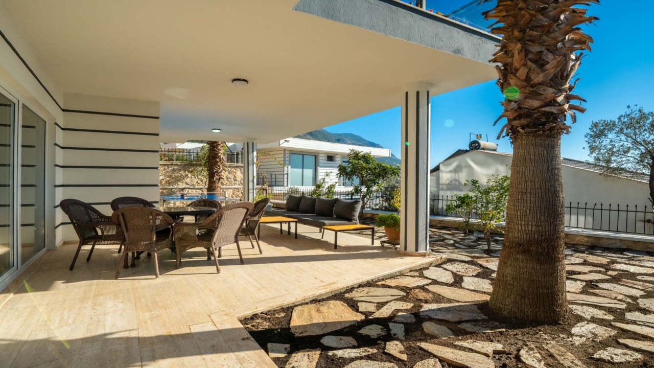 Welcome to 'Villa in the Sky,' an elegant and contemporary residence boasting five bedrooms, perched in an elevated position above the picturesque town of Kalkan. The unparalleled location provides breathtaking panoramic views that extend over the town, the mesmerising turquoise waters of Kalkan Bay, and beyond the expansive Mediterranean Sea, all against the stunning backdrop of the Taurus mountains.The expansive private infinity pool features integral steps and a separate Jacuzzi with seating, allowing guests to enjoy the stunning views while sipping a glass of wine. Eight sun loungers with drink tables under a large pergola by the pool offer relaxation in style.The villa boasts five luxurious en-suite bedrooms, with two of them designated as master rooms, complete with private jacuzzis to elevate your relaxation experience. Each room is thoughtfully and stylishly decorated, ensuring a perfect blend of aesthetics and comfort for an indulgent stay.A recently added games room on the...