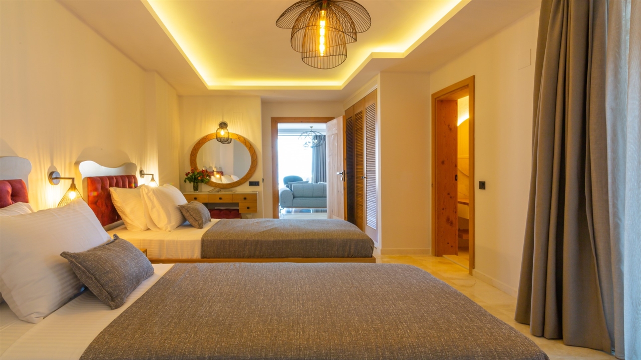BOOK YOUR STAY NOW FOR THE CHOSEN DATES IN 2026 AND GET 10% OFF!Villa Kalamar 6 Kalkan is situated in a lovely peaceful part of the Kalamar area. The villa is generously sized to comfortably host up to 12 guests in 6 deluxe en suite bedrooms. Our guests will marvel at the facilities in this property, with extensive outside space perfectly designed for outdoor living. In addition, the property is visually pleasing, constructed from natural stone and wood to beautiful effect. Suited for a large group or family, this luxurious villa has a large infinity pool, spacious grounds, green lawns, an alfresco dining area, and table tennis to keep you entertained. Furthermore, you can walk comfortably to the sea from this villa as there is access to a platform above the sea for swimming.The interior exudes elegance at every point, and the selection of beautiful bespoke furnishings makes for beautiful rooms. At ground floor level, there is a grand open plan living space finished with stunning...