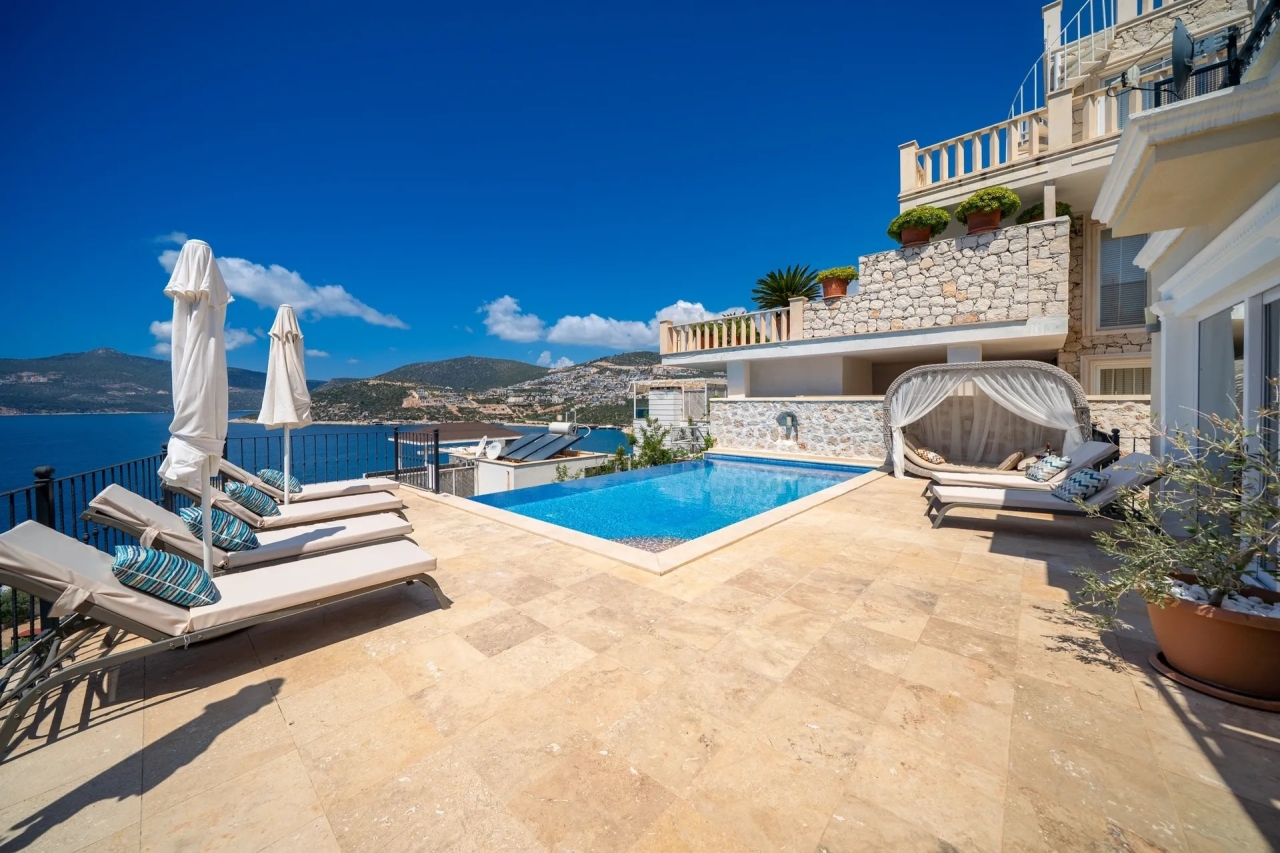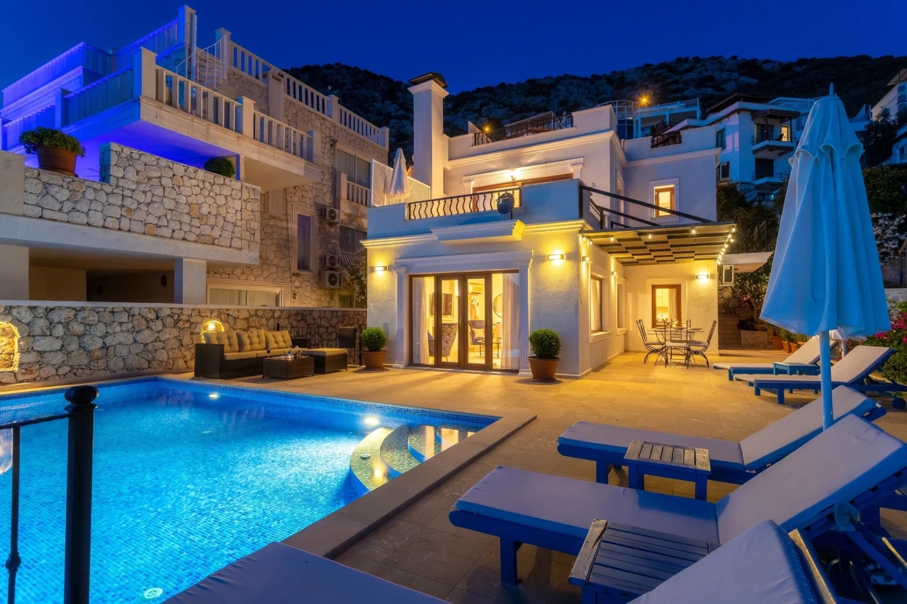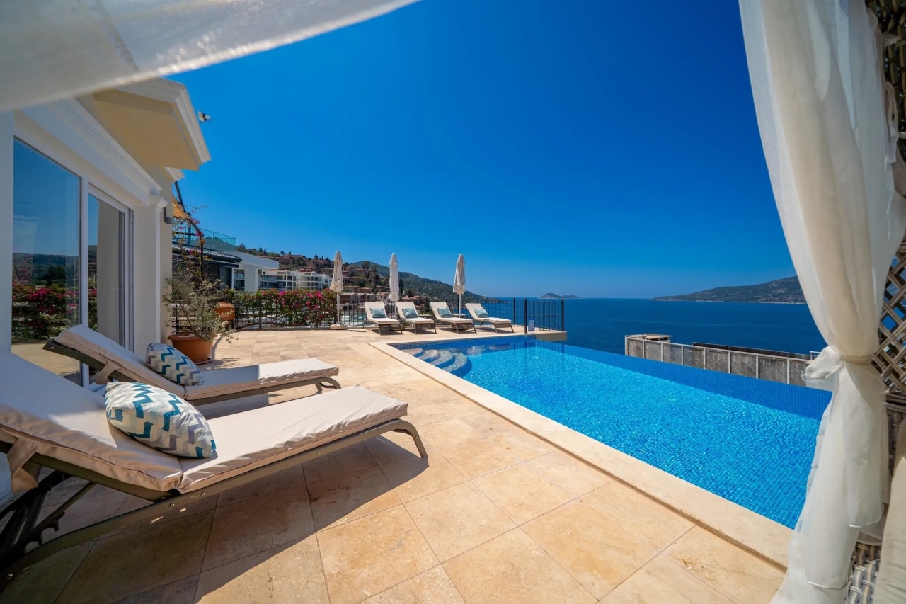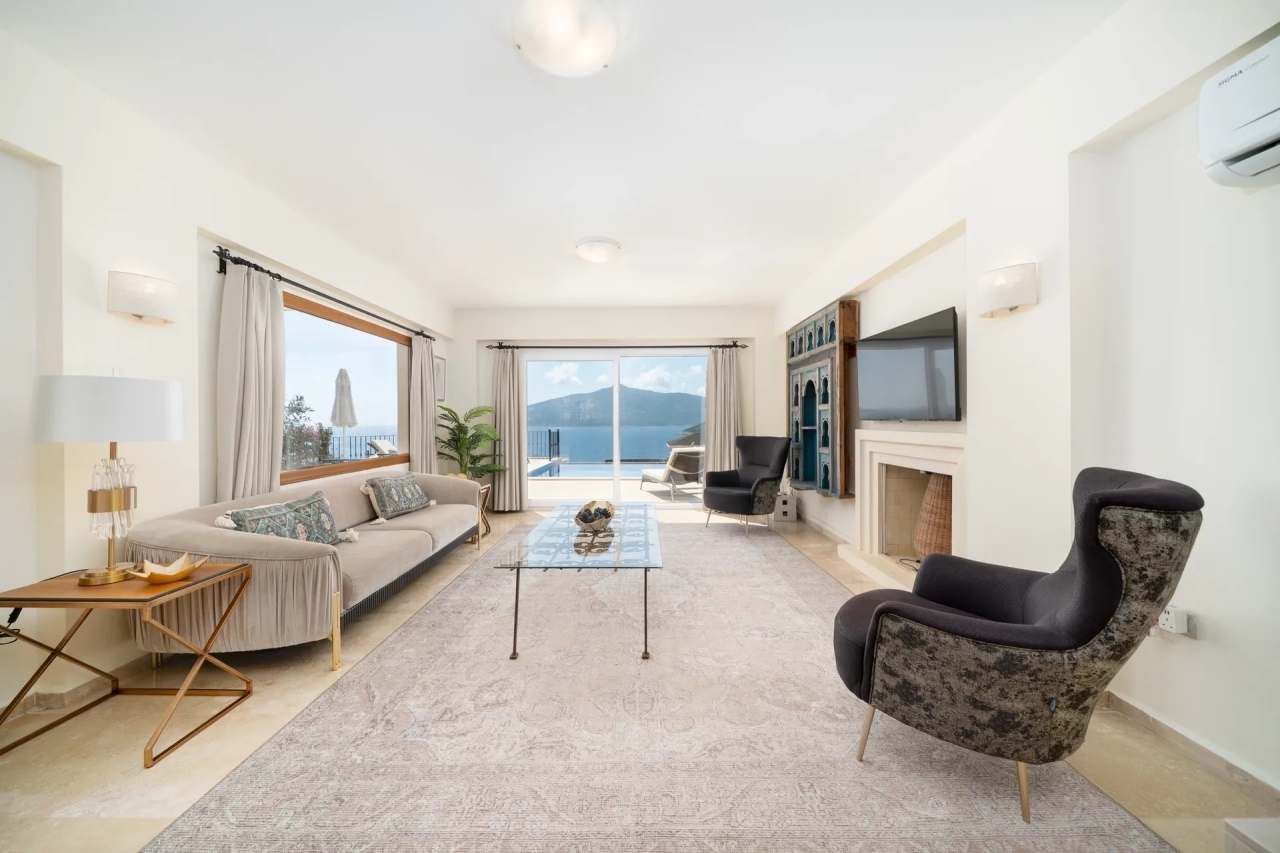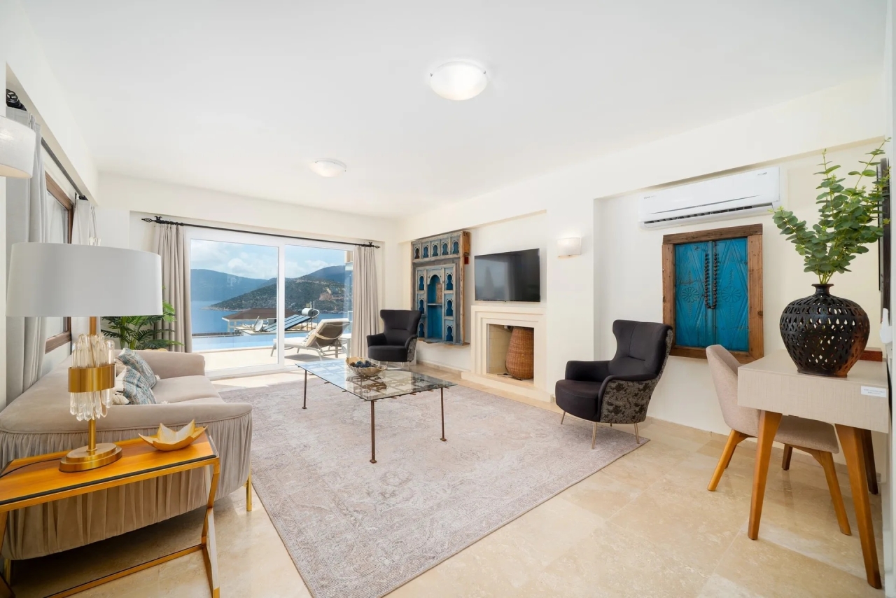 For those who seek the ultimate Mediterranean luxury, Villa Komurluk in Kalkan is an oasis of style, tranquillity, and breathtaking natural beauty. Elevated on the enchanting Mediterranean coast in the prestigious and sought-after Komurluk district of Kalkan, this property is a pinnacle of comfort and serenity. This prime location offers breathtaking views of the crystal-clear waters of the Mediterranean Sea and the tranquil ambience of the bay, all within a short walk to Kalkan's vibrant town centre and three popular beach clubs: Zest Beach Club, Palm Beach Club and Denizim Beach Club from where you can take a water taxi to the harbour.The interior of Villa Komurluk is designed to provide guests with a sense of space, convenience, and sophistication. The open-plan living area features tastefully furnished with plush sofas and a cosy fireplace, creating an inviting atmosphere. The fully equipped kitchen, with plentiful appliances, is ideal for culinary enthusiasts.This property offers...