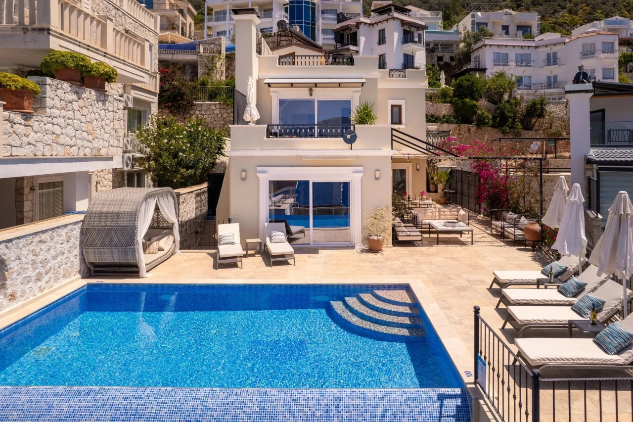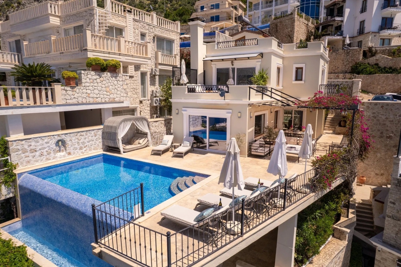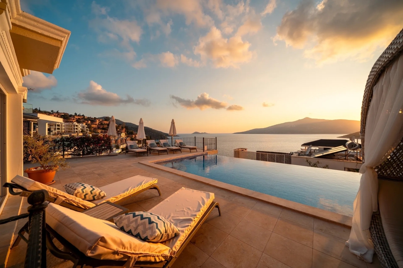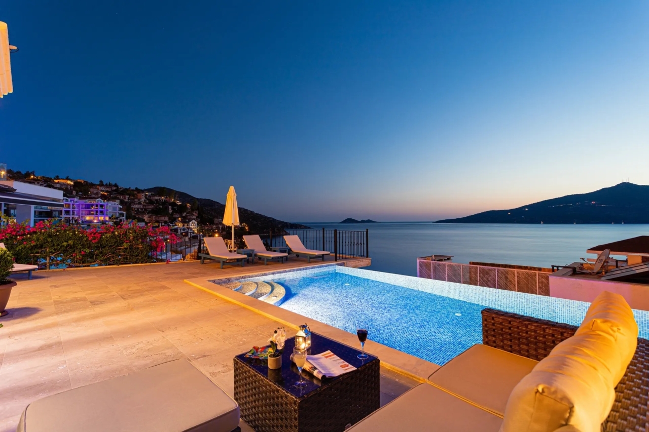 For those who seek the ultimate Mediterranean luxury, Villa Komurluk in Kalkan is an oasis of style, tranquillity, and breathtaking natural beauty. Elevated on the enchanting Mediterranean coast in the prestigious and sought-after Komurluk district of Kalkan, this property is a pinnacle of comfort and serenity. This prime location offers breathtaking views of the crystal-clear waters of the Mediterranean Sea and the tranquil ambience of the bay, all within a short walk to Kalkan's vibrant town centre and three popular beach clubs: Zest Beach Club, Palm Beach Club and Denizim Beach Club from where you can take a water taxi to the harbour.The interior of Villa Komurluk is designed to provide guests with a sense of space, convenience, and sophistication. The open-plan living area features tastefully furnished with plush sofas and a cosy fireplace, creating an inviting atmosphere. The fully equipped kitchen, with plentiful appliances, is ideal for culinary enthusiasts.This property offers...