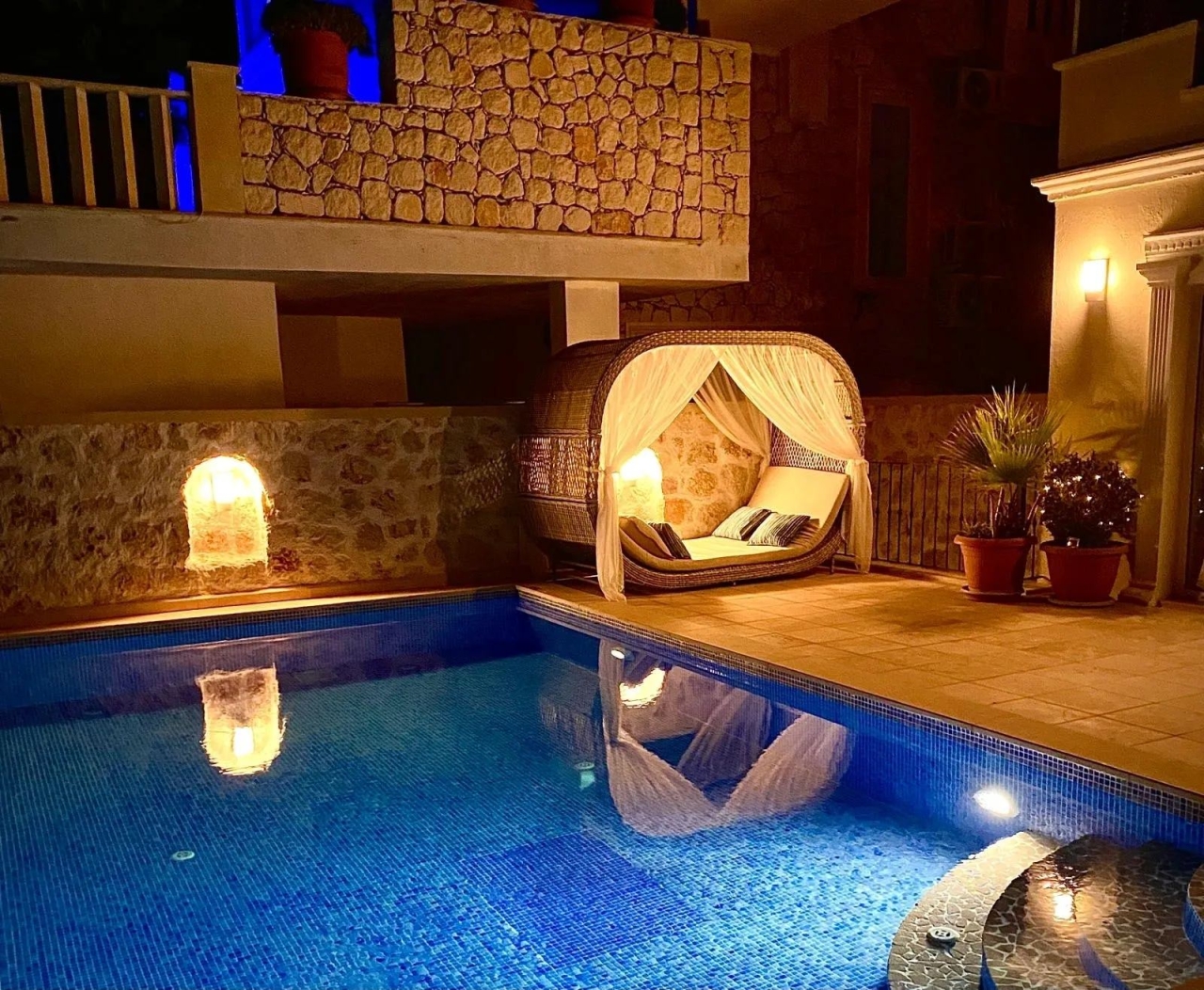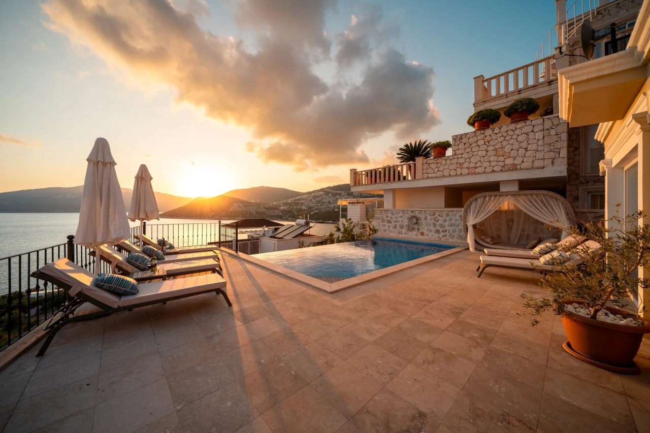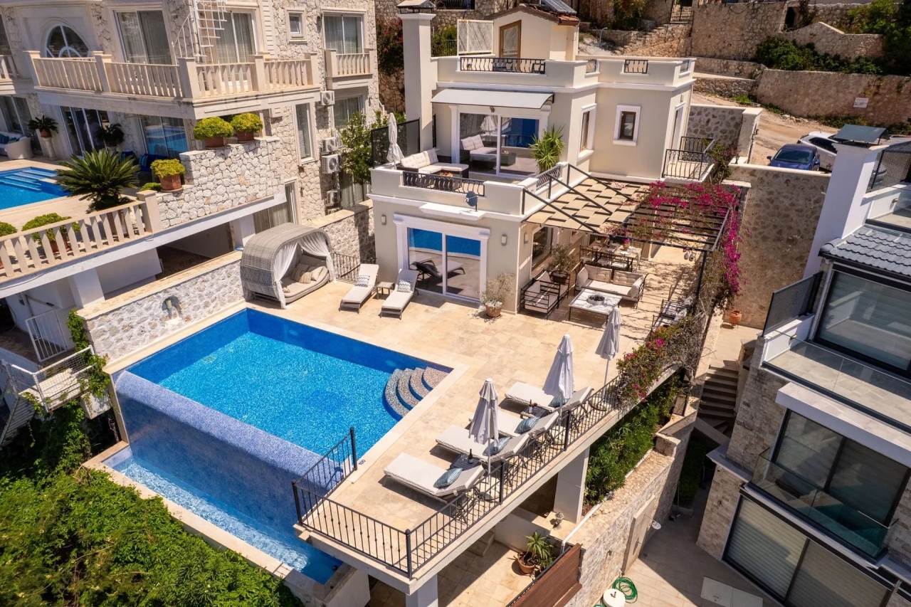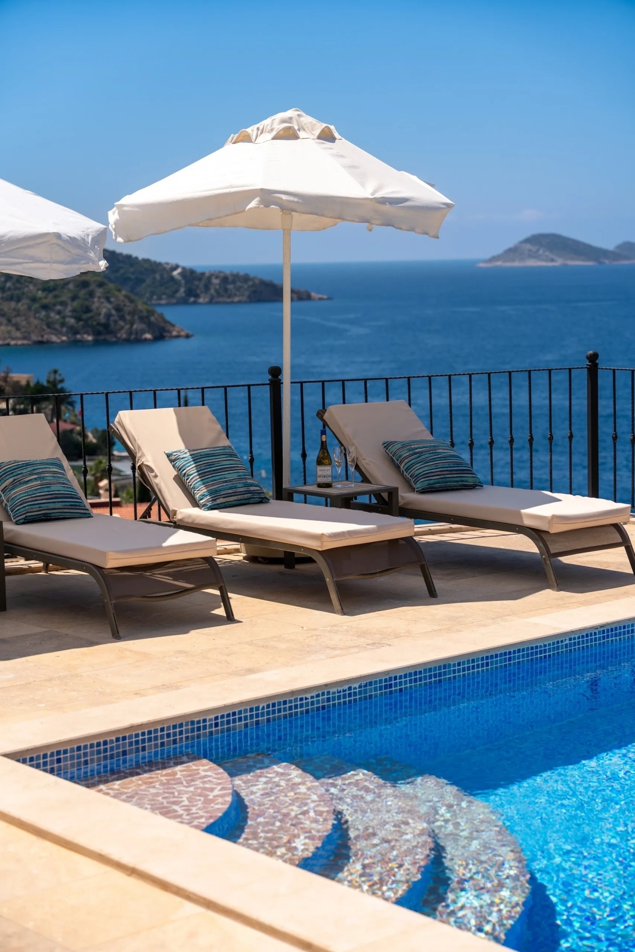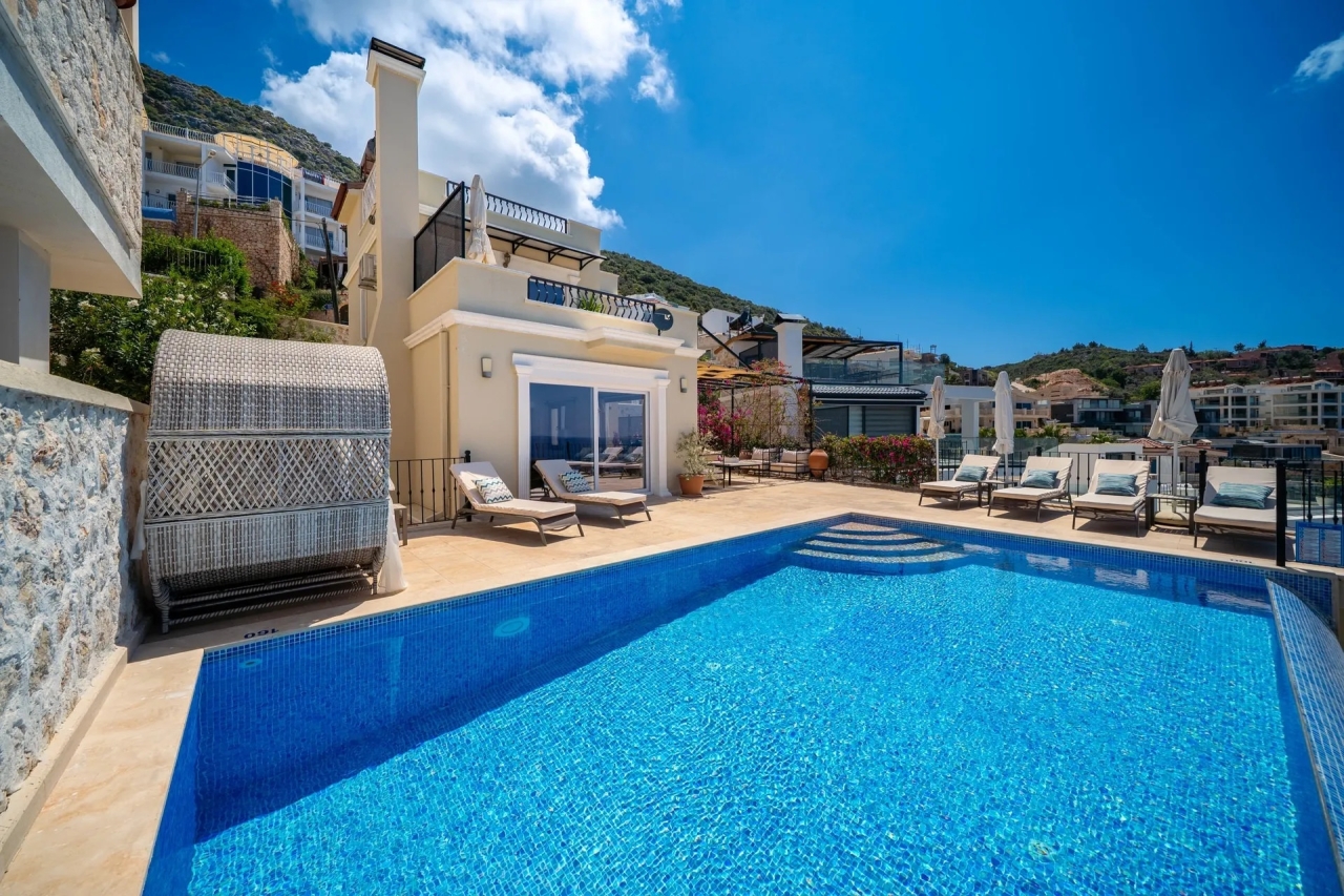 For those who seek the ultimate Mediterranean luxury, Villa Komurluk in Kalkan is an oasis of style, tranquillity, and breathtaking natural beauty. Elevated on the enchanting Mediterranean coast in the prestigious and sought-after Komurluk district of Kalkan, this property is a pinnacle of comfort and serenity. This prime location offers breathtaking views of the crystal-clear waters of the Mediterranean Sea and the tranquil ambience of the bay, all within a short walk to Kalkan's vibrant town centre and three popular beach clubs: Zest Beach Club, Palm Beach Club and Denizim Beach Club from where you can take a water taxi to the harbour.The interior of Villa Komurluk is designed to provide guests with a sense of space, convenience, and sophistication. The open-plan living area features tastefully furnished with plush sofas and a cosy fireplace, creating an inviting atmosphere. The fully equipped kitchen, with plentiful appliances, is ideal for culinary enthusiasts.This property offers...