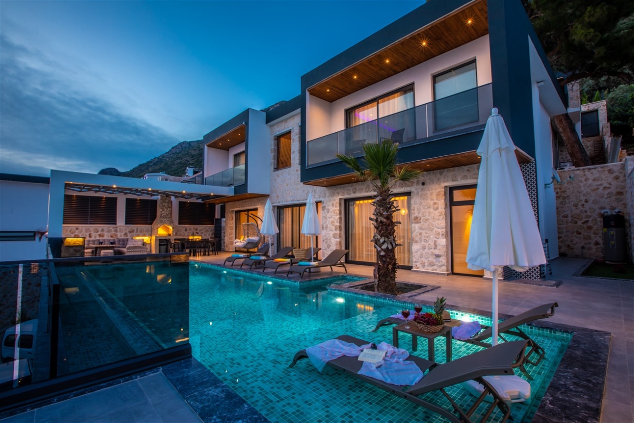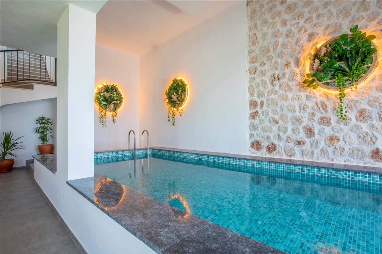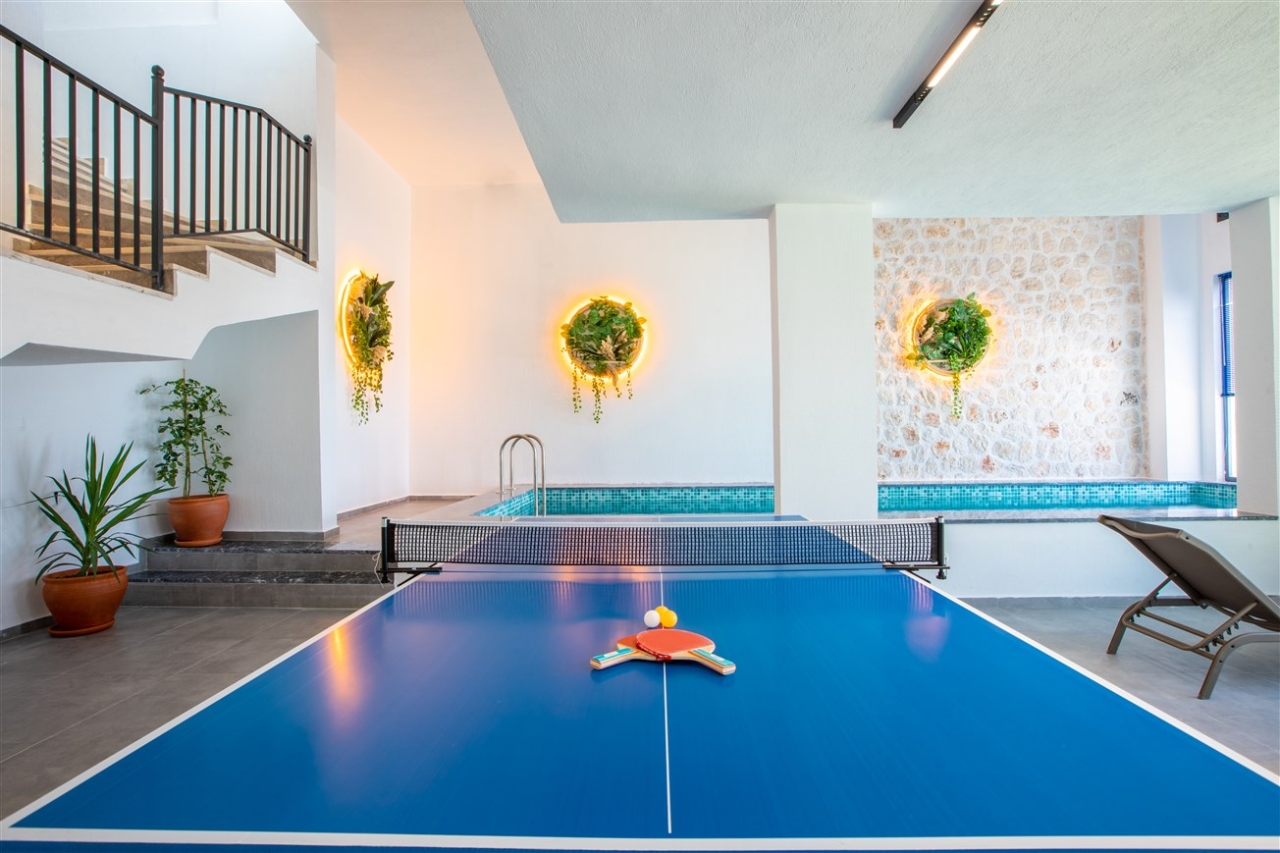 Villa Larmina is one of two elegant sister properties nestled in Kalkan's serene Kordere district, just a brief 5 to 6-minute taxi journey from the town centre. This exquisite villa features three bedrooms, each with its own bathroom, offering a private and comfortable retreat for all guests. Inside, you will find an indoor swimming pool, a sauna, a hammam (Turkish bath), and a table tennis, providing plenty of opportunities for relaxation and entertainment.The living room, dining space, and kitchen are thoughtfully designed with attention to detail and generous room to gather, creating a warm and inviting atmosphere perfect for spending quality time with friends or family.Outside, the terrace boasts a private swimming pool surrounded by comfortable sun loungers and parasols, an ideal spot to soak up the sun. There is a dining table for alfresco meals, accompanied by a cosy seating area and a BBQ space beneath a pergola, making outdoor dining a pleasure.Bedrooms1. Ground Floor...