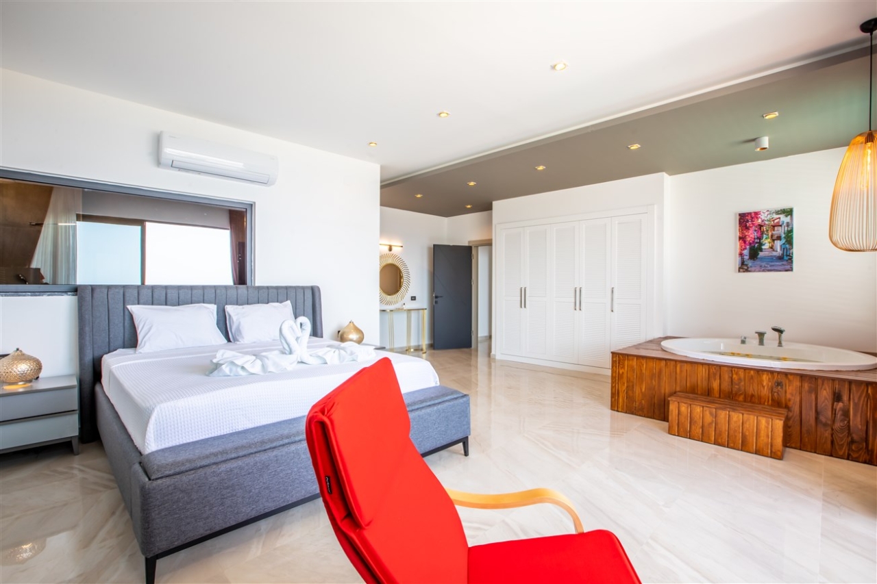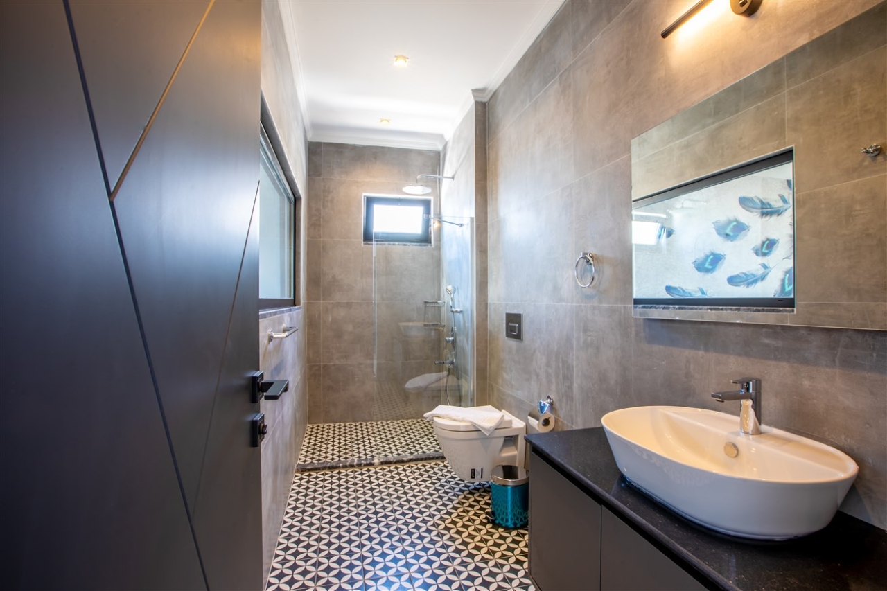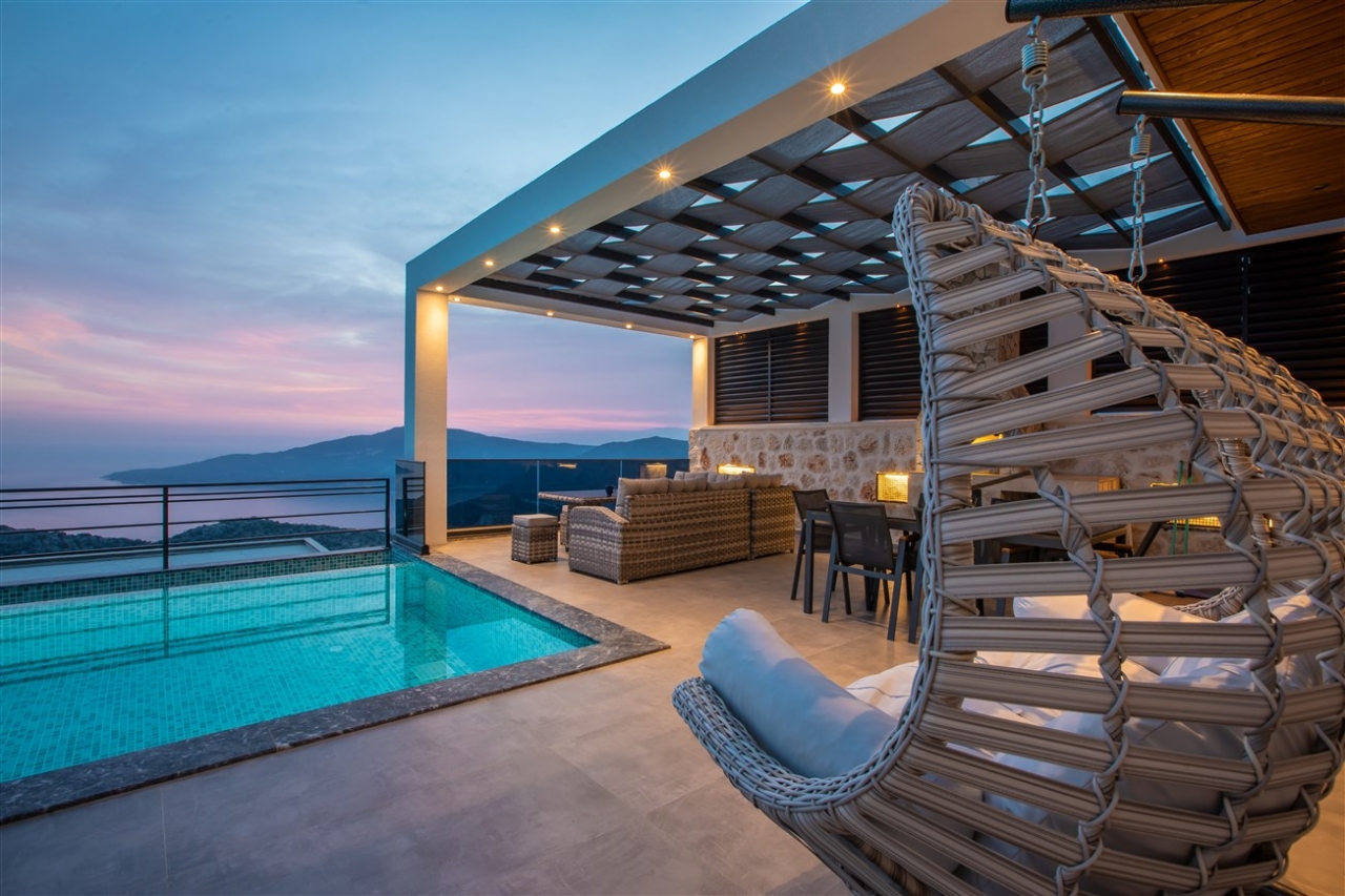 Villa Larmina is one of two elegant sister properties nestled in Kalkan's serene Kordere district, just a brief 5 to 6-minute taxi journey from the town centre. This exquisite villa features three bedrooms, each with its own bathroom, offering a private and comfortable retreat for all guests. Inside, you will find an indoor swimming pool, a sauna, a hammam (Turkish bath), and a table tennis, providing plenty of opportunities for relaxation and entertainment.The living room, dining space, and kitchen are thoughtfully designed with attention to detail and generous room to gather, creating a warm and inviting atmosphere perfect for spending quality time with friends or family.Outside, the terrace boasts a private swimming pool surrounded by comfortable sun loungers and parasols, an ideal spot to soak up the sun. There is a dining table for alfresco meals, accompanied by a cosy seating area and a BBQ space beneath a pergola, making outdoor dining a pleasure.Bedrooms1. Ground Floor...