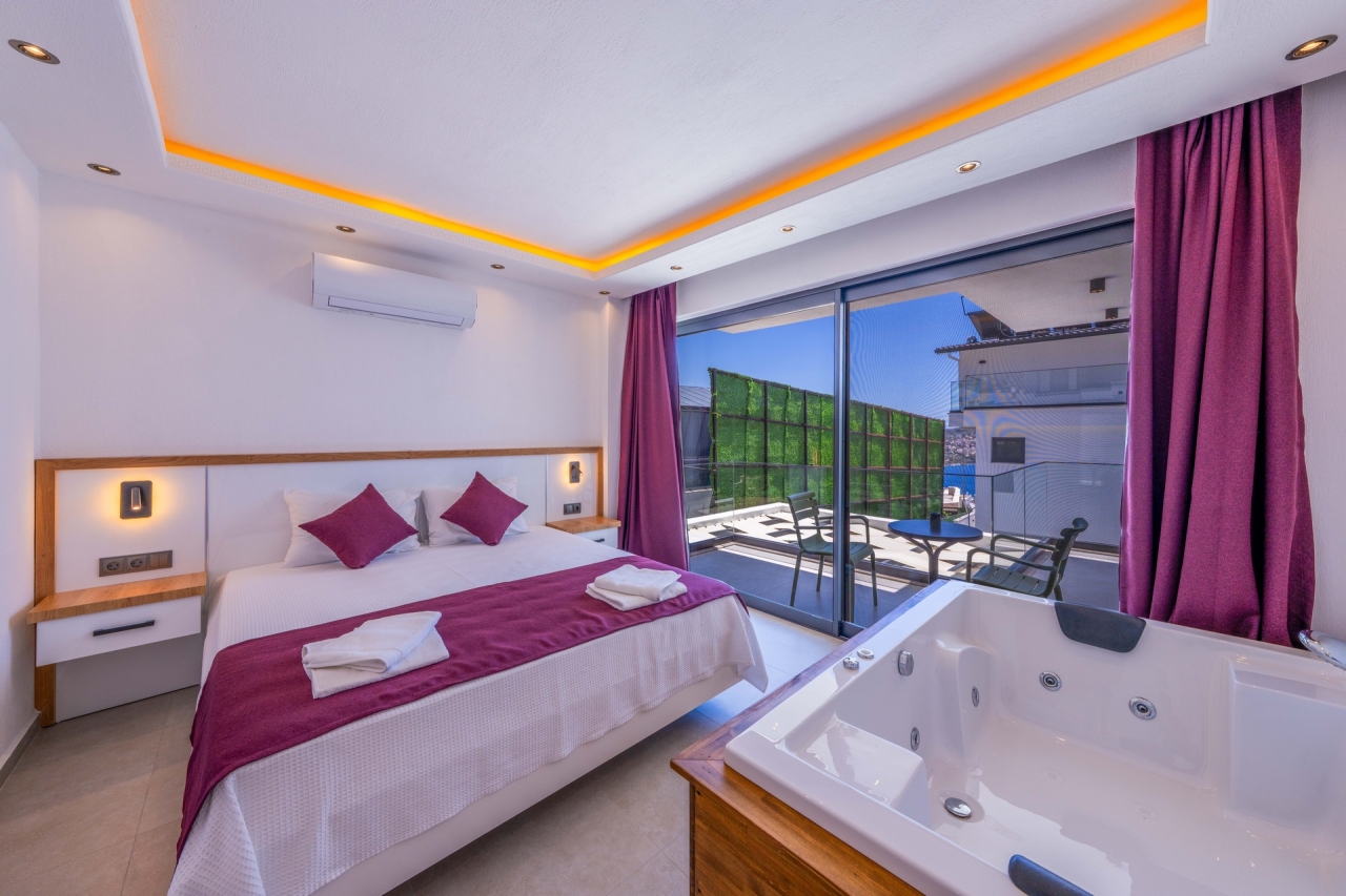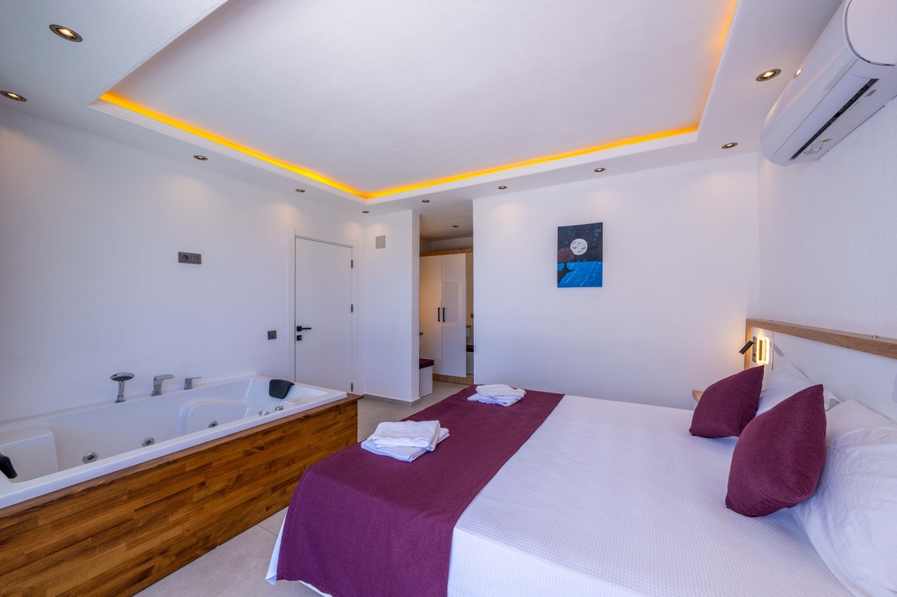 Villa Lovelet 1 is one of a pair of newly built neighbouring villas nestled in Kalkan's Ortaalan district. Finished in May 2025, this modern property comfortably sleeps up to six guests across three bedrooms.Generous outdoor spaces invite you to unwind and soak up the Mediterranean sunshine, while a private swimming pool provides the perfect spot for a refreshing dip. For truly stunning views, the roof terrace offers a panoramic outlook over Kalkan — ideal for a quiet moment or an evening glass of wine.The villa is conveniently located around a 10-minute walk from Kalkan's town centre, home to an array of restaurants, bars, and shops. For day-to-day essentials, the Migros supermarket is just a 5 to 6-minute stroll away.Bedrooms1. On the first floor, the master bedroom features a double bed, bedside tables, wardrobe, vanity table, and a bathroom with a jacuzzi and WC. Sliding doors open onto a private balcony with two chairs and a side table.2. Also on the first floor, the twin...