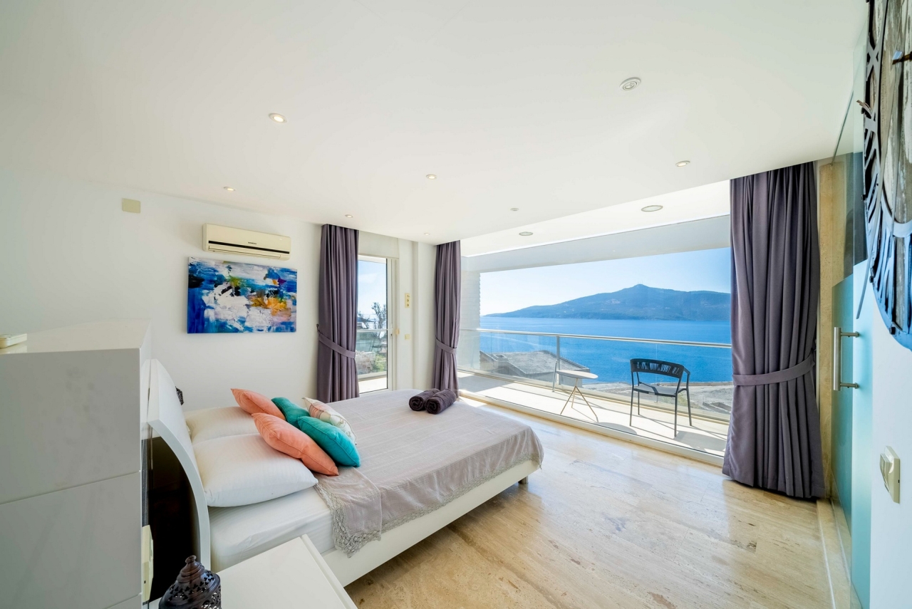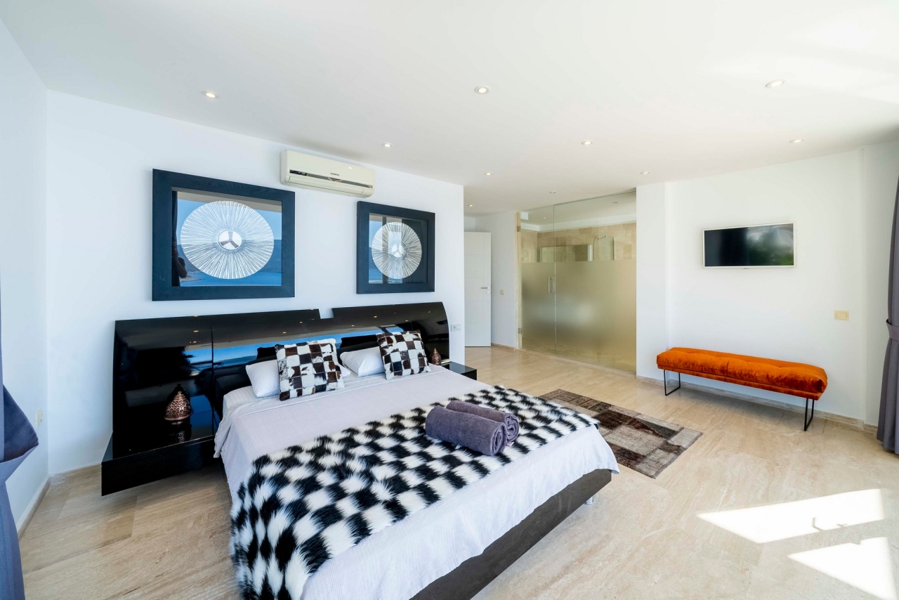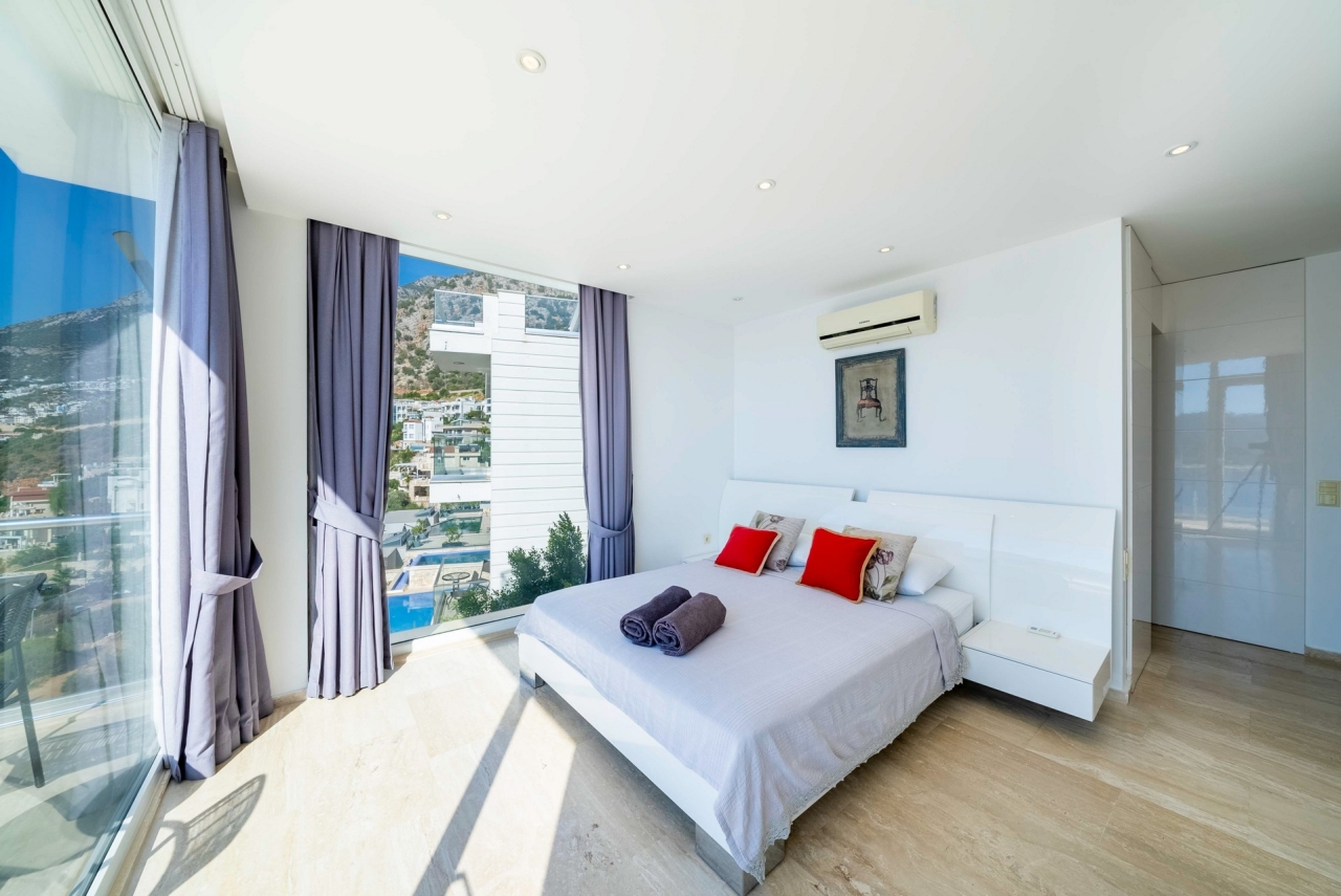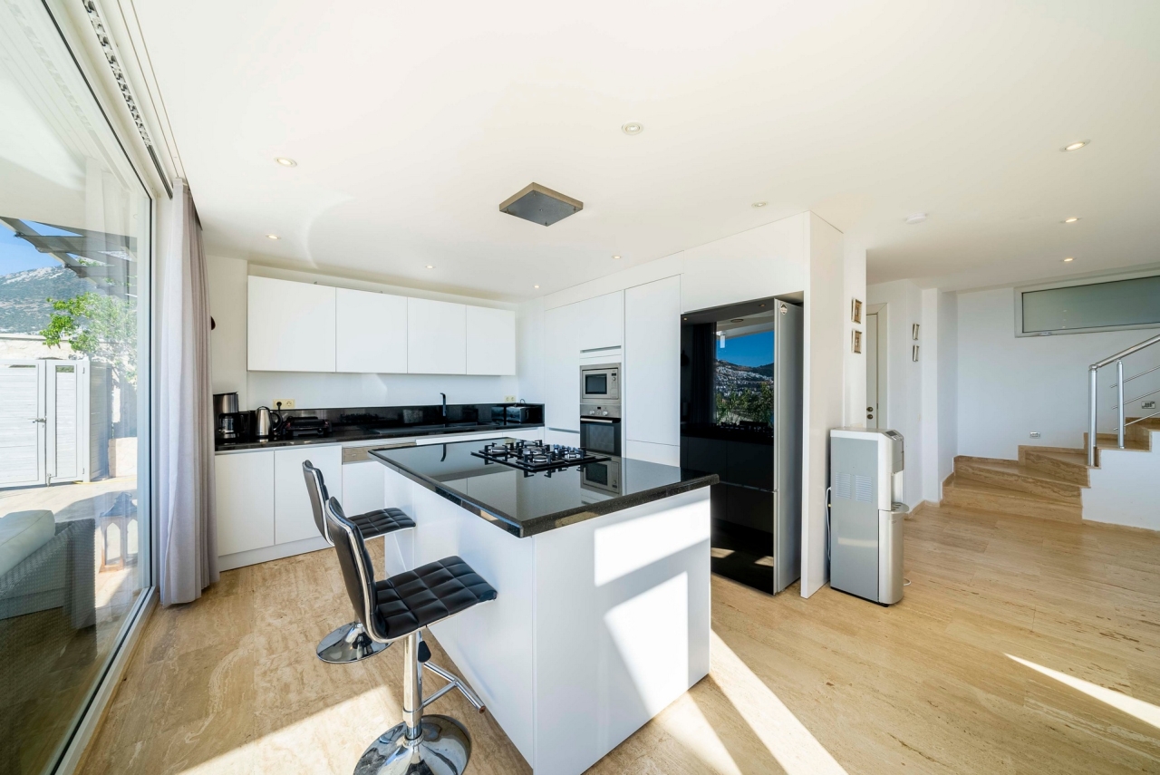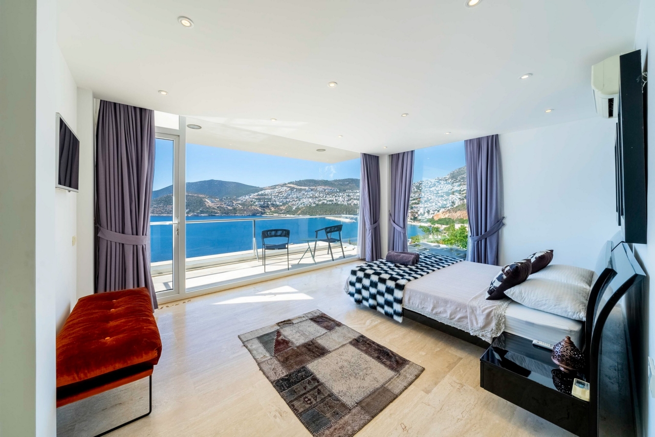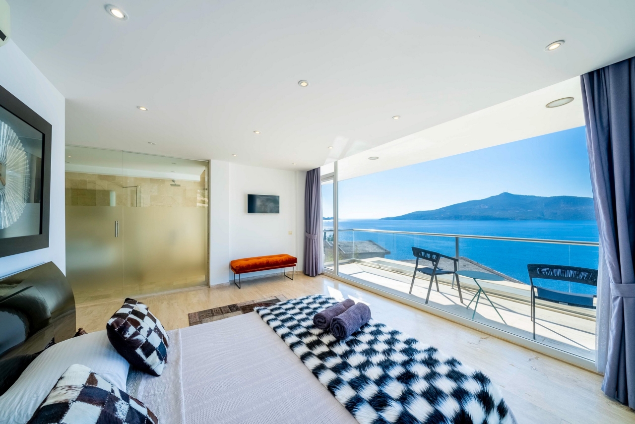 Villa Lumineux Kalkan is a spacious villa in the prestigious Komurluk area of Kalkan and hosts up to 12 guests with six en-suite bedrooms. Set on the hills just above the sea, the property offers captive views of the dazzling turquoise bay and harbour, and this area of Kalkan has the advantage of the latest evening sun and spectacular sunsets. A wrap-around pool terrace provides you with everything you need to savour your time in the sun, including a curved infinity pool, ample sun loungers, and pergola shaded dining area. There is even an authentic Turkish-style corner seating area, perfect for reclining with a book in the shade.The sleek interior covers three floors with tastefully arranged contemporary rooms which feel light and spacious. At the ground floor level, a sizeable living area with a modernised kitchen containing high-quality appliances and a breakfast bar integrated into a large kitchen island. A total of 6 bedrooms occupy this villa, each with sleek glass-fronted...