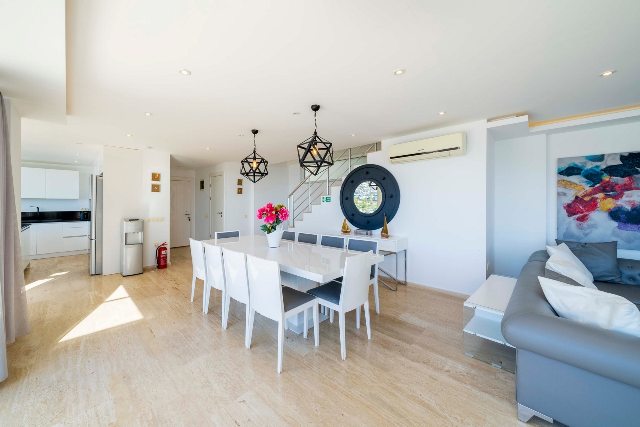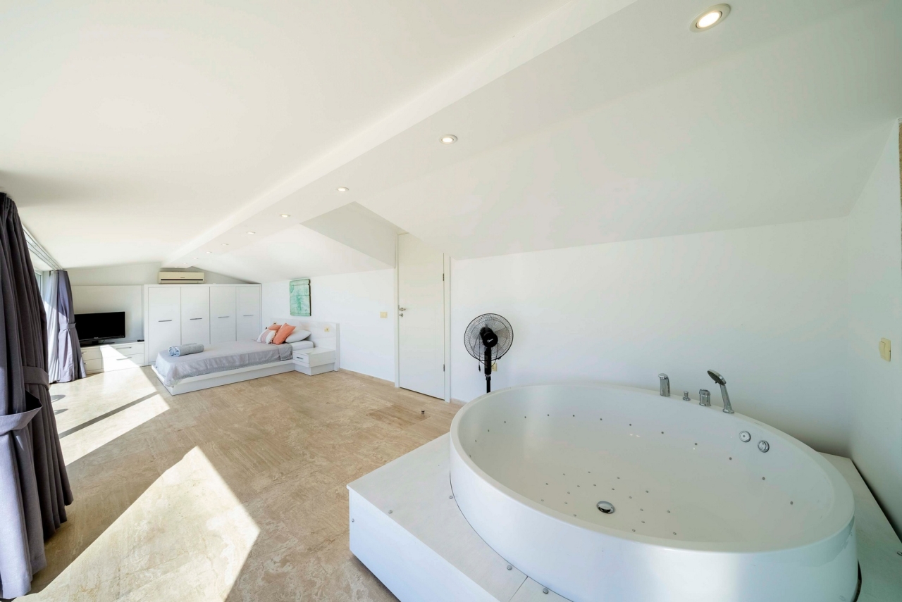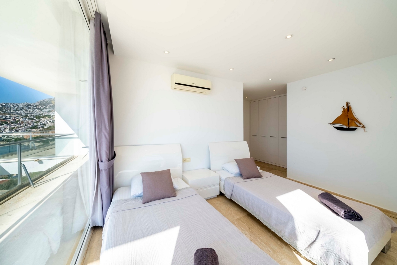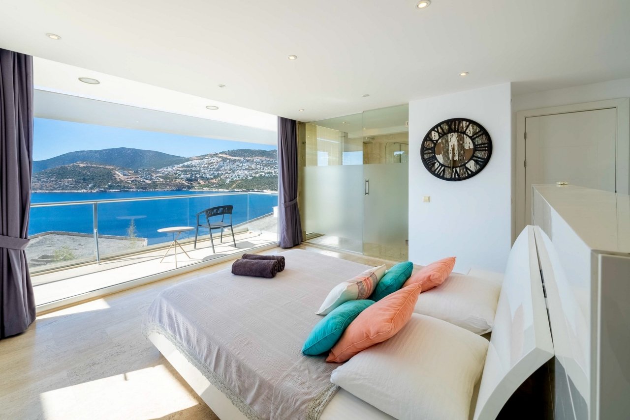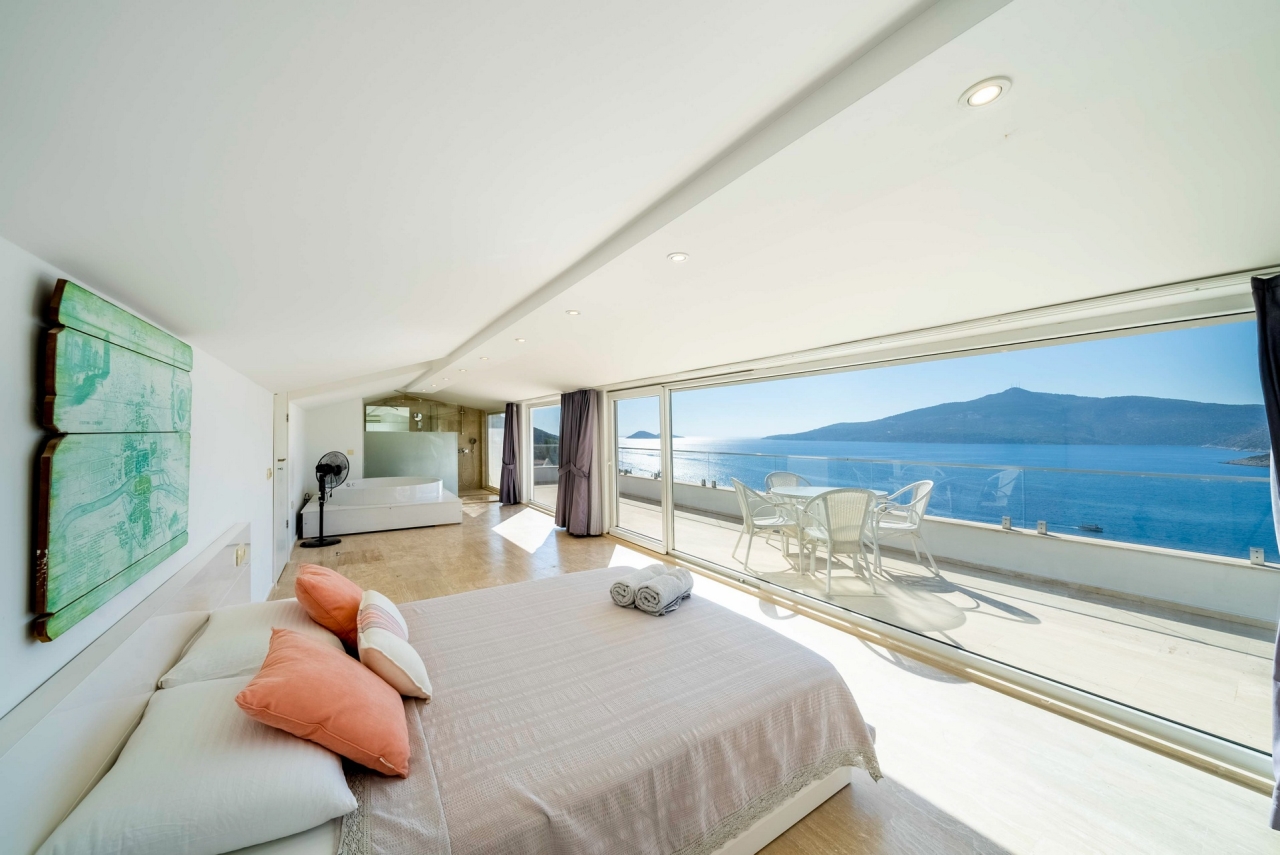 Villa Lumineux Kalkan is a spacious villa in the prestigious Komurluk area of Kalkan and hosts up to 12 guests with six en-suite bedrooms. Set on the hills just above the sea, the property offers captive views of the dazzling turquoise bay and harbour, and this area of Kalkan has the advantage of the latest evening sun and spectacular sunsets. A wrap-around pool terrace provides you with everything you need to savour your time in the sun, including a curved infinity pool, ample sun loungers, and pergola shaded dining area. There is even an authentic Turkish-style corner seating area, perfect for reclining with a book in the shade.The sleek interior covers three floors with tastefully arranged contemporary rooms which feel light and spacious. At the ground floor level, a sizeable living area with a modernised kitchen containing high-quality appliances and a breakfast bar integrated into a large kitchen island. A total of 6 bedrooms occupy this villa, each with sleek glass-fronted...
