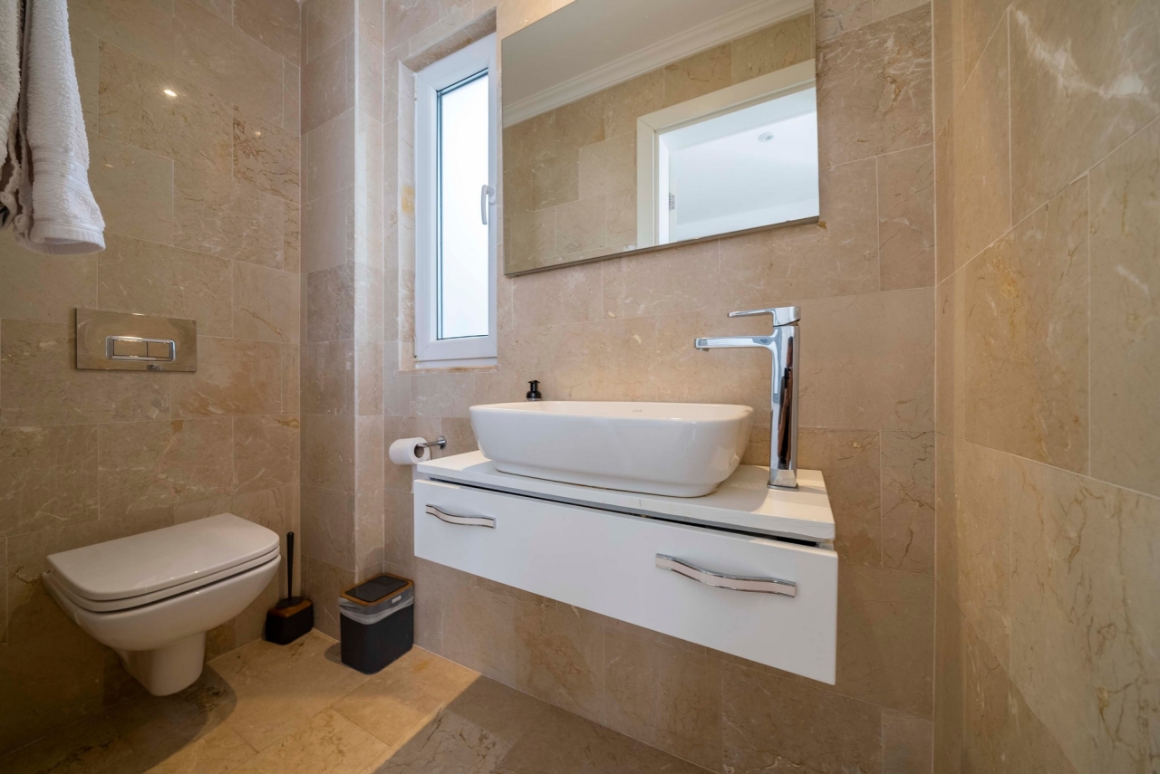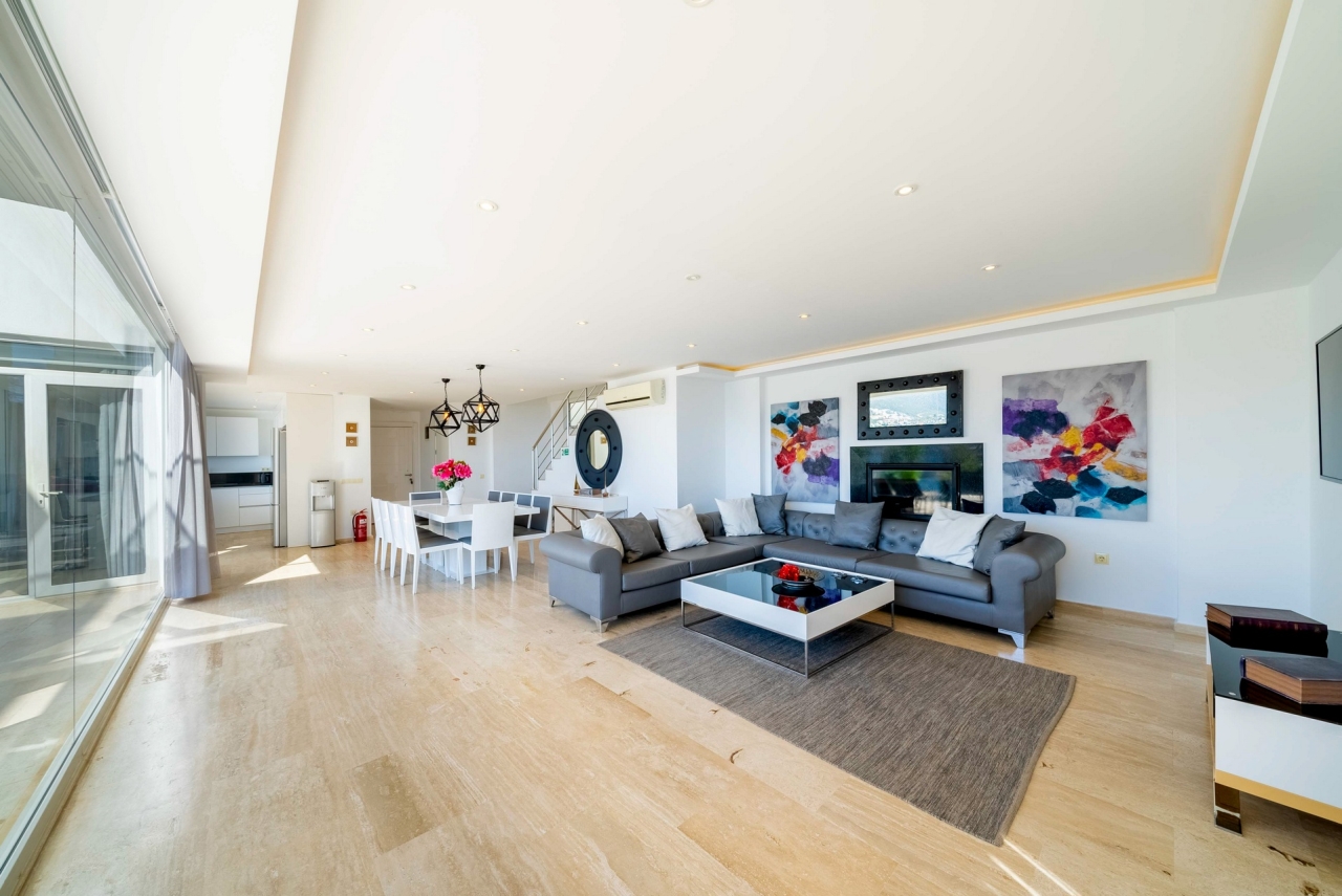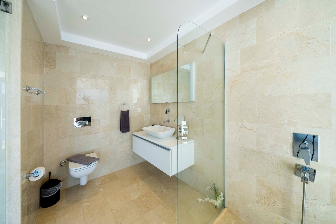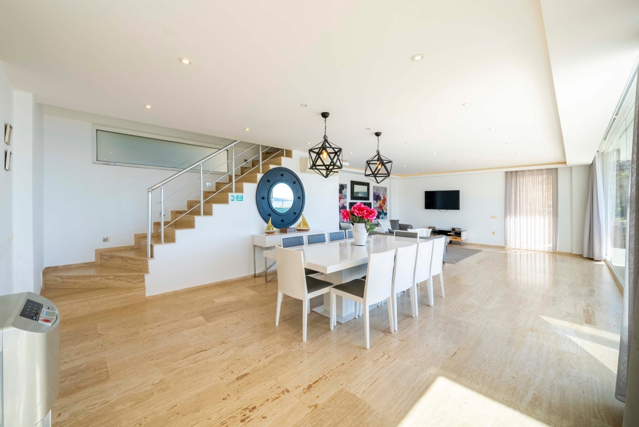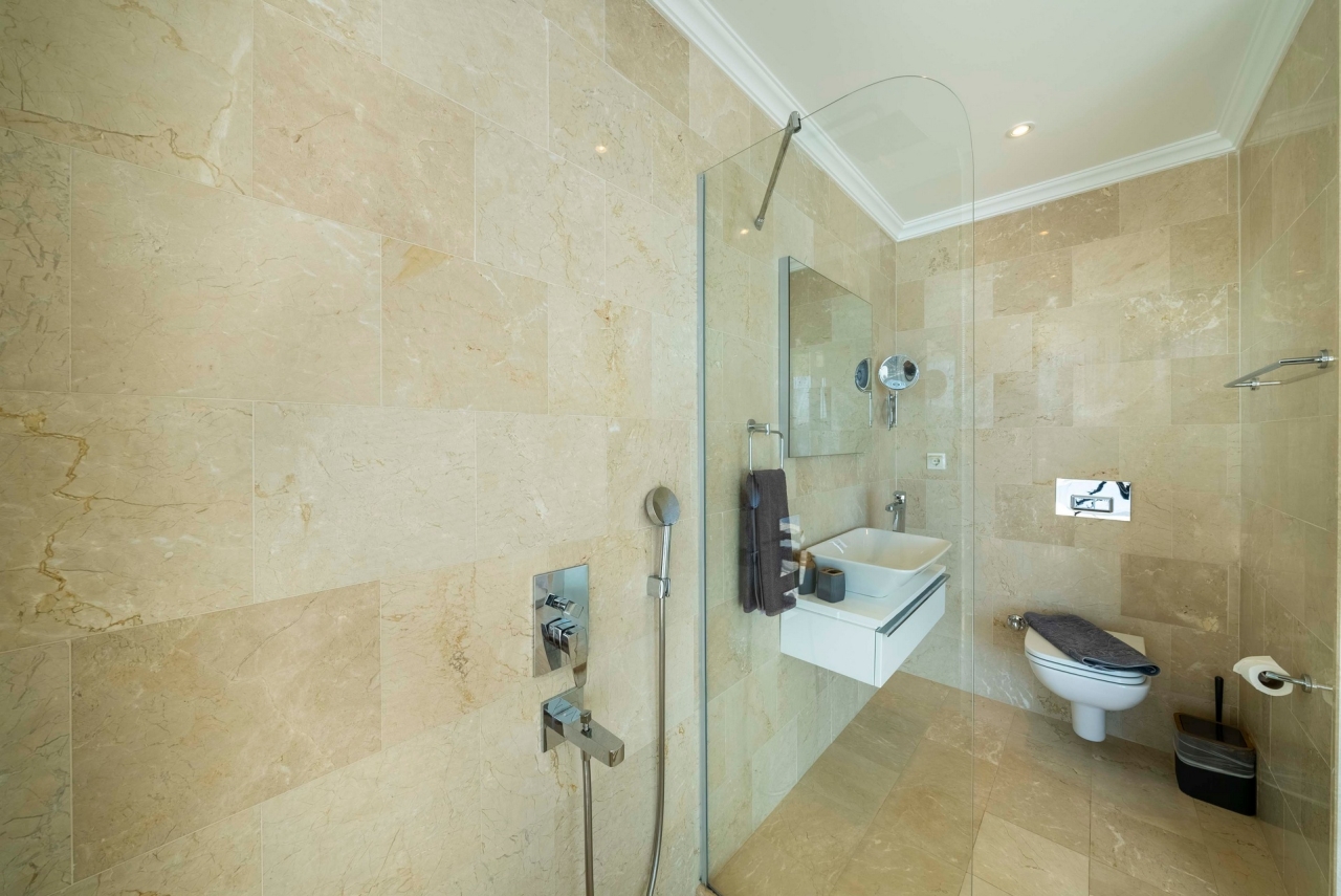 Villa Lumineux Kalkan is a spacious villa in the prestigious Komurluk area of Kalkan and hosts up to 12 guests with six en-suite bedrooms. Set on the hills just above the sea, the property offers captive views of the dazzling turquoise bay and harbour, and this area of Kalkan has the advantage of the latest evening sun and spectacular sunsets. A wrap-around pool terrace provides you with everything you need to savour your time in the sun, including a curved infinity pool, ample sun loungers, and pergola shaded dining area. There is even an authentic Turkish-style corner seating area, perfect for reclining with a book in the shade.The sleek interior covers three floors with tastefully arranged contemporary rooms which feel light and spacious. At the ground floor level, a sizeable living area with a modernised kitchen containing high-quality appliances and a breakfast bar integrated into a large kitchen island. A total of 6 bedrooms occupy this villa, each with sleek glass-fronted...