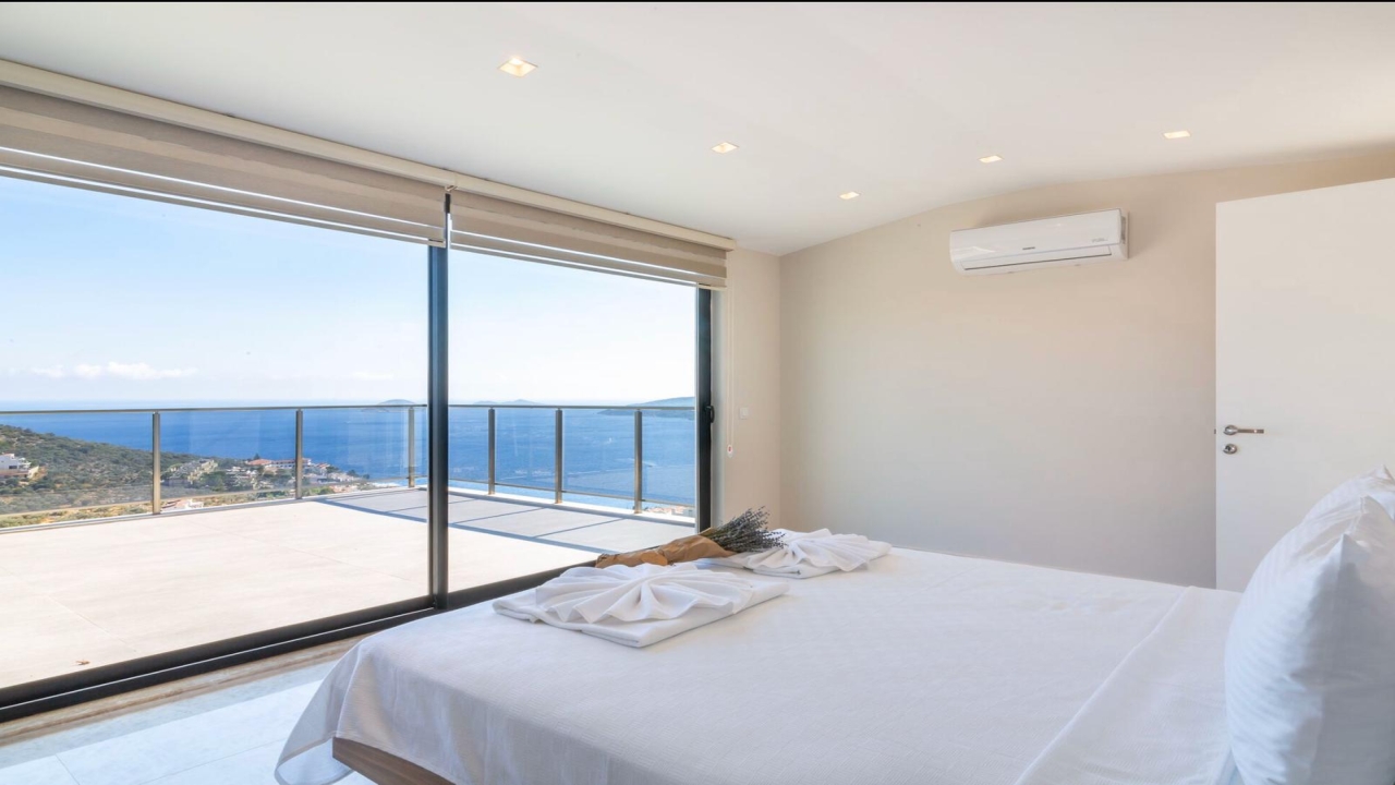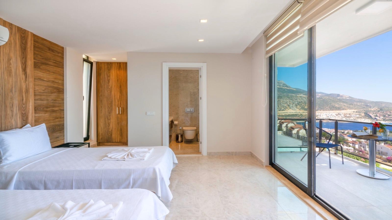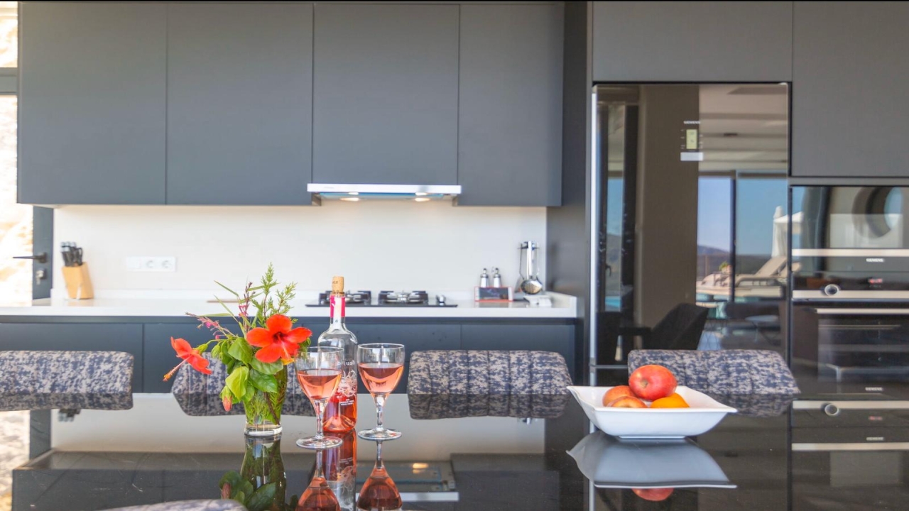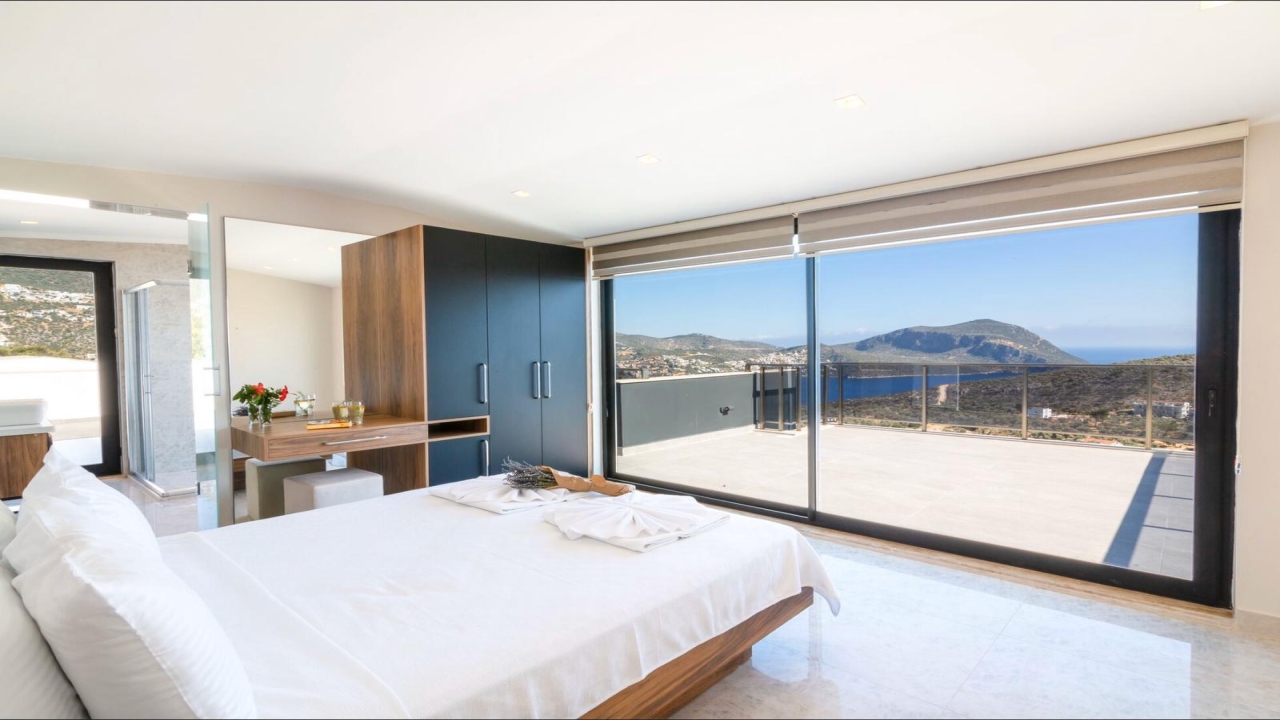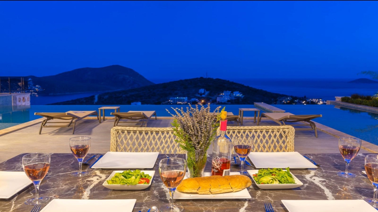 Villa Mirada 1 Kalkan is in the Kalamar area and has five deluxe bedrooms to sleep up to 10 guests. The contemporary villa has a beautifully maintained terrace with a wrap-around infinity pool that combines a children’s paddling pool and a jacuzzi. Modern in design, spaciously planned, and plentiful in amenities, villa Mirada 1 has much to offer our guests. Striking views of the sea and mountains can be enjoyed from both the pool terrace and the interior of this gorgeous 5-bedroom villa. Stunning views of the sea and islands can be seen throughout the villa.The villa’s ground floor has an elegant living room finished with stylish furnishings and marble flooring. An American-style fitted kitchen connects to this room, with plenty of appliances, including a built-in oven and microwave, dishwasher, and fridge freezer. When you want relief from the midday sun, an indoor dining table is featured in the kitchen, overlooking the pool and sea views. This glass-fronted living space opens...