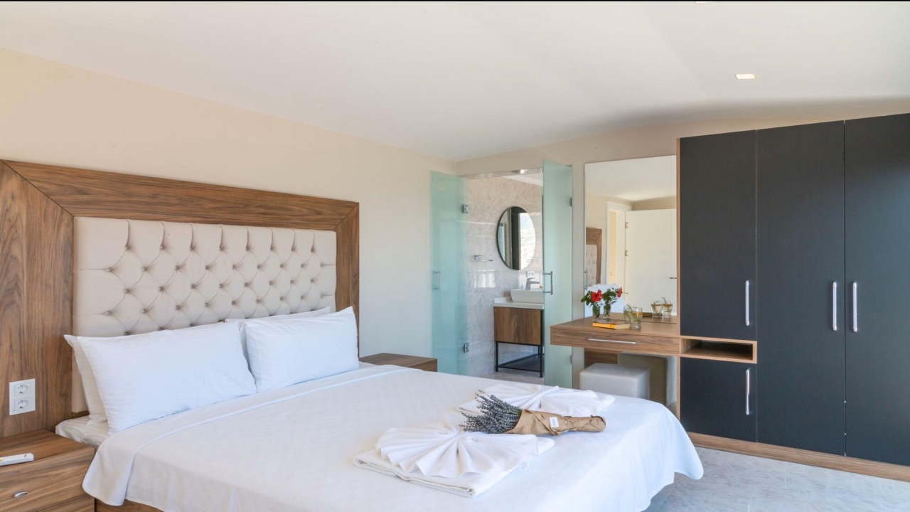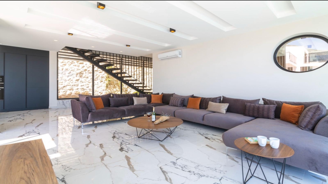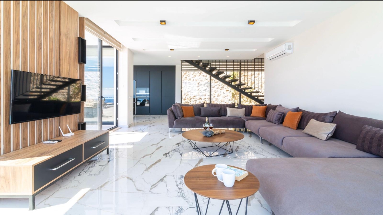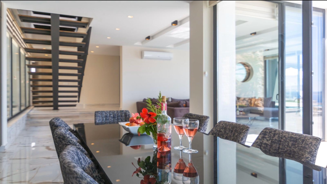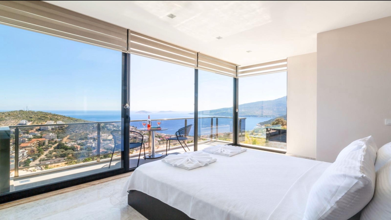 Villa Mirada 1 Kalkan is in the Kalamar area and has five deluxe bedrooms to sleep up to 10 guests. The contemporary villa has a beautifully maintained terrace with a wrap-around infinity pool that combines a children’s paddling pool and a jacuzzi. Modern in design, spaciously planned, and plentiful in amenities, villa Mirada 1 has much to offer our guests. Striking views of the sea and mountains can be enjoyed from both the pool terrace and the interior of this gorgeous 5-bedroom villa. Stunning views of the sea and islands can be seen throughout the villa.The villa’s ground floor has an elegant living room finished with stylish furnishings and marble flooring. An American-style fitted kitchen connects to this room, with plenty of appliances, including a built-in oven and microwave, dishwasher, and fridge freezer. When you want relief from the midday sun, an indoor dining table is featured in the kitchen, overlooking the pool and sea views. This glass-fronted living space opens...