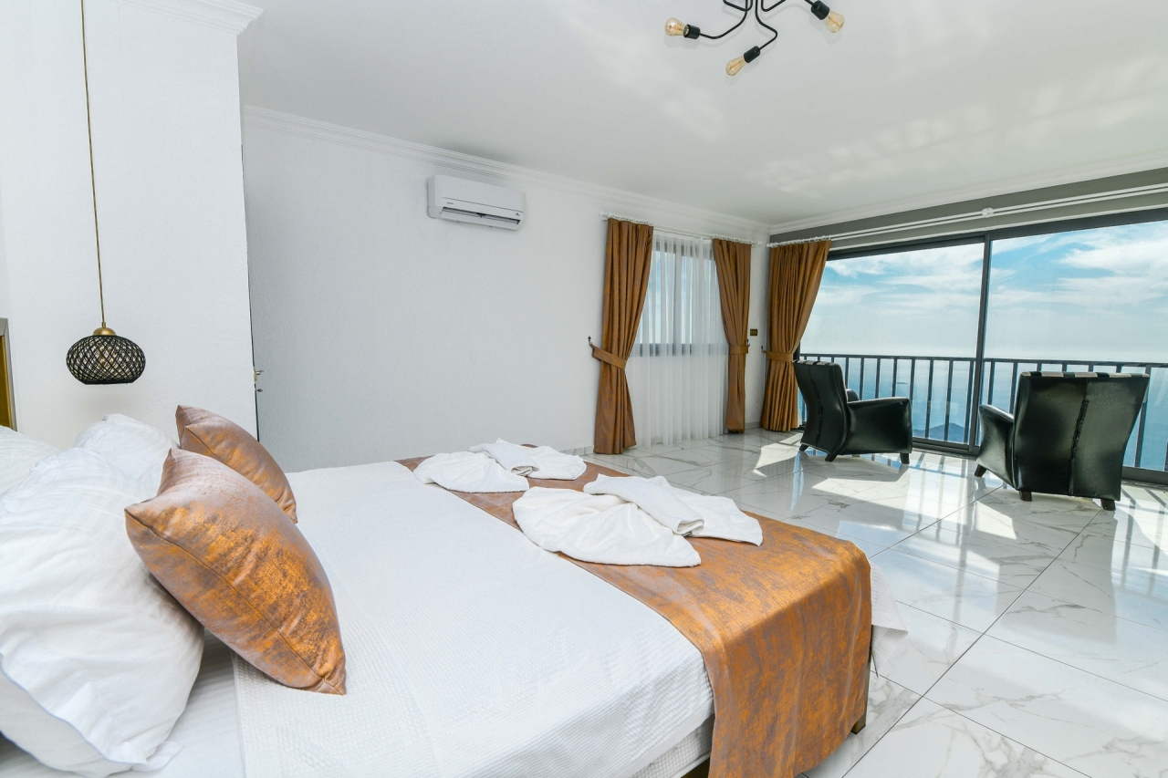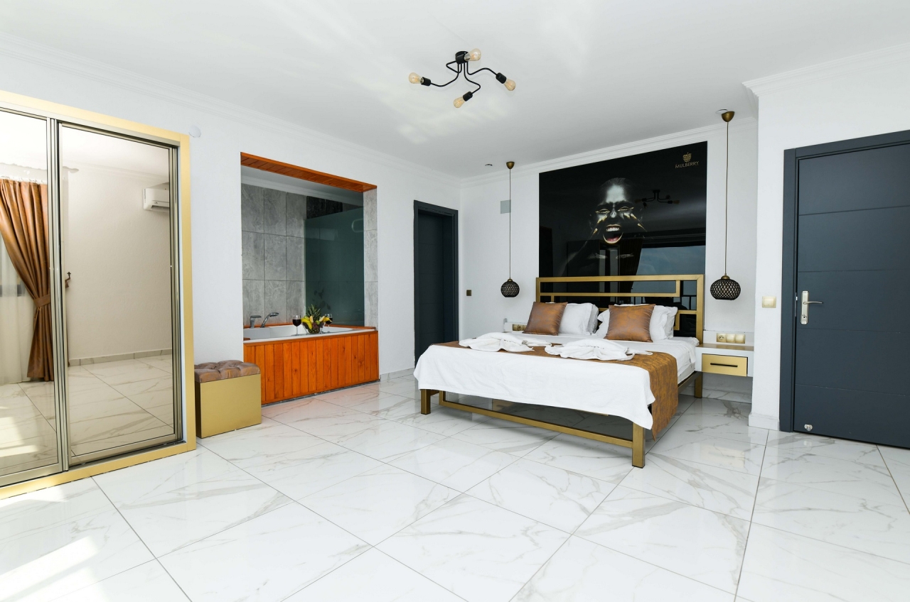 Situated in Kalkan's Kordere district, Villa Mulberry 4 forms part of a quartet of adjoining villas thoughtfully designed to offer both comfort and privacy. This elegant property features a single en-suite bedroom complete with a jacuzzi, ideal for moments of relaxation.The villa boasts a private infinity swimming pool, presenting captivating sea views from multiple vantage points. The sheltered pool area offers a peaceful haven, well suited to honeymooners or couples seeking a quiet escape.Just a 10-minute drive from Kalkan’s lively town centre, guests have easy access to a variety of restaurants, shops, bars, and beach clubs.Bedroom(First Floor): Furnished with a double bed, two armchairs, bedside tables, a wardrobe, vanity table, jacuzzi, bathroom, and WC.Living RoomThe contemporary living space is furnished with an L-shaped sofa, two chairs, a coffee table, and a flat-screen TV. A utility room equipped with a washing machine, iron, and ironing board is also available. Sliding...
