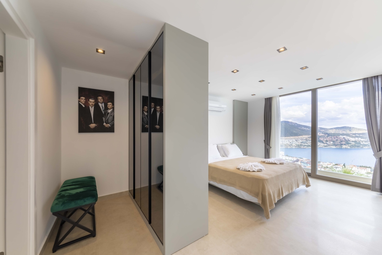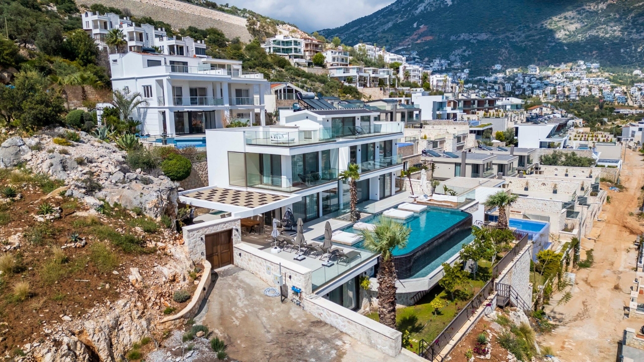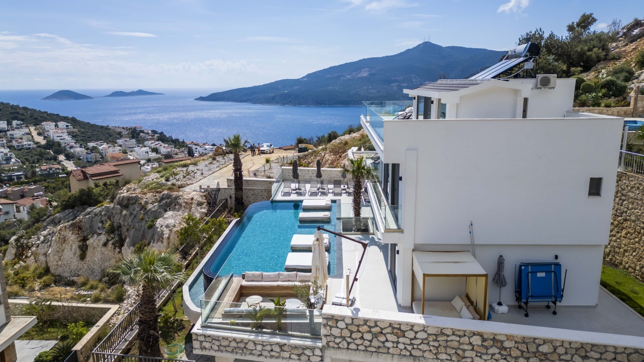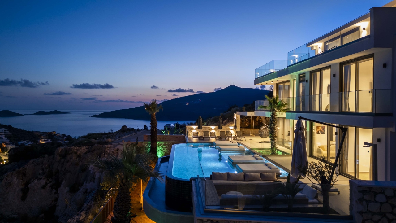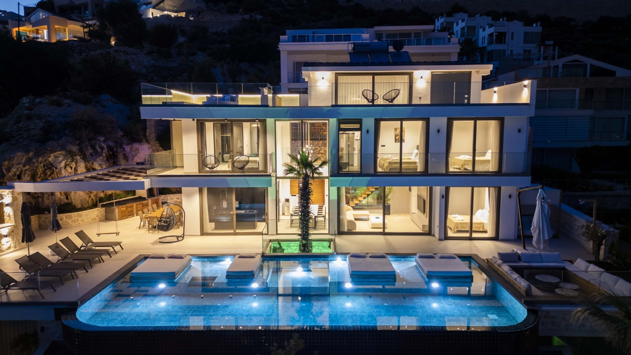 Villa Nobles Rox is an expansive six-bedroom villa set in Kalkan’s Ortaalan district. This property skillfully blends contemporary architecture with sleek, modern interiors and exteriors. From the pool terrace and several vantage points within the villa, you’ll enjoy striking views across Kalkan Bay. Conveniently close to Kalkan town centre, the villa offers easy access to an array of restaurants, shops, and the beach, which lies just a 15 to 20-minute stroll away.