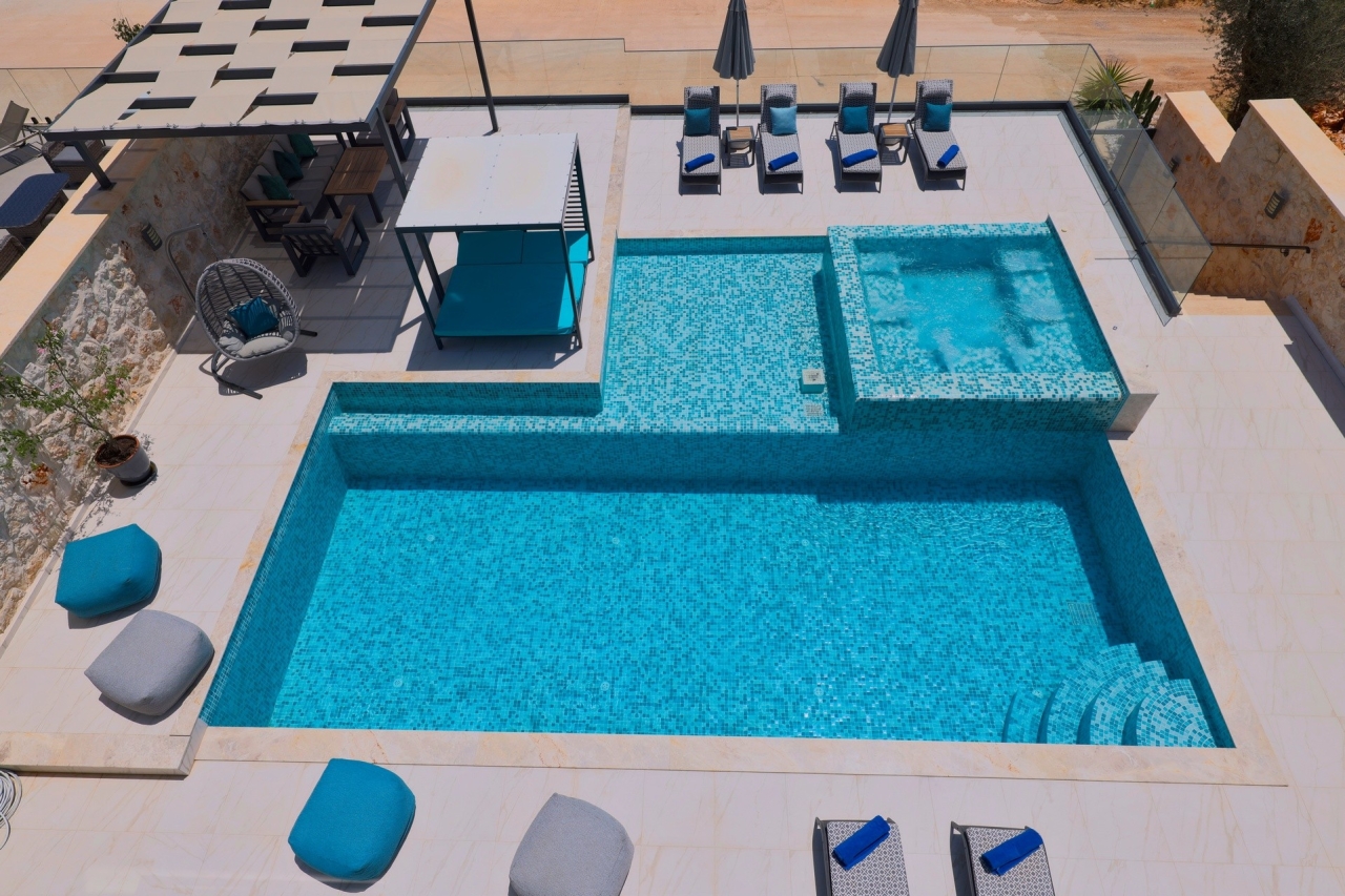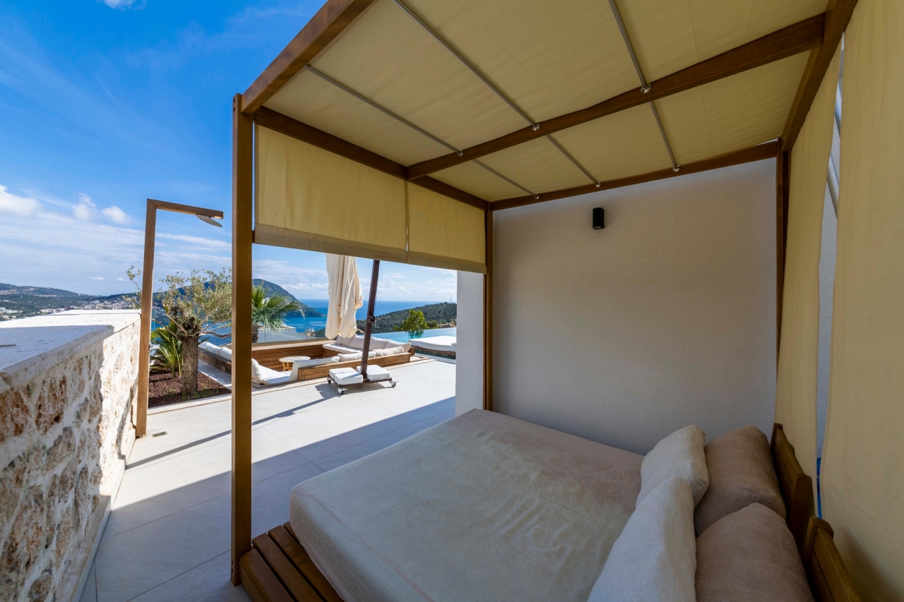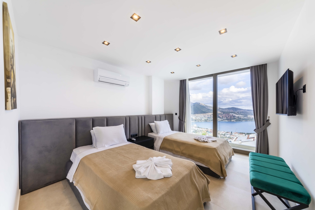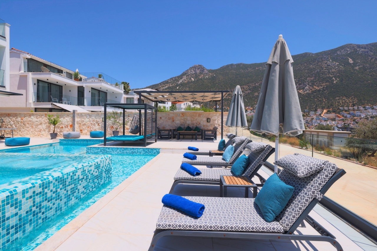 Villa Nobles Rox is an expansive six-bedroom villa set in Kalkan’s Ortaalan district. This property skillfully blends contemporary architecture with sleek, modern interiors and exteriors. From the pool terrace and several vantage points within the villa, you’ll enjoy striking views across Kalkan Bay. Conveniently close to Kalkan town centre, the villa offers easy access to an array of restaurants, shops, and the beach, which lies just a 15 to 20-minute stroll away.