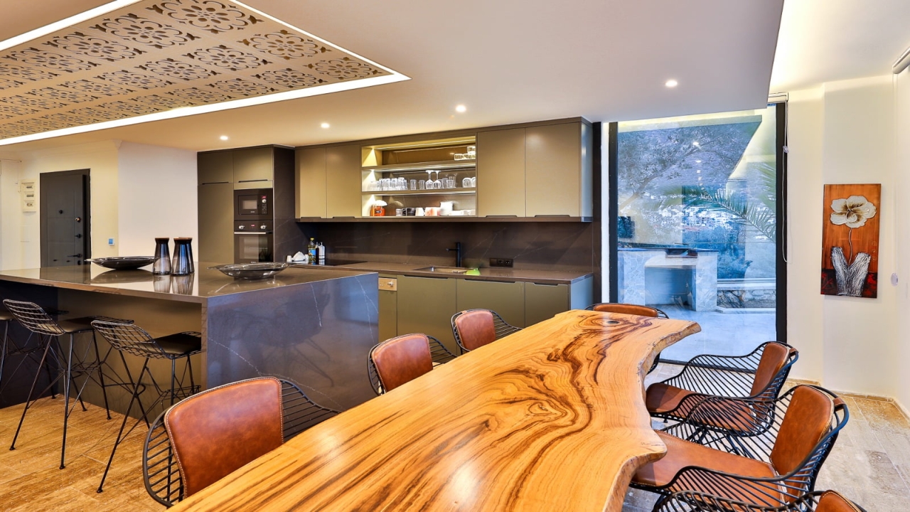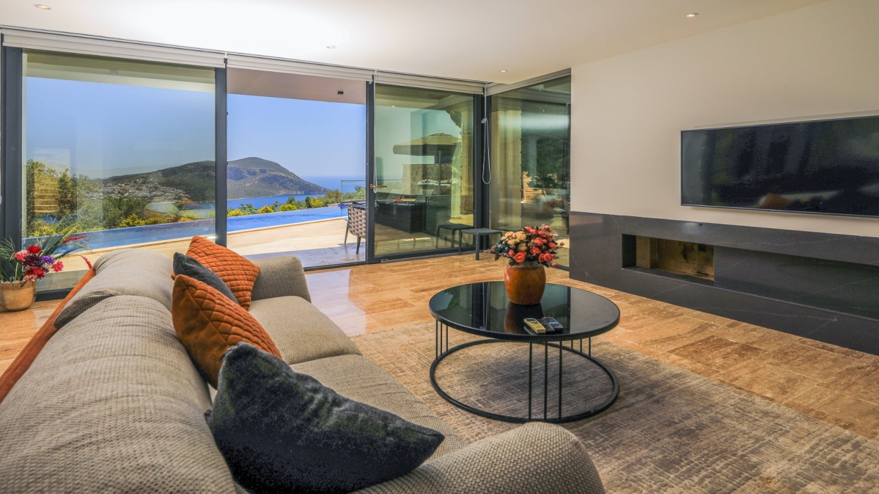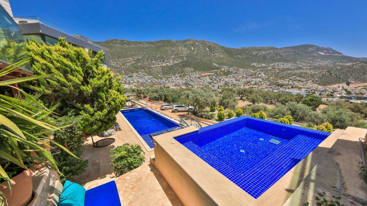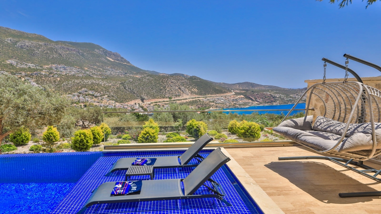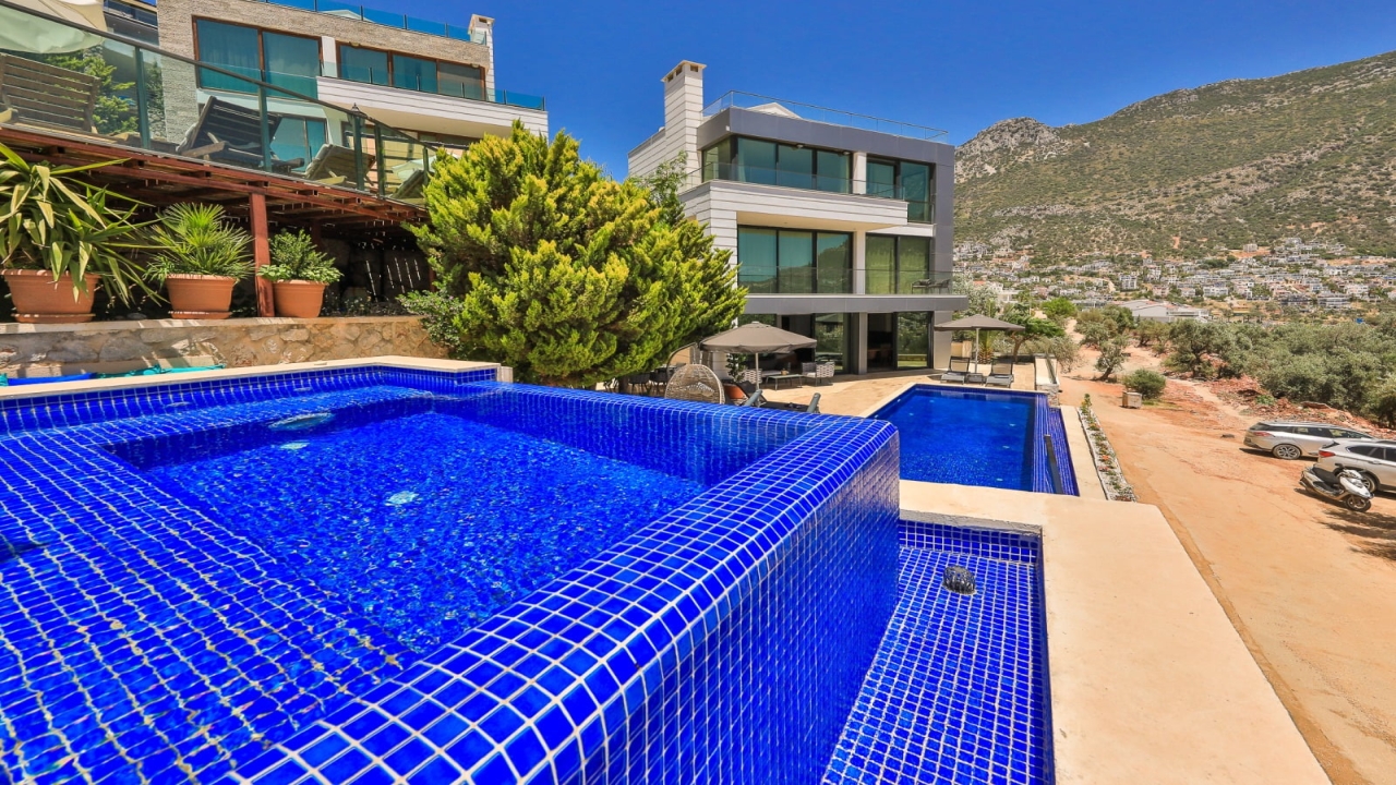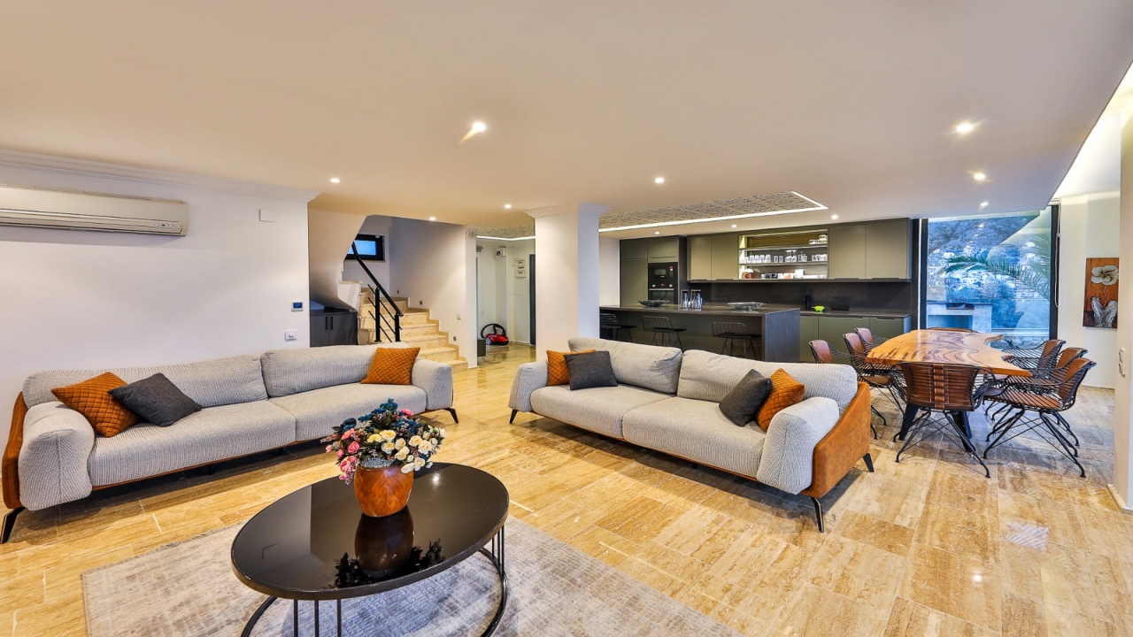 With elevated views of Kalkan Bay and the nearby mountains, Villa Panorama 1 Kalkan in the central Ortaalan area is a large, modern 5-bedroom villa that will excite your senses. Thanks to its well-designed outside terrace, infinity pool, and outdoor eating area, your leisurely summer break will be filled with luxurious relaxation. The property includes an expansive roof patio, generous en suite bedrooms, modern furniture, and breathtaking sea views. A 10-minute downhill stroll will bring you to Kalkan High Street, home to many fantastic amenities.The interior space covers three floors with five sizable en-suite bedrooms with adjoining balconies and a roof terrace from where you can take in the view of the entire bay of Kalkan. A generous living room and open-plan kitchen finished in an ultra-modern design with brushed grey kitchen units and light monochrome furnishings are connected to the main patio with full-height glass doors. Crowned with a gorgeous roof terrace that offers...