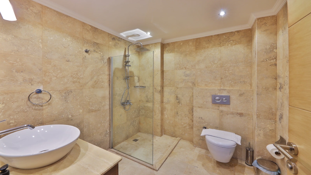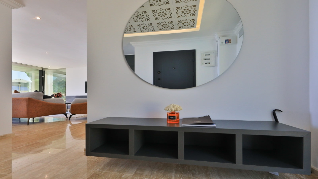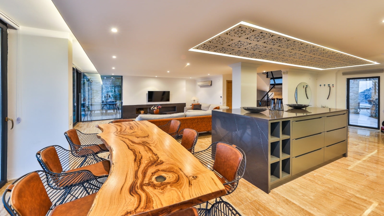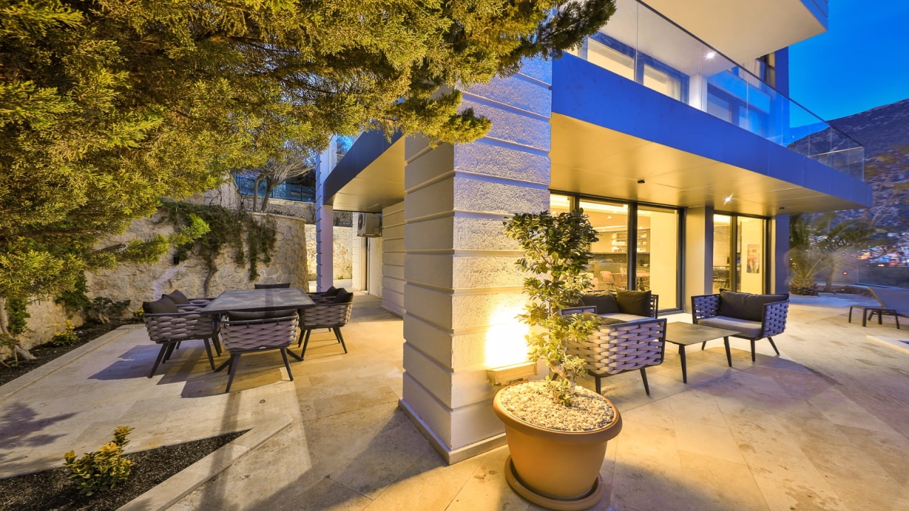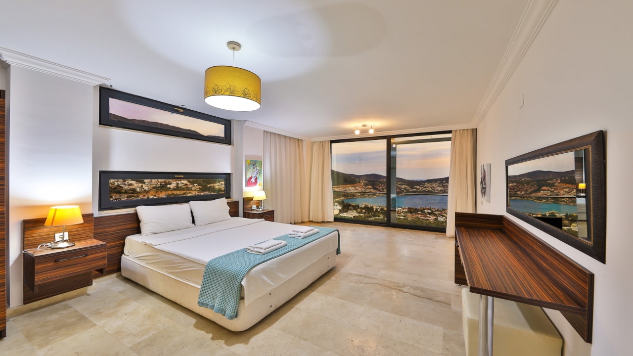 With elevated views of Kalkan Bay and the nearby mountains, Villa Panorama 1 Kalkan in the central Ortaalan area is a large, modern 5-bedroom villa that will excite your senses. Thanks to its well-designed outside terrace, infinity pool, and outdoor eating area, your leisurely summer break will be filled with luxurious relaxation. The property includes an expansive roof patio, generous en suite bedrooms, modern furniture, and breathtaking sea views. A 10-minute downhill stroll will bring you to Kalkan High Street, home to many fantastic amenities.The interior space covers three floors with five sizable en-suite bedrooms with adjoining balconies and a roof terrace from where you can take in the view of the entire bay of Kalkan. A generous living room and open-plan kitchen finished in an ultra-modern design with brushed grey kitchen units and light monochrome furnishings are connected to the main patio with full-height glass doors. Crowned with a gorgeous roof terrace that offers...