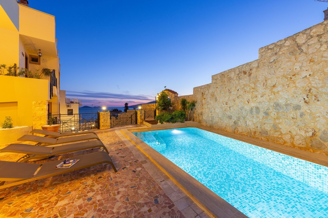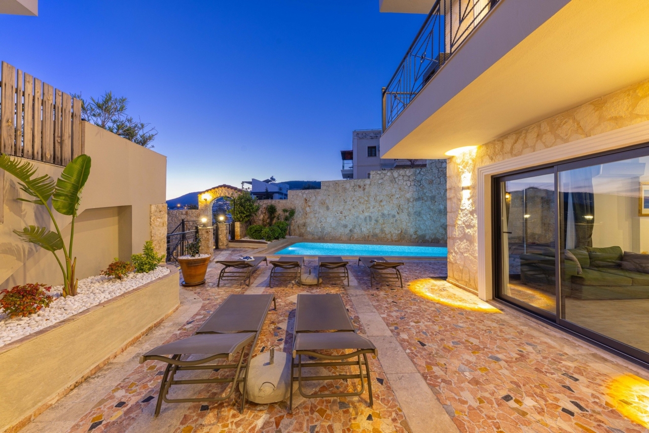 We are pleased to introduce Villa Pearl to our collection for the 2026 season. This contemporary 4-bedroom villa enjoys a prime location in the heart of Kalkan, offering an appealing mix of convenience and scenic charm. Just a short 3-minute walk brings you to the Old Town, where a fine selection of restaurants, shops, bars, and the harbour await. Equally practical, CarrefourSa supermarket is also only a 3-minute stroll away.Recently upgraded to an exceptional standard, Villa Pearl features four elegantly furnished en-suite bedrooms and benefits from delightful sea views visible from its balconies. Inside, the stylish living area flows effortlessly into a fully equipped open-plan kitchen. Outside, the pool terrace includes a private swimming pool—ideal for both leisurely swims and unwinding in the sun.Bedrooms1. First Floor: Double bed, bedside tables, wardrobe, vanity table, bathroom with WC. Sliding glass doors open onto a private balcony furnished with two chairs and a coffee...