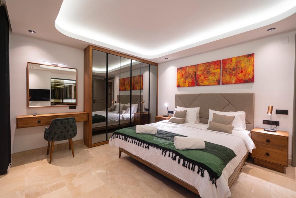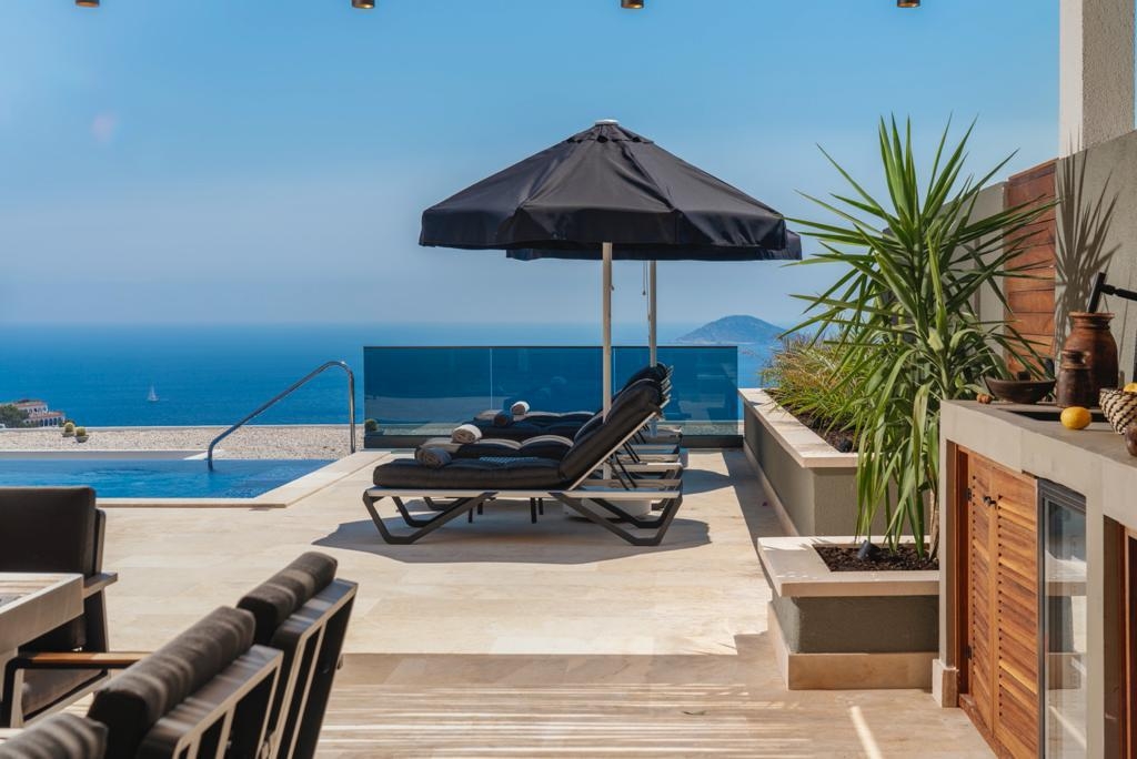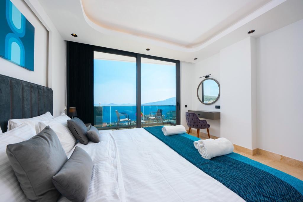 Villa Recep, a stylish 5-bedroom property with a contemporary aesthetic, joins the luxury villa collection for the 2025 season. Its generous interiors are complemented by captivating views over Kalamar Bay and the neighbouring islands.Within the main villa, you will find four en-suite bedrooms, while an additional en-suite bedroom occupies the villa’s lower grassed courtyard area.Situated in Kalkan’s Kalamar district, the villa is a 20 to 25-minute walk—or a brief 5-minute taxi ride—to the town centre. The restaurants along Kalamar Road lie within a pleasant 7 to 8-minute stroll, and Carrefour Supermarket is just 5 to 6 minutes on foot.Lower Ground Floor (Street-level entrance)A side street leads to the villa, featuring a garage designed for one car. Entry is secured through a gate opening onto a courtyard adorned with a water feature and potted shrubs.This level houses a self-contained en-suite bedroom accessible via sliding doors.Bedroom 1 is a double room with an en-suite...