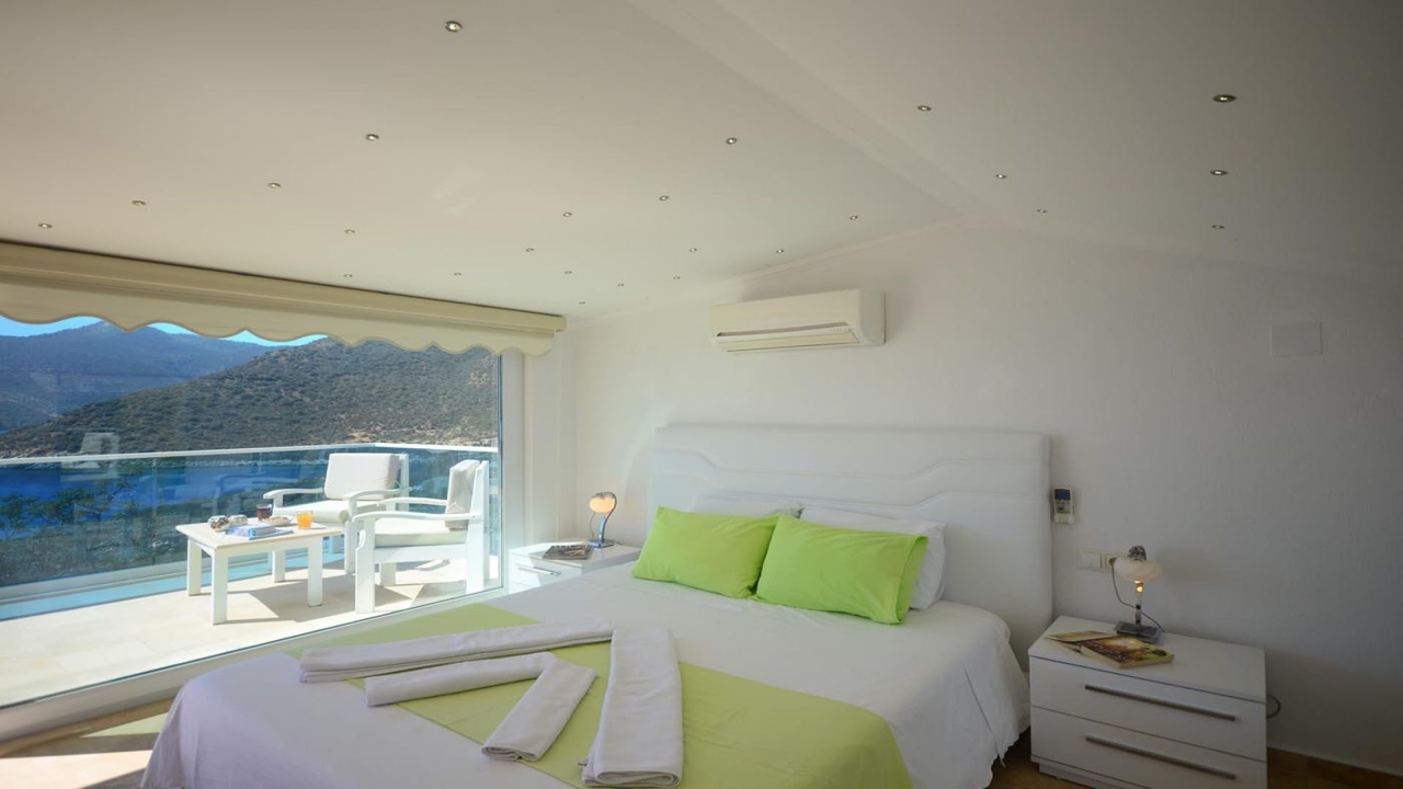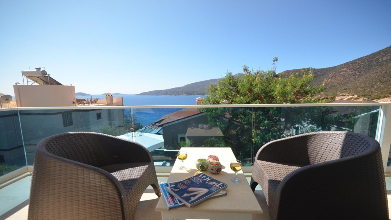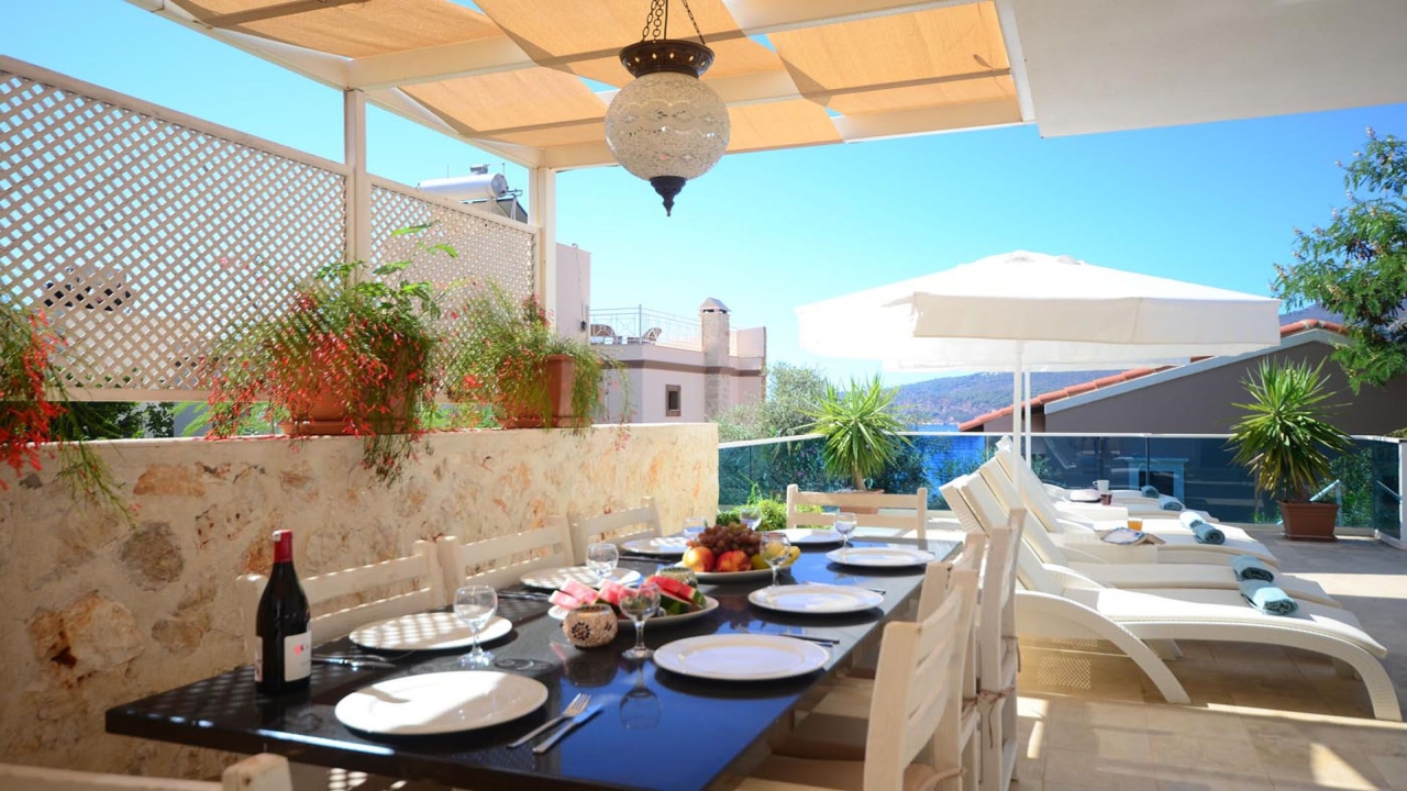 Villa Ruzgar Kalkan boasts an enviable location perched above the calm waters of Kalamar bay. Four deluxe bedrooms are tastefully arranged, each with a private bathroom and elevated views across Kalamar bay. The luxury doesn't end with the bedrooms; through several sizable sliding glass doors, the expansive roof terrace is furnished with sun loungers so you can catch the final rays of the day while you gaze at the sea vistas beyond. A large dining table for 8 people is situated on the swimming pool terrace in a covered area —the ideal setting, in fact, to take advantage of the waning afternoon sun.Like us, you will like the look and feel of this property if stylish, contemporary architecture and interior design are your things. We believe that the spaces inside the house and outdoors on the sizeable terraces will thrill our guests. This villa's location is serene and convenient as you can easily walk to a few favourite local restaurants. Kalamar beach club is just 500 metres...