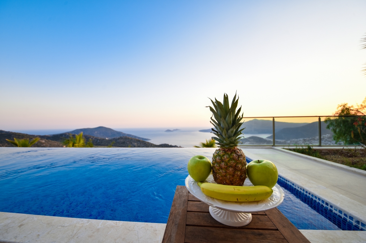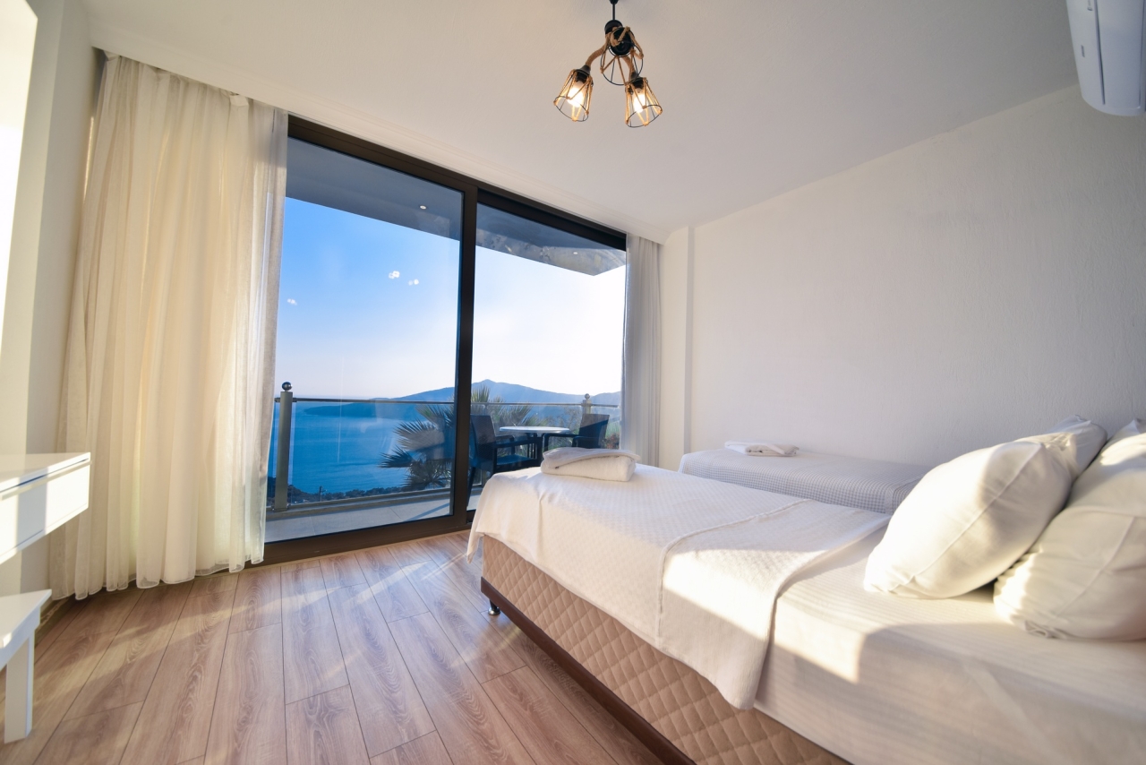 Villa Sunrise is located in Kalkan’s Kordere district, offering a tranquil retreat. This elegant property features three en-suite bedrooms, including one with a jacuzzi bath. Outside, a private infinity pool awaits, surrounded by a generous terrace ideal for sunbathing and al fresco dining. From various points around the villa, uninterrupted sea views enhance the serene atmosphere.Just a 7-8 minute drive brings you to Kalkan’s Old Town, with its array of restaurants and shops close at hand.Bedrooms1. Ground Floor: A double bedroom complete with bedside tables, wardrobe, vanity table, bathroom and WC.2. First Floor: Twin beds, bedside tables, wardrobe, vanity table, bathroom and WC.3. First Floor: Double bedroom with bedside tables, wardrobe, vanity table, en-suite bathroom featuring a jacuzzi bath and WC.Living RoomThe refined living area is furnished with three comfortable sofas, a coffee table and a flat-screen TV. A utility room includes a washing machine, iron and ironing...