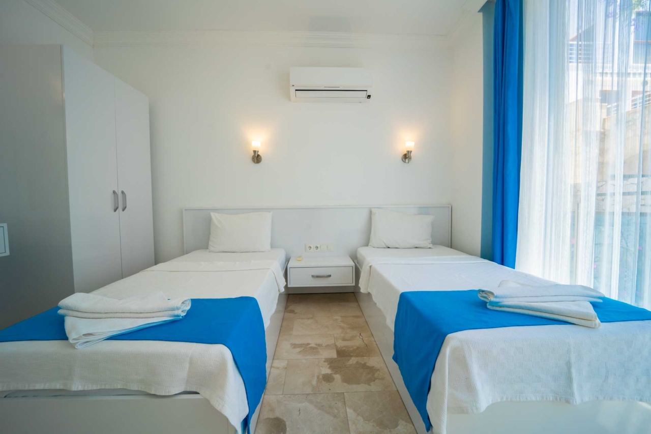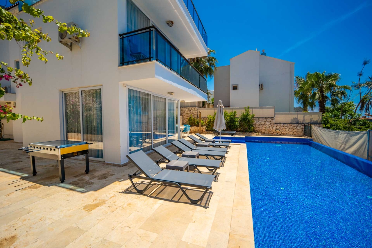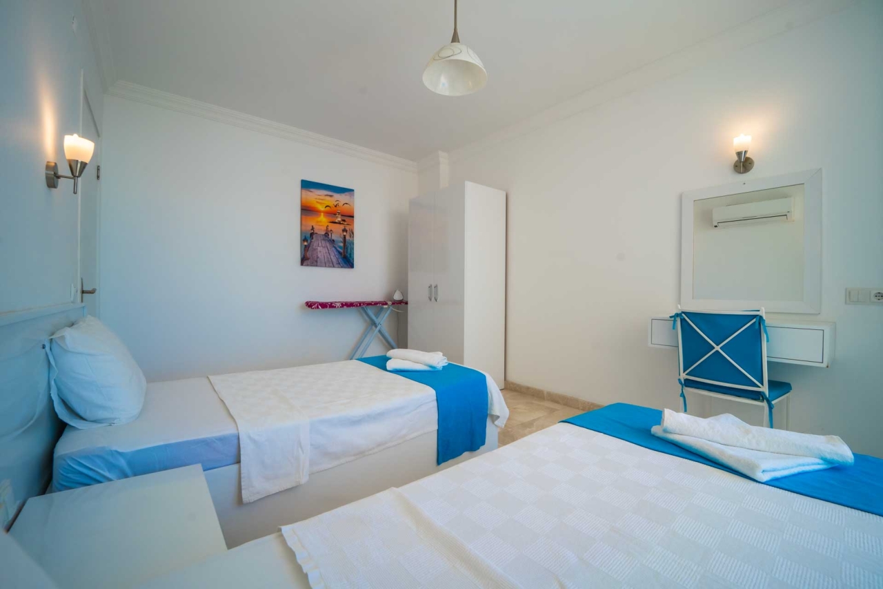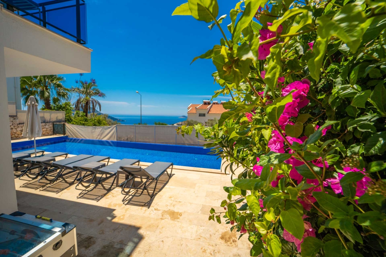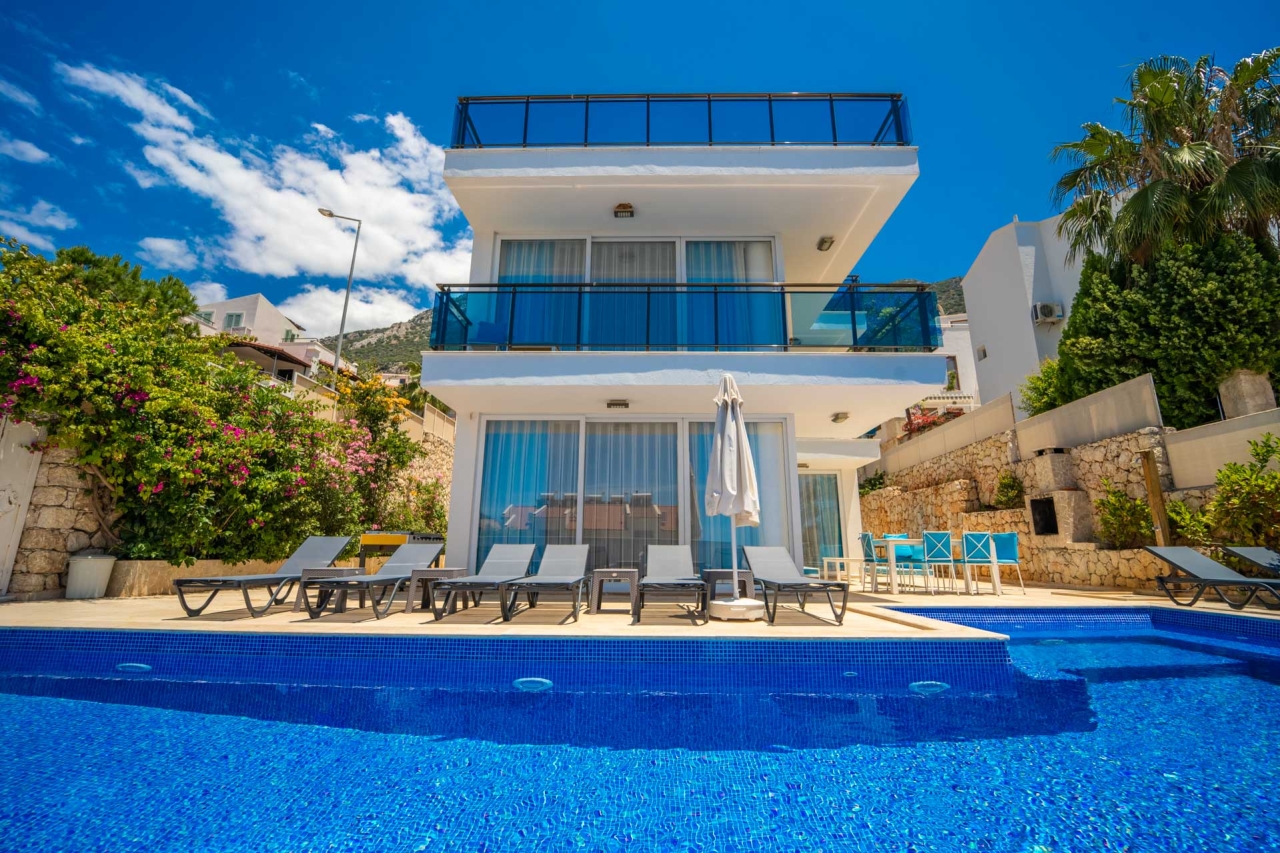 We are pleased to announce that Villa Trios will be an exclusive addition to our portfolio for the 2025 season. Set in the Kiziltas district of Kalkan, this spacious villa comfortably accommodates up to eight guests across four generously sized bedrooms and three bathrooms, making it an excellent option for families or groups seeking ample space both indoors and out.Located around a 15 to 20-minute walk, or a brief taxi journey, from Kalkan town centre, Villa Trios offers a tranquil retreat within easy reach of local amenities.On the ground floor, an open-plan layout combines the living, kitchen, and dining areas. The living room is furnished with two sofas, an armchair, and a coffee table, centred around a wall-mounted flat-screen TV. The kitchen is fully equipped with essentials including a dishwasher, kettle, fridge freezer, microwave, toaster, water cooler, oven, and hob. A dining table seating eight sits within the kitchen space, while sliding glass doors open directly onto the...