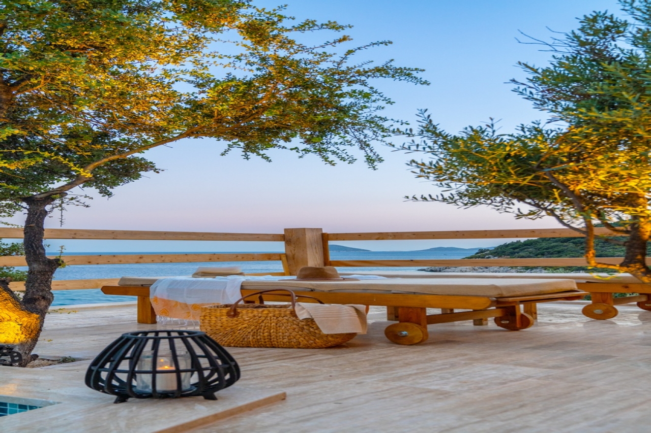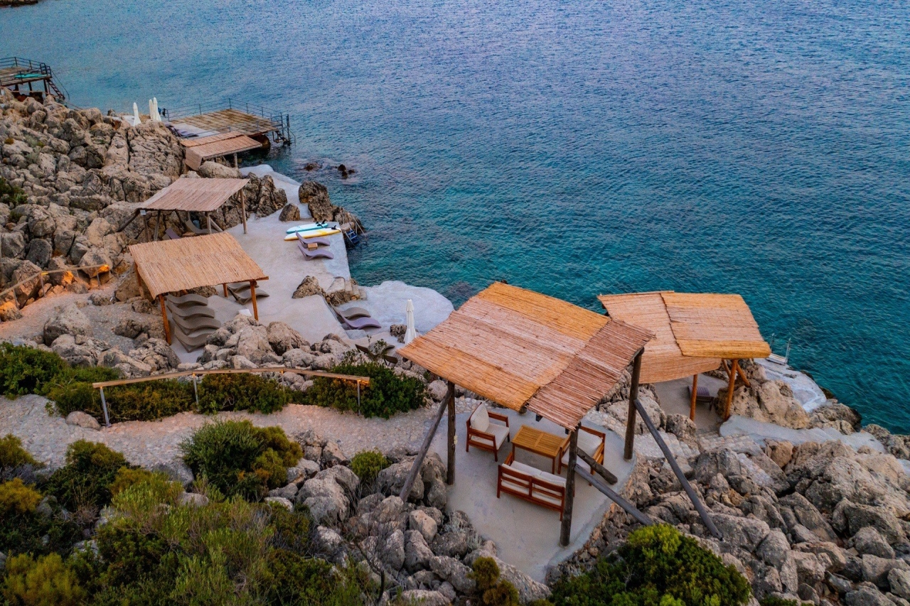 Villa Water’s Edge 7 is a stylish one-bedroom detached villa, quietly set among four similar properties in Kalkan’s Kalamar district. Part of a thoughtfully arranged development of seven villas, it offers guests exclusive use of a beach club-inspired, split-level sunbathing terrace close to the water’s edge. Each villa enjoys its own designated section here, furnished with ample sun loungers, creating a private yet sociable space to relax by the sea. Entry to Water’s Edge 7 is via a wooden gate at street level that serves Villas 1, 2 and 3, leading along a winding path that reveals this serene hideaway with direct sea access.InteriorThe open-plan living area feels generous and carefully considered, designed to offer comfort without fuss. The kitchen is comprehensively equipped with a fridge-freezer, dishwasher, gas hob with extractor, electric oven, kettle, sandwich toaster, and a round dining table with seating for two. Sliding glass doors extend the living space onto the...