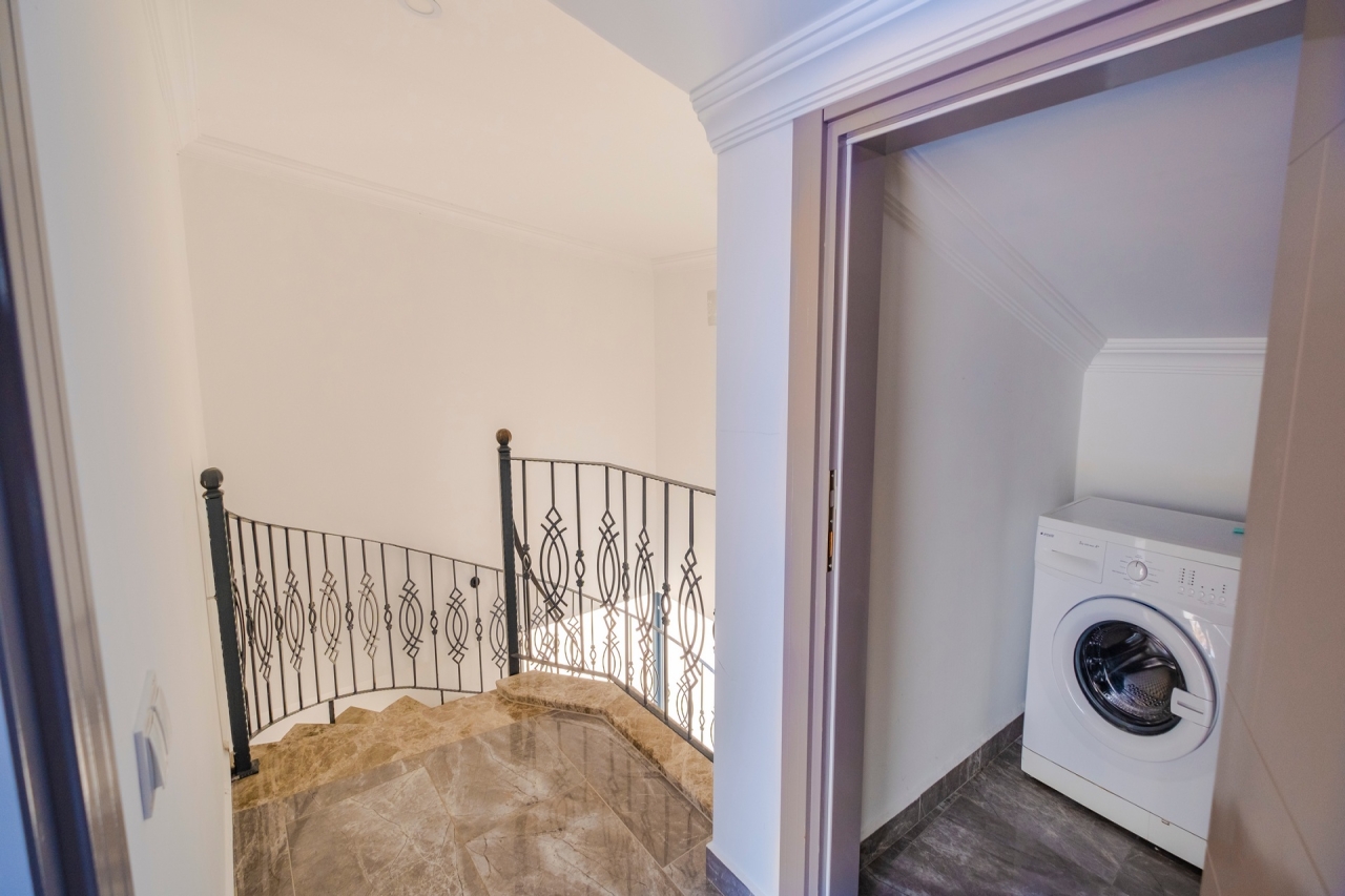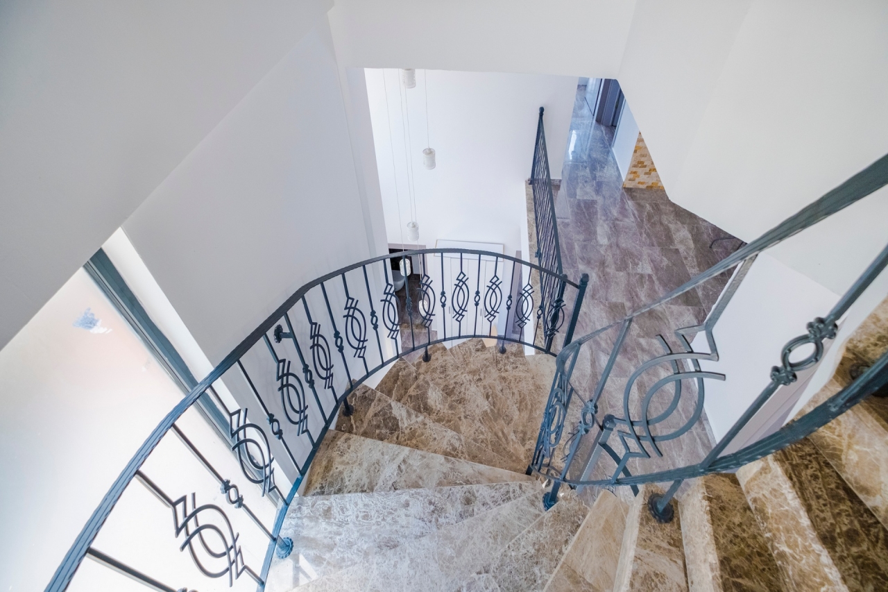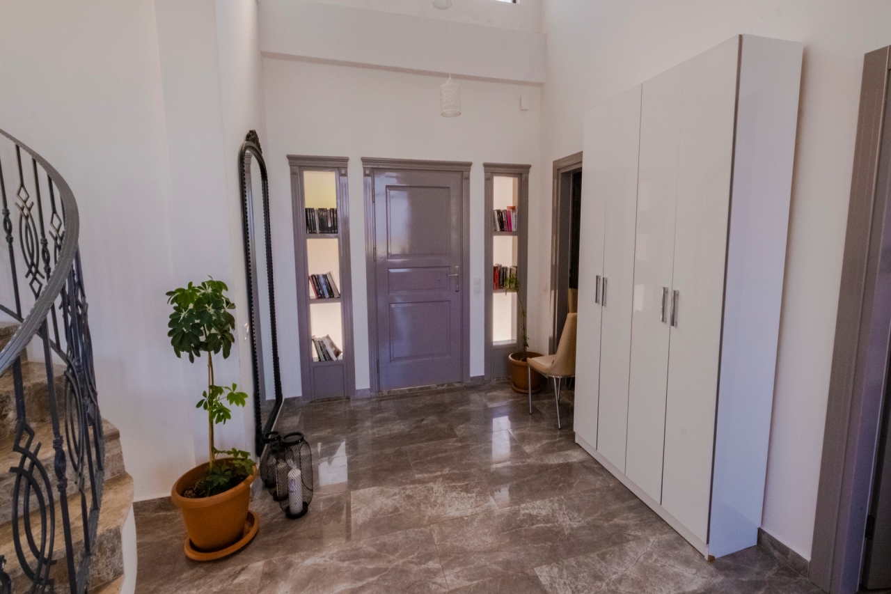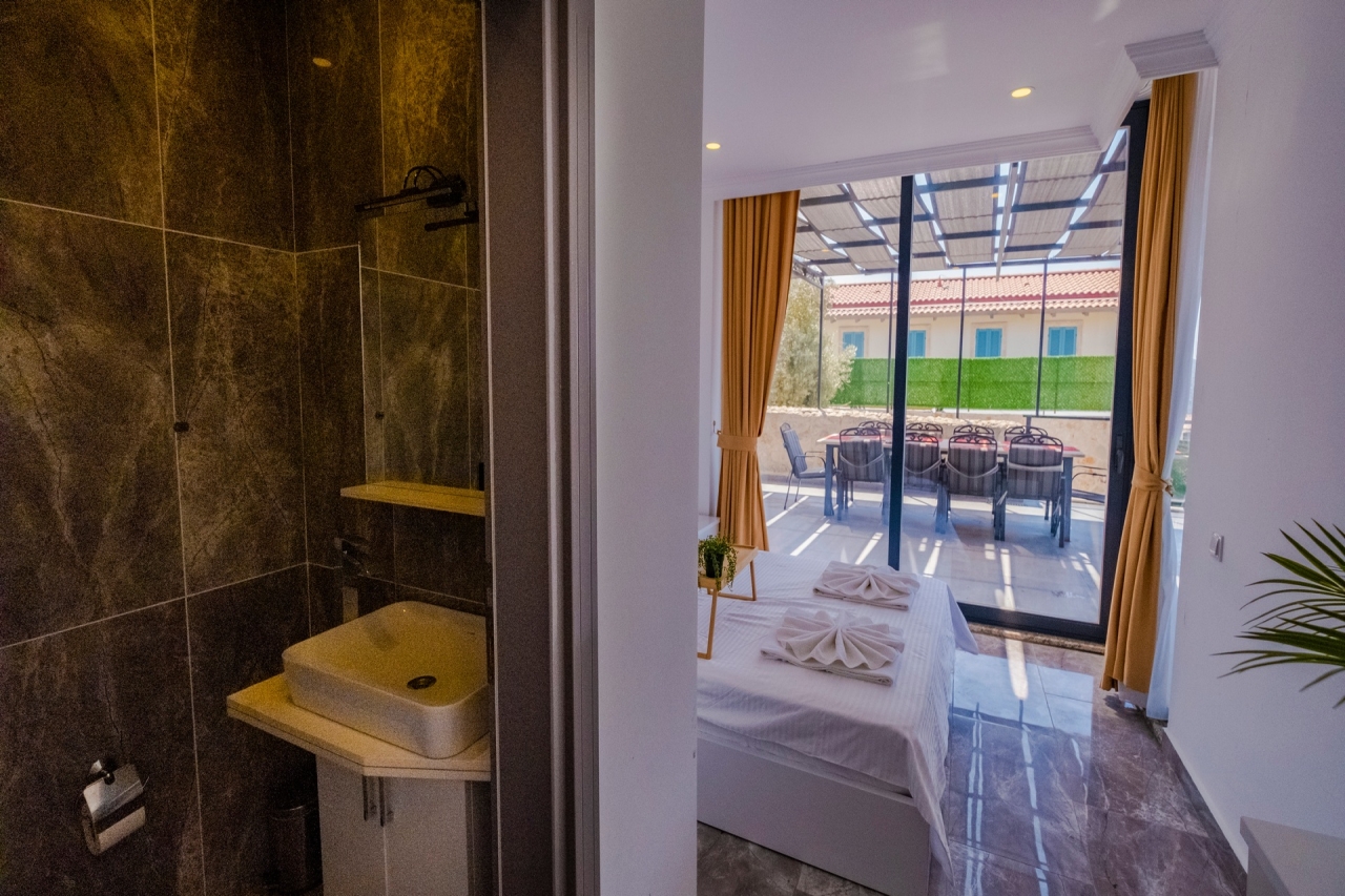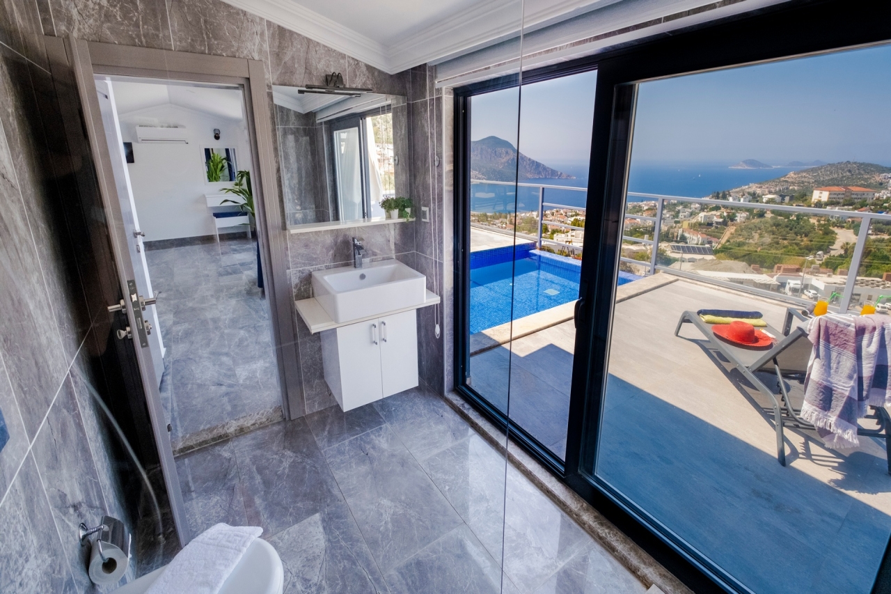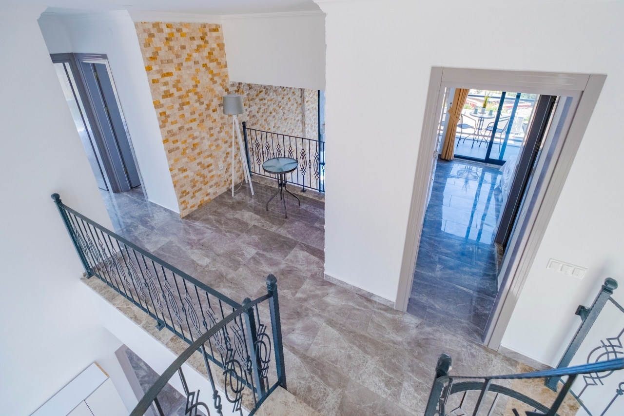 Villa Waterfall 1 stands out as an elegant property in Kalkan's Kiziltas district. It comprises 5 en-suite bedrooms, with one conveniently located on the ground floor and four arranged across the upper levels. A striking spiral staircase crafted from marble and iron connects the floors with a refined touch.The top floor is dedicated to the master bedroom, which opens directly onto the roof terrace. This private area includes a plunge pool and outdoor seating, offering expansive views that extend over the surrounding landscape.Inside, the villa embraces an open-plan layout that feels both spacious and inviting. The living room and kitchen on the ground floor benefit from abundant natural light streaming through a towering double-height window, which frames the vista of the pool terrace beautifully.Wide sliding doors open onto a generous pool terrace featuring an infinity pool. It’s an ideal spot for dining al fresco or enjoying a barbecue, all while taking in the panoramic mountain...