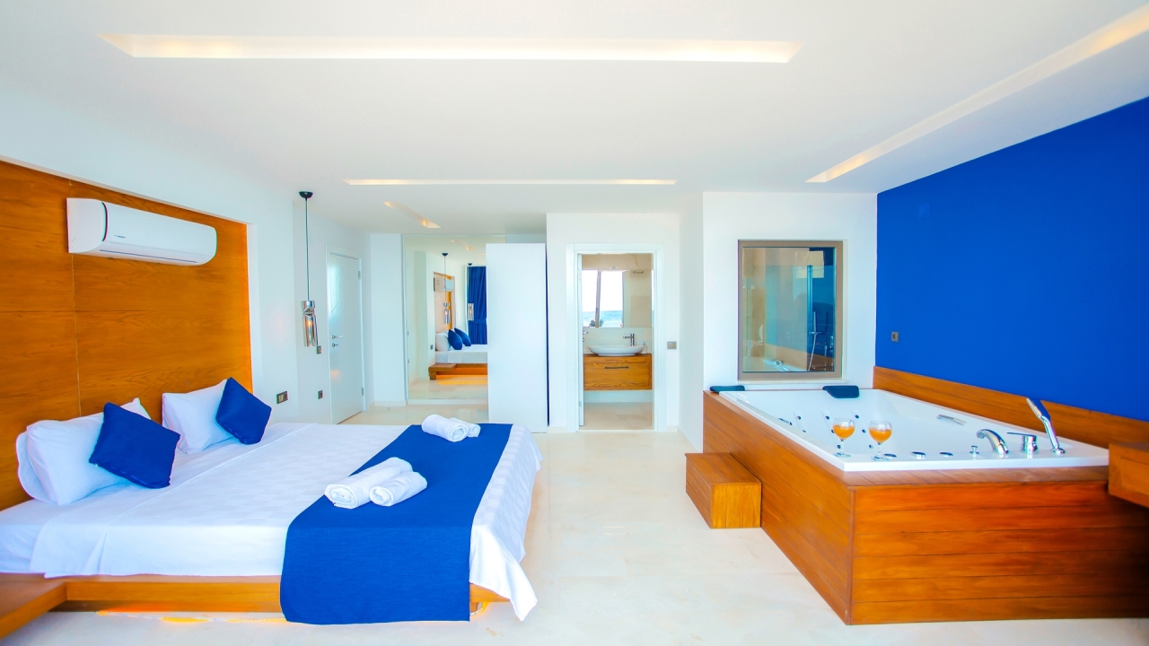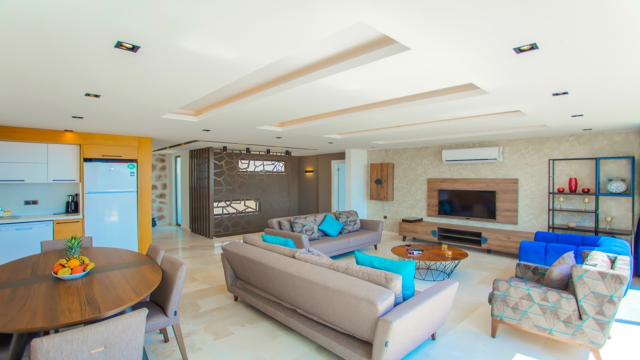 Villa White Smith in Kordere Kalkan, tucked away in the picturesque mountainside of Kalkan, is the epitome of contemporary luxury and comfort. This stunning 3-bedroom villa offers a perfect blend of modern design and luxury living, providing a serene retreat for those seeking an unforgettable holiday experience.As you approach Villa White Smith, you'll be captivated by its sleek architectural lines and pristine white facade, harmoniously integrated with the natural beauty of the surroundings. The interior design of Villa White Smith is a masterclass in contemporary sophistication. This villa boasts spacious and elegantly furnished living areas flooded with natural light that creates a welcoming and airy atmosphere.The three well-appointed bedrooms are havens of tranquillity, each thoughtfully designed with comfort in mind. High-quality linens, plush furnishings, and tasteful decor create an inviting ambience with a private jacuzzi featured in the master bedroom. The...