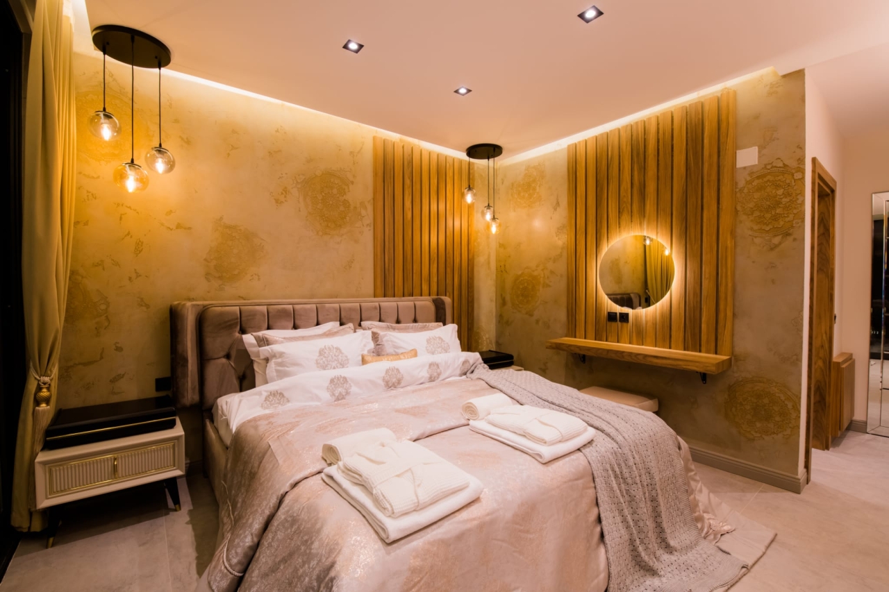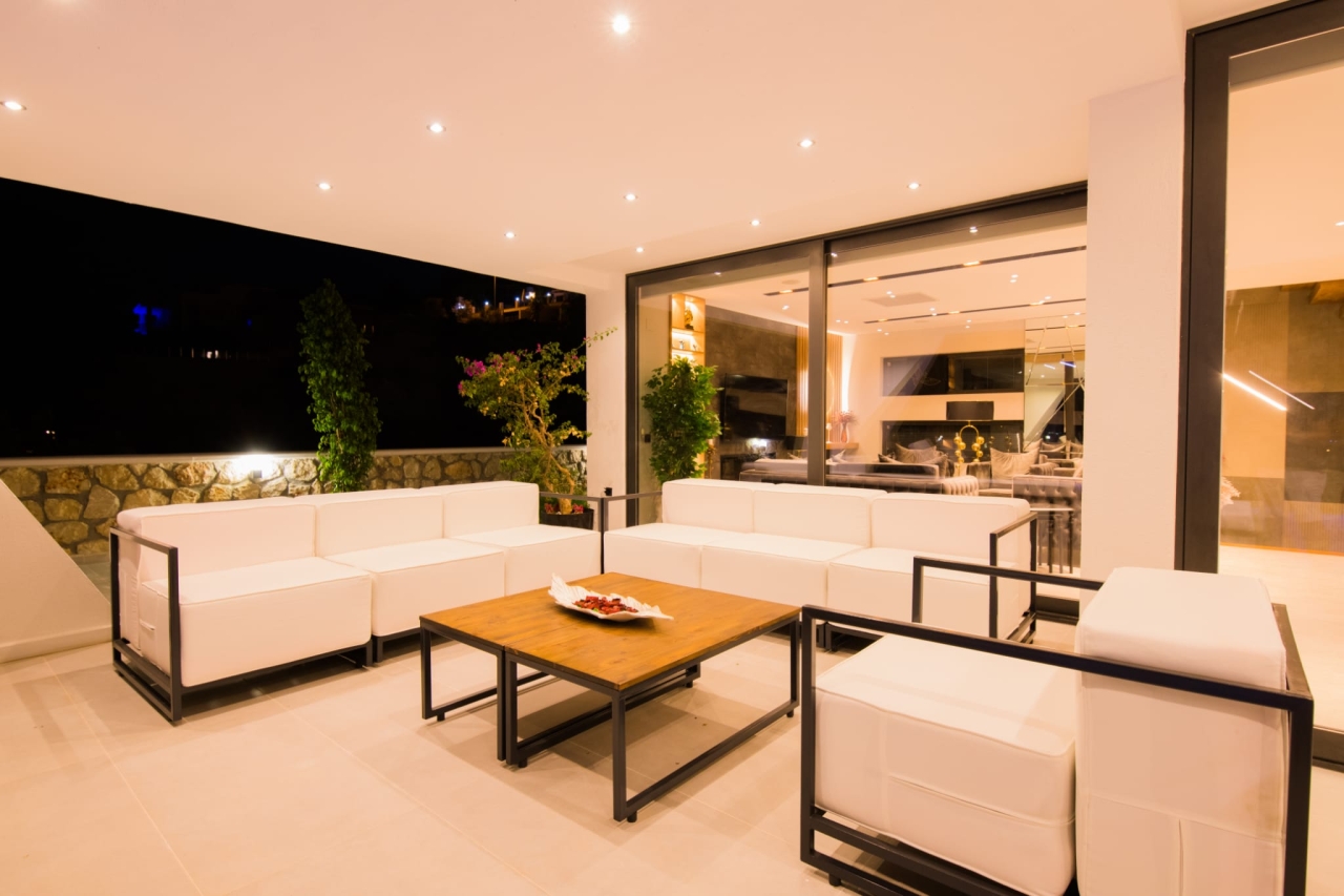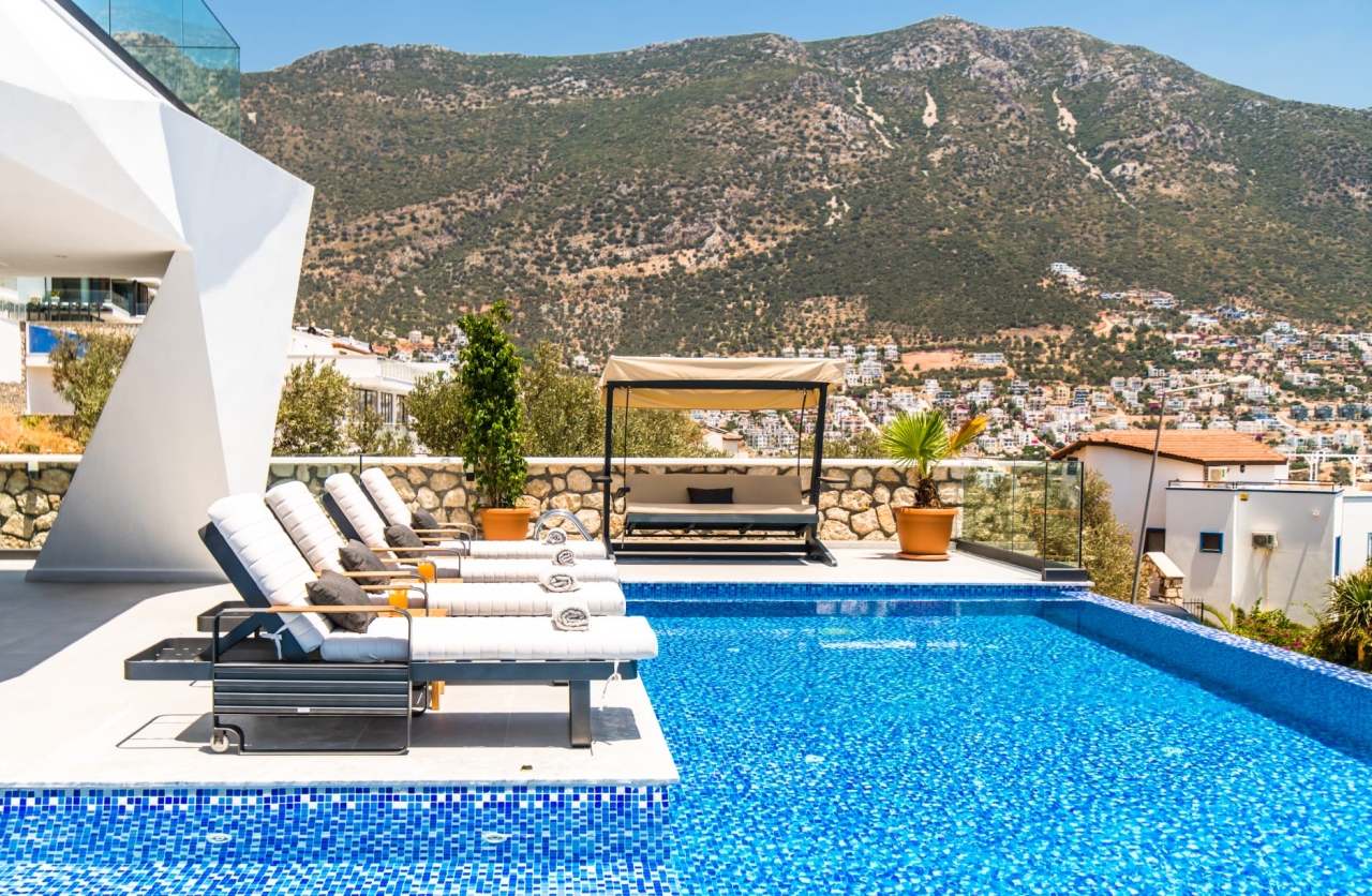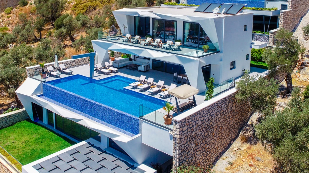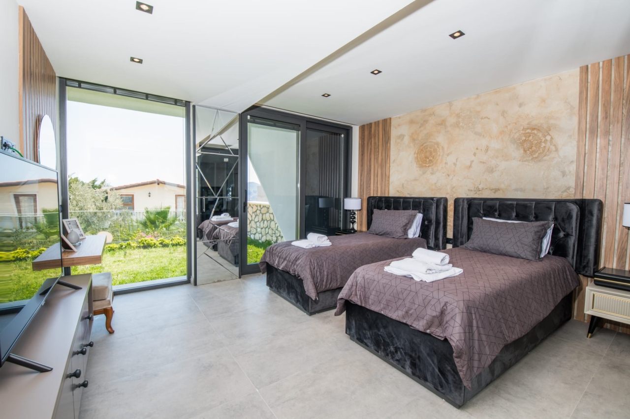Villa Yana is one of a pair of elegant neighbouring homes set in the Ortaalan district of Kalkan. This villa commands sweeping sea views and comes complete with an impressive selection of facilities including a sauna, hammam, gym, cinema room, pool table, heated indoor pool, and a private outdoor pool. Within the property, four stylishly furnished en-suite bedrooms await; three are situated on the first floor, while the fourth lies on the lower ground floor alongside the spa area. The first-floor bedrooms share a generous sea-facing terrace with a sunken jacuzzi, providing an idyllic spot to unwind and soak up the panoramic vistas.Designed in a contemporary avant-garde style, Villa Yana offers every comfort for a luxurious stay. Outside, sunbathing and relaxation areas are perfect for savouring the warm Kalkan sunshine. The villa is conveniently located just a 20 minute stroll or a brief 5 minute taxi ride from Kalkan town centre.Bedrooms1. Lower ground floor bedroom: twin beds,...