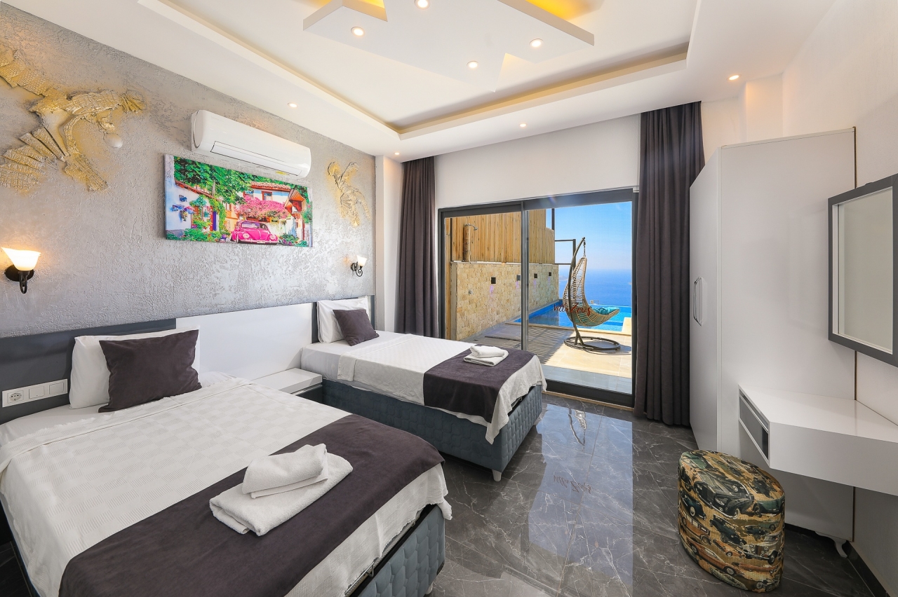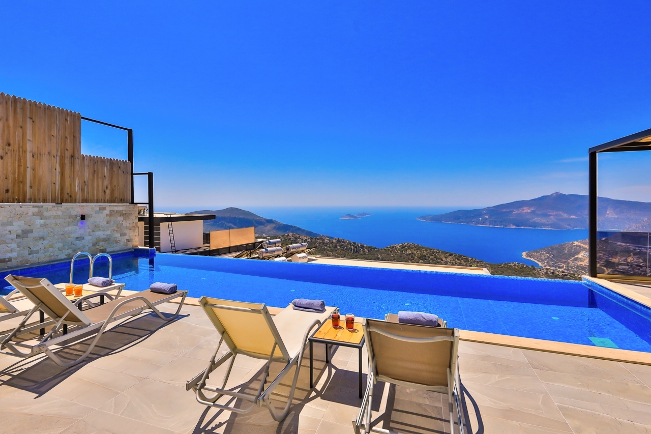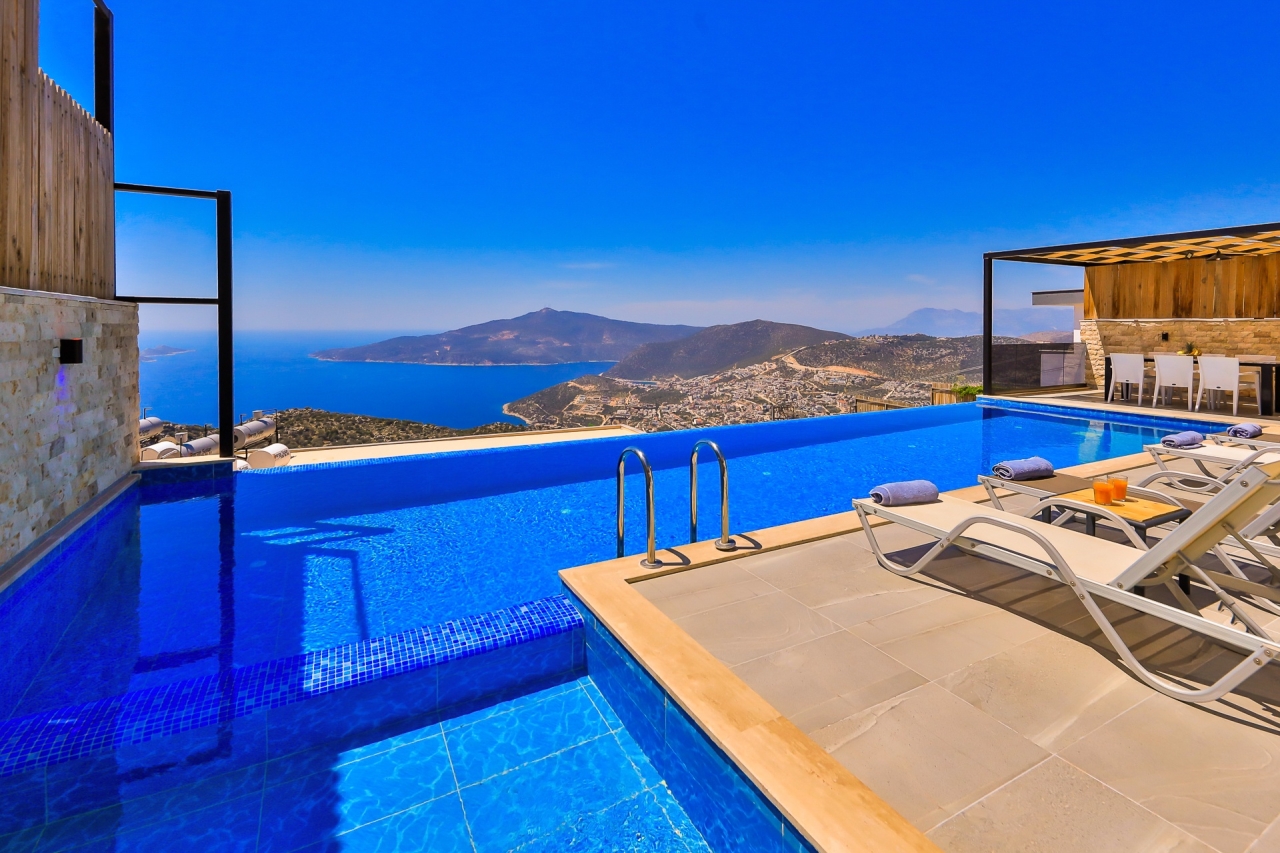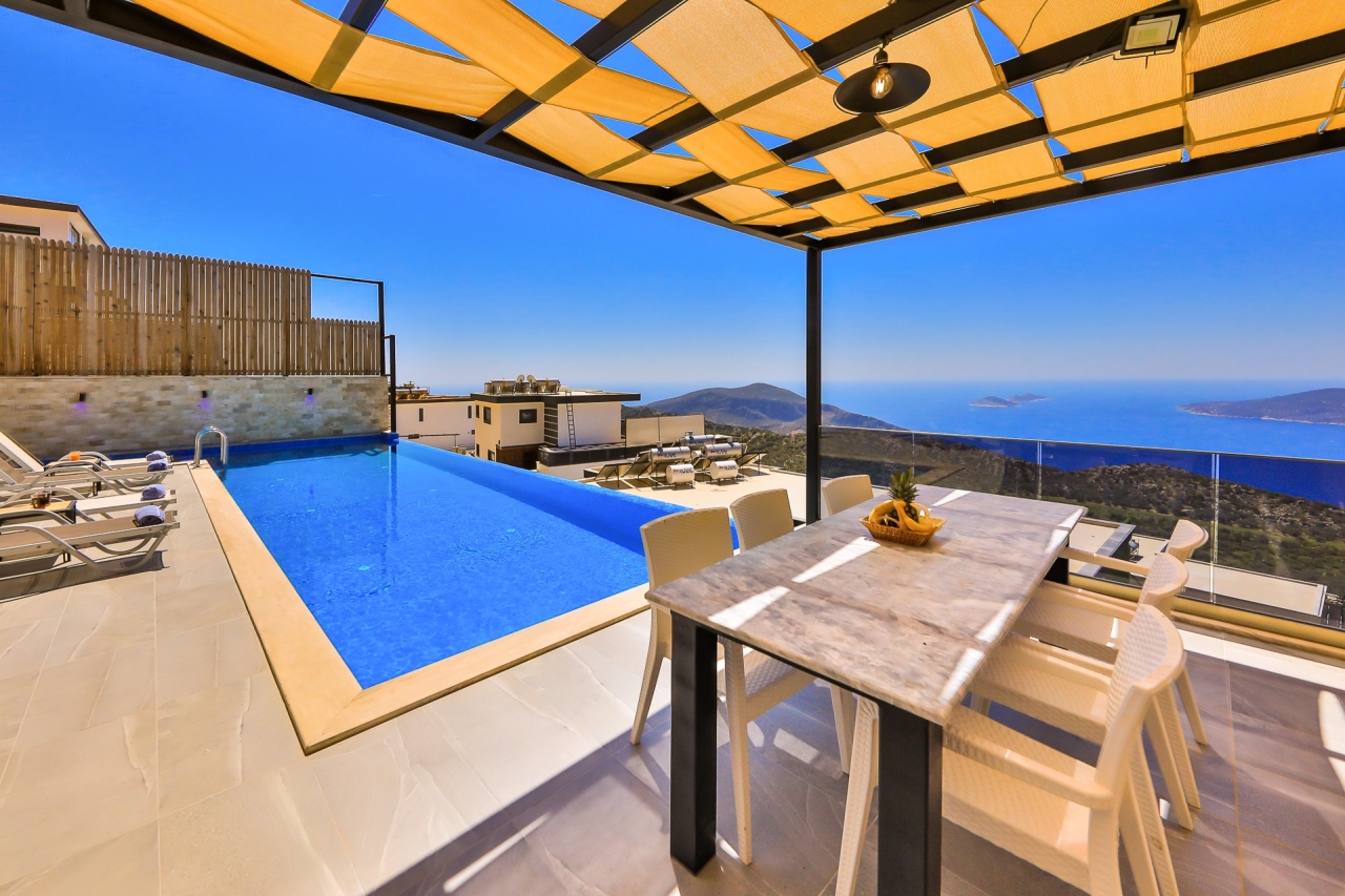 Situated in Kalkan’s Kordere district, Villa Zeugma offers a delightful retreat designed for both relaxation and enjoyment. This elegant villa features luxurious touches such as a jacuzzi and both indoor and outdoor swimming pools. With three bedrooms, each benefiting from its own en-suite shower room, there is plenty of space for guests to unwind comfortably.The villa’s thoughtful design allows for sweeping sea views from nearly every room, fostering a serene and tranquil atmosphere throughout. Its enclosed pool area provides excellent privacy, making it an ideal option for families or groups of friends seeking a peaceful escape.Villa Zeugma enjoys a peaceful location while remaining conveniently close to local amenities. Several supermarkets are within easy walking distance, and the centre of Kalkan is less than a ten-minute taxi ride away.Ground FloorOn the ground floor, you’ll find a bright and airy open-plan living space, a contemporary kitchen, and the first of the three...